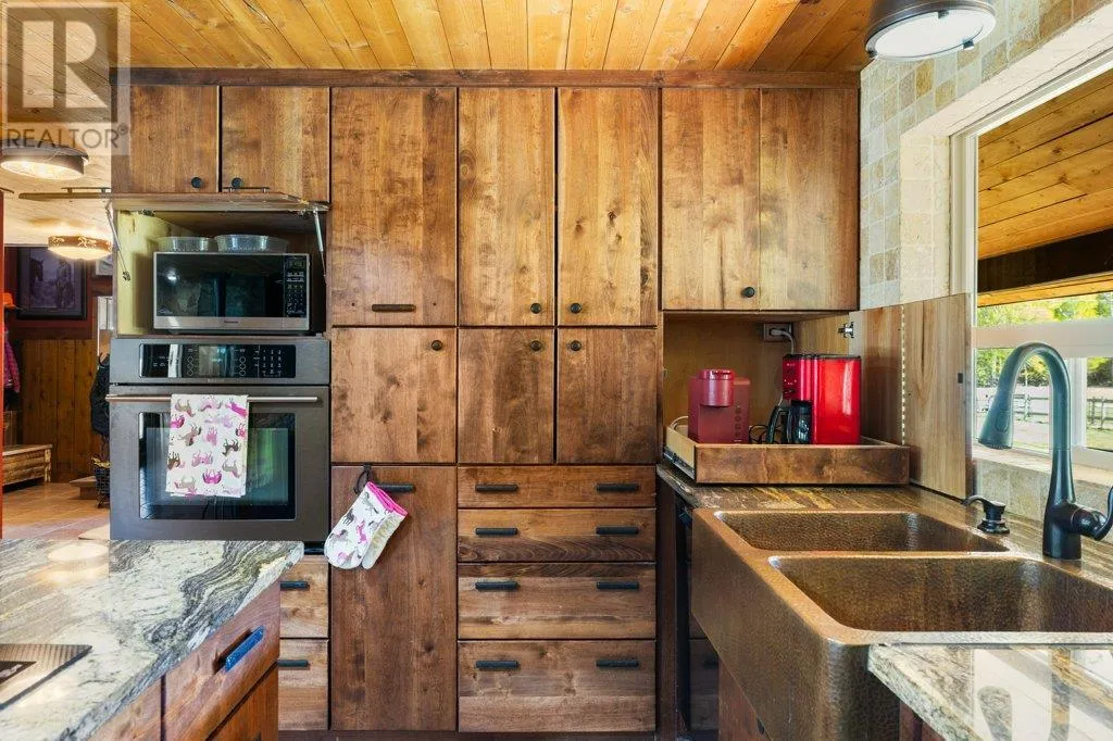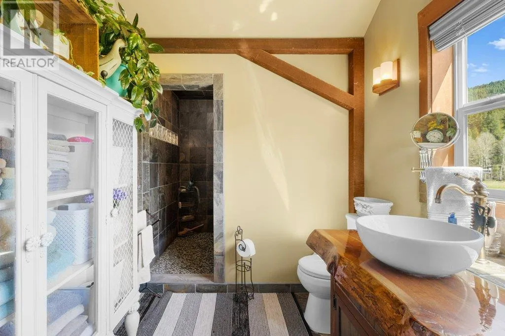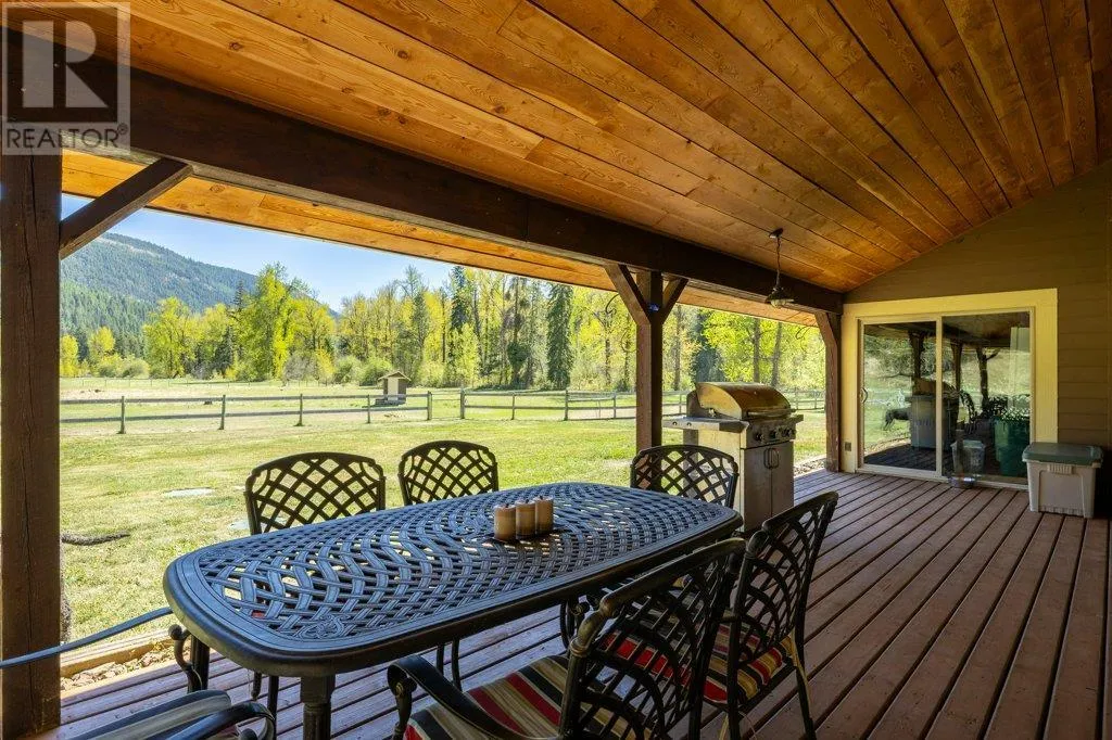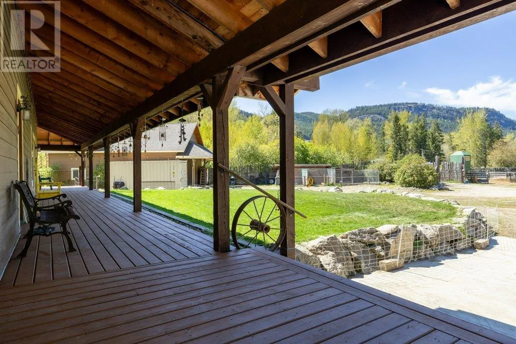 Welcome to a one-of-a-kind equestrian and recreational paradise in the heart of BCâs West Boundary regionâwhere riverfront serenity meets ranch-style luxury. Set on over 30 fully fenced acres along the picturesque Kettle River and directly bordering the Kettle Valley Rail (KVR) Trail, this meticulously maintained acreage is ideal for horse lovers, hobby farmers, and outdoor enthusiasts seeking the ultimate rural lifestyle. The extensively renovated main home blends rustic warmth with refined finishesâfeaturing handcrafted birch cabinetry, granite countertops, a hammered copper sink, live-edge woodwork, and a charming pull-out coffee bar. A ¾ wraparound deck offers sweeping views of the surrounding countrysideâperfect for morning coffee or evening gatherings. Equestrian infrastructure includes a professionally built 120' x 185' lit riding arena, multiple barns and paddocks, a horse shelter, and nearly 2 km of private Kettle River frontage. Additional outbuildings include a heated 32' x 40' shop, a self-contained guest suite, a wood-fired sauna, and heated dog pensâmaking it ideal for multi-species animal care, hosting guests, or running a home-based business. Enjoy two high-capacity wells, underground irrigation, an automatic gated entry, and a full security system for peace of mind. Ride, hike, or snowshoe straight from your door onto endless Crown land trails. Located just an hour from Kelowna, Grand Forks, and Osoyoos, this rare offering combines privacy, functionality, and high-end rural livingâwith all the recreational splendor of the Boundary region at your fingertips. Whether you dream of riding at sunrise, fishing from your backyard, or hosting retreats in a riverside setting, this is a property you need to experience. (id:27476)