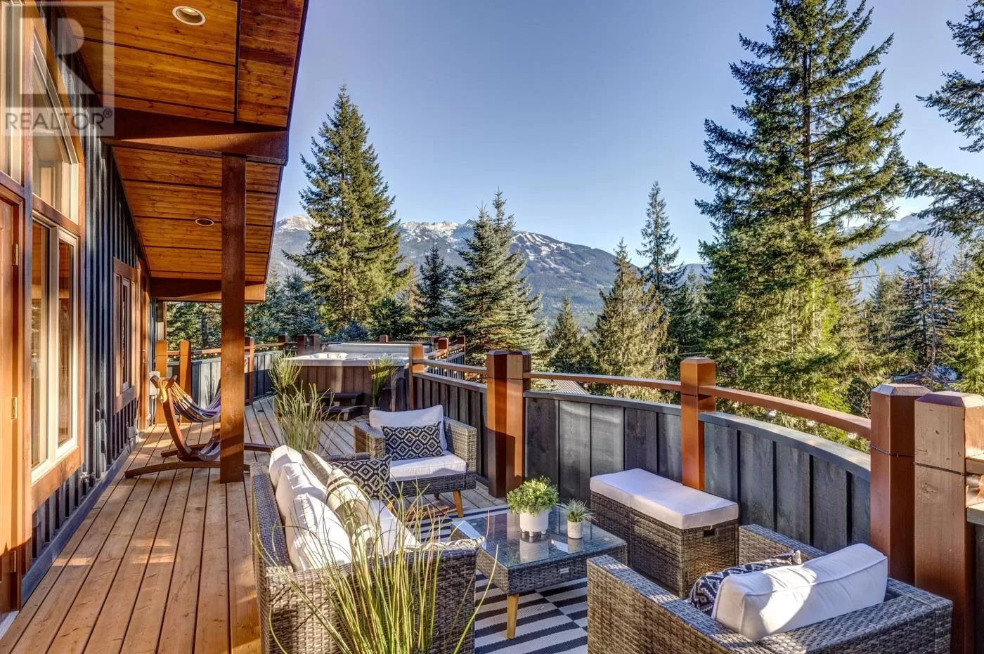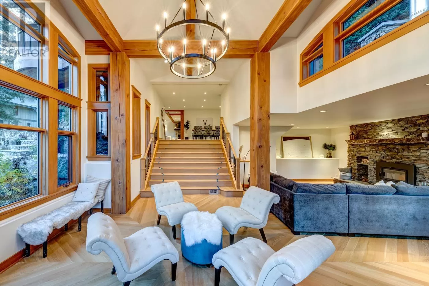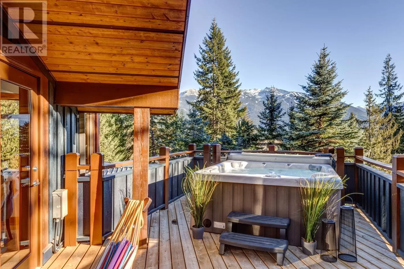 Experience ultimate mountain luxury with this sensational 5-bedroom, 4-bath post-and-beam masterpiece at the top of Mountain View Drive. Set on a spacious 13,044 square ft lot with 3,520 square ft of refined living space, this home showcases sweeping Whistler and Blackcomb vistas through grand windows that flood the interior with light. Three fireplaces warm elegantly crafted spaces, while the chef´s kitchen, featuring oak cabinetry, Miele appliances, and heated tile floors, forms the heart of the home. Upstairs, three large bedrooms open onto a south-facing patio with a hot tub. Luxurious bathrooms offer marble vanities, copper and stone bathtubs, and heated floors. A double garage with room for your gear completes this magnificent retreat, perfect for your family and adventures. (id:27476)