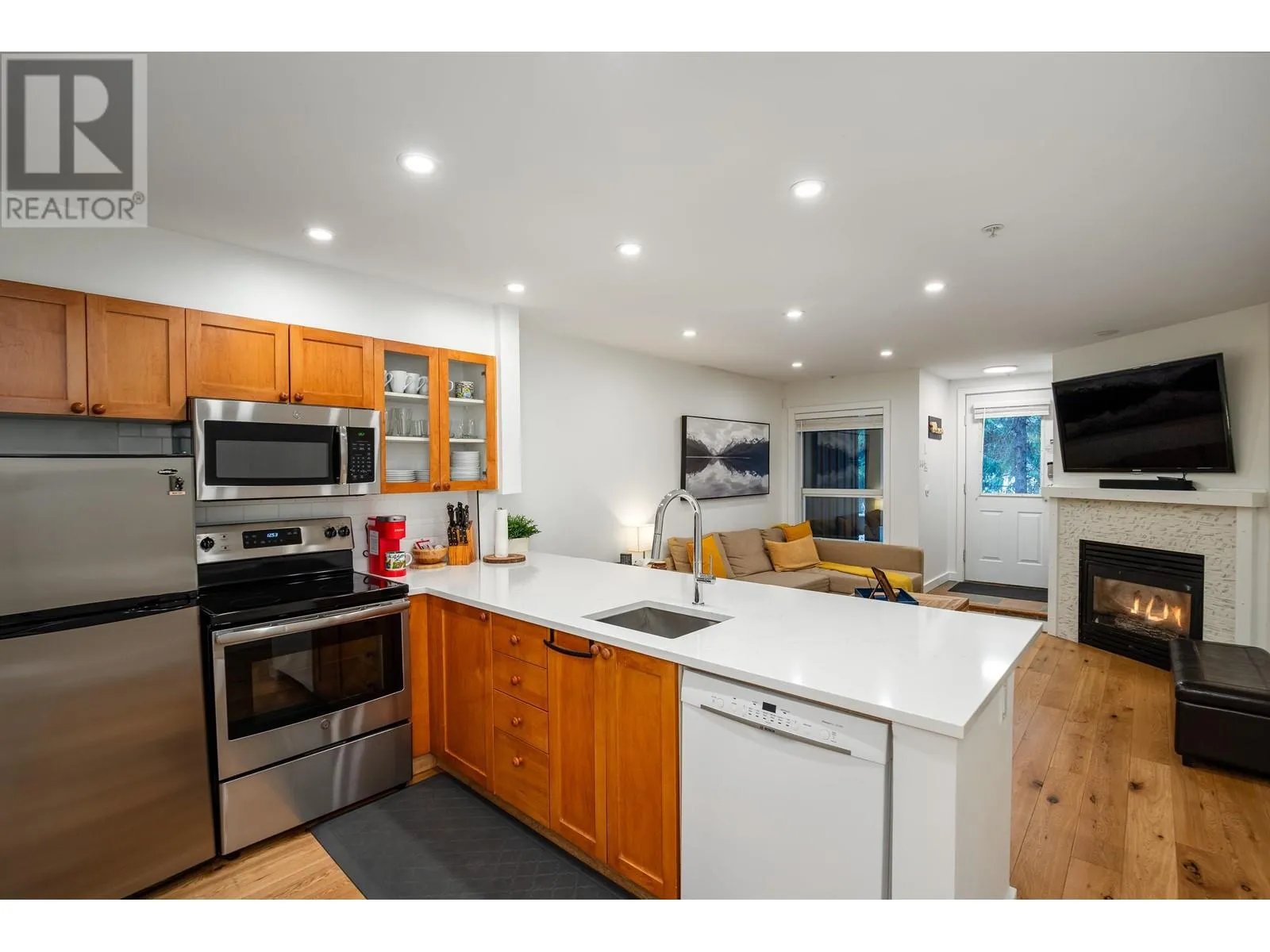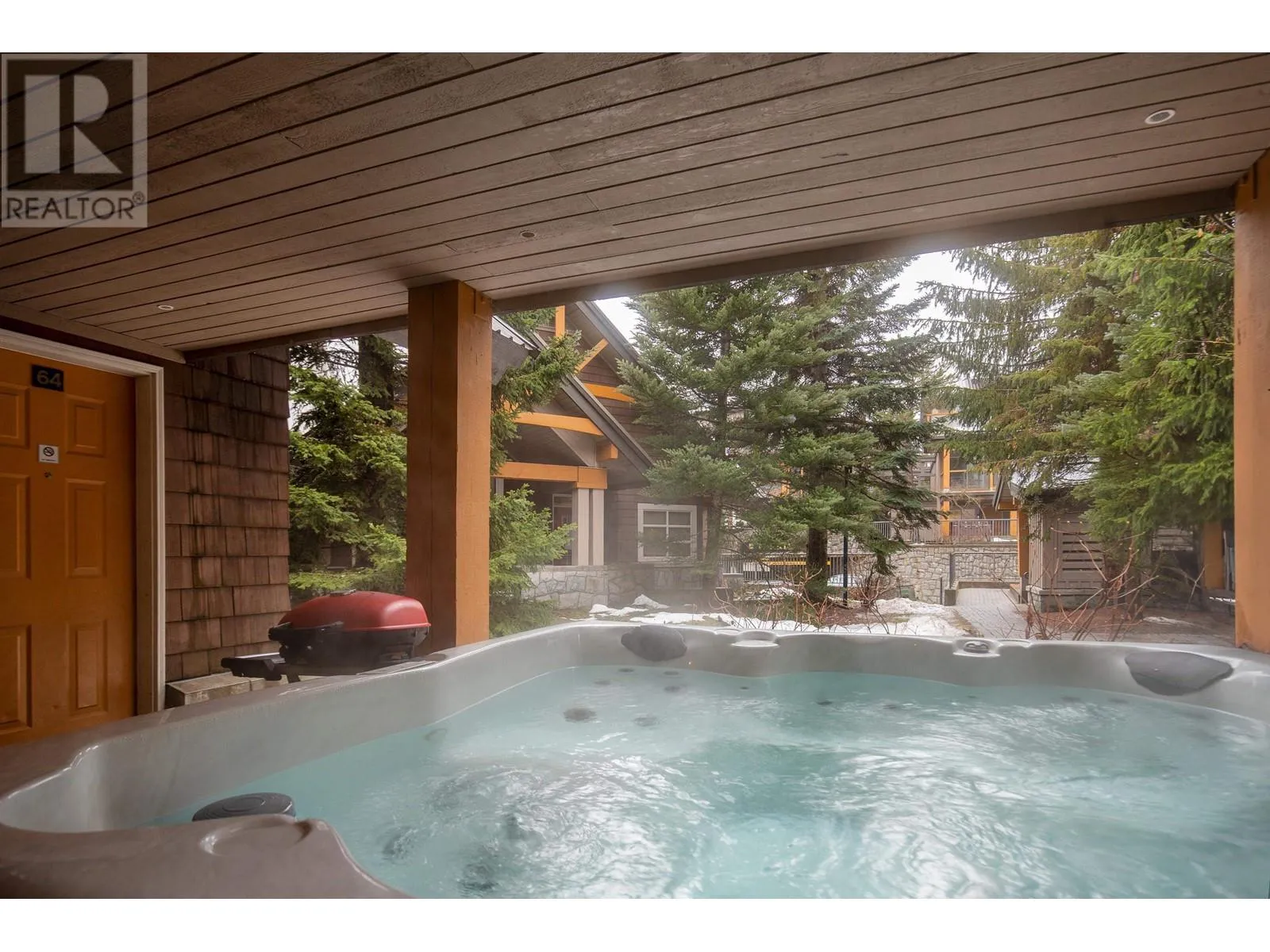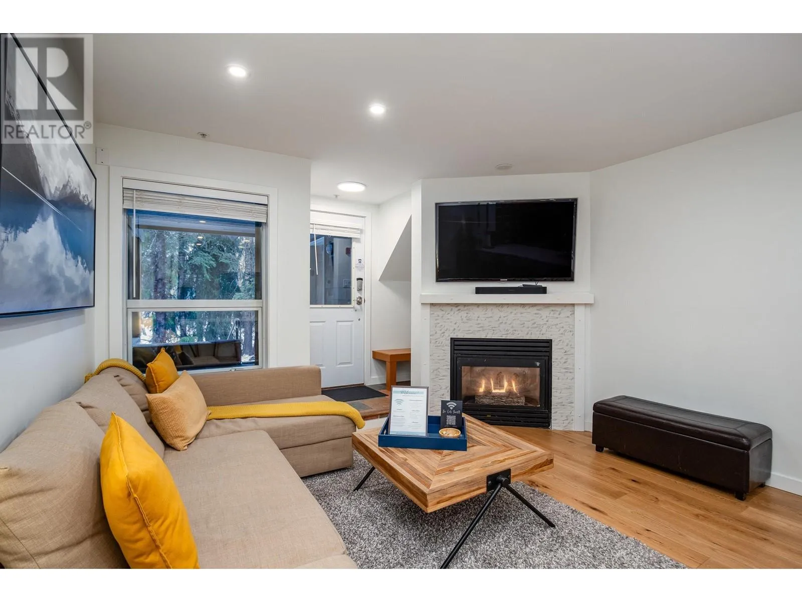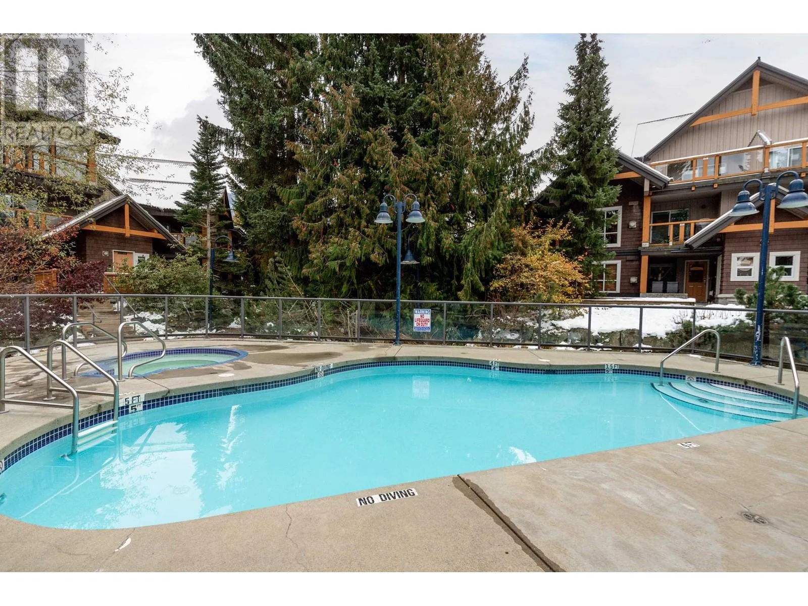 Welcome to this stunning 2 bed 2 bath home in the highly desired Glaciers Reach. Located just steps from Marketplace/Whistler Village where you can find shops, groceries, restaurants, and more. The convenience of this home makes this turn-key property an absolute perfect option for personal use and rental. This ground level unit offers the unique "lock off" option so that you can use/rent one side or both. The kitchen has full size appliances, updated countertops and is in pristine condition. Other features include gas fireplace, 2 patios one with a hot tub & bbq. Glaciers reach also offers a heated year-round pool, gym, & sauna. These units are desirable and this property will be your perfect home or investment! (id:27476)