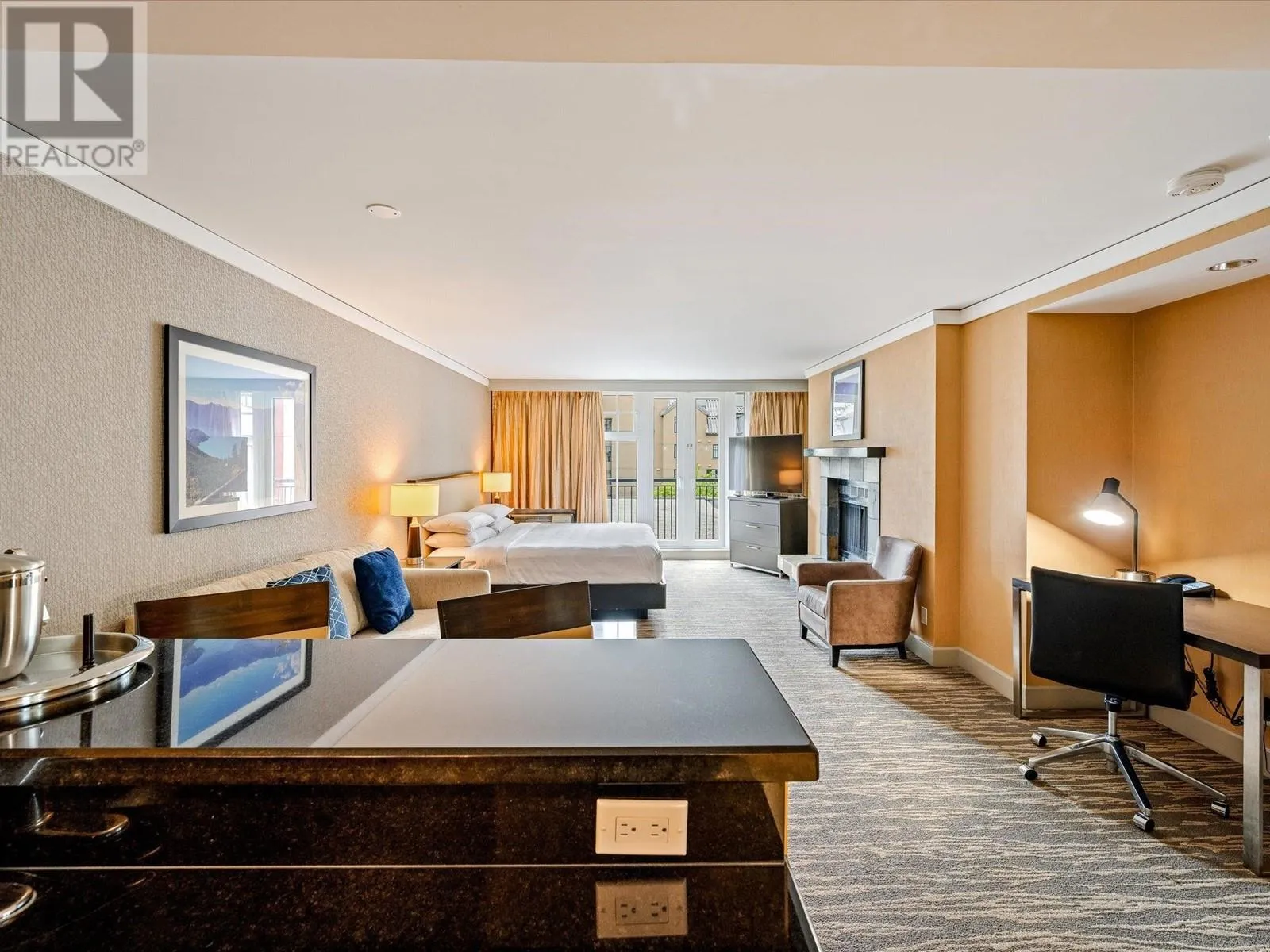 Spacious deluxe studio in the Hilton Whistler Resort & Spa, just steps from top restaurants, shops, and the Whistler and Blackcomb gondolas. This beautifully updated unit features a kitchenette, wood-burning fireplace, and stunning mountain views. Enjoy resort-style amenities including an outdoor heated pool, indoor/outdoor hot tubs, sauna, fitness centre, and full-service spa. Phase 1 zoning allows for unlimited personal use and strong rental income potential managed by the Hilton. A perfect luxury retreat in the heart of Whistler Village! (id:27476)