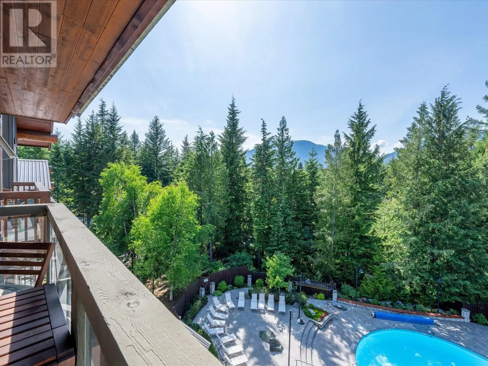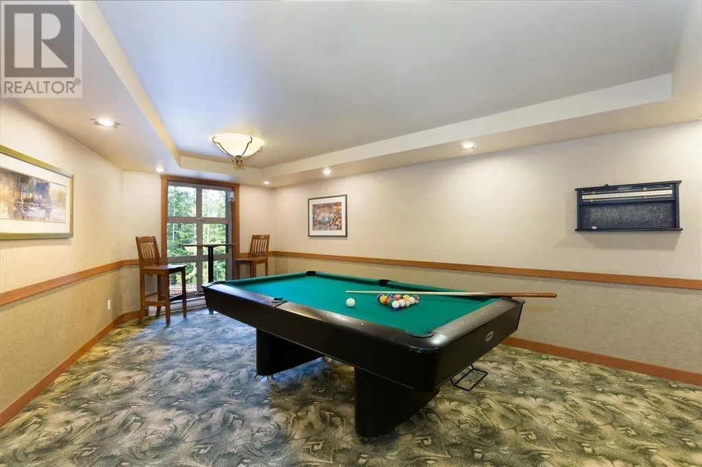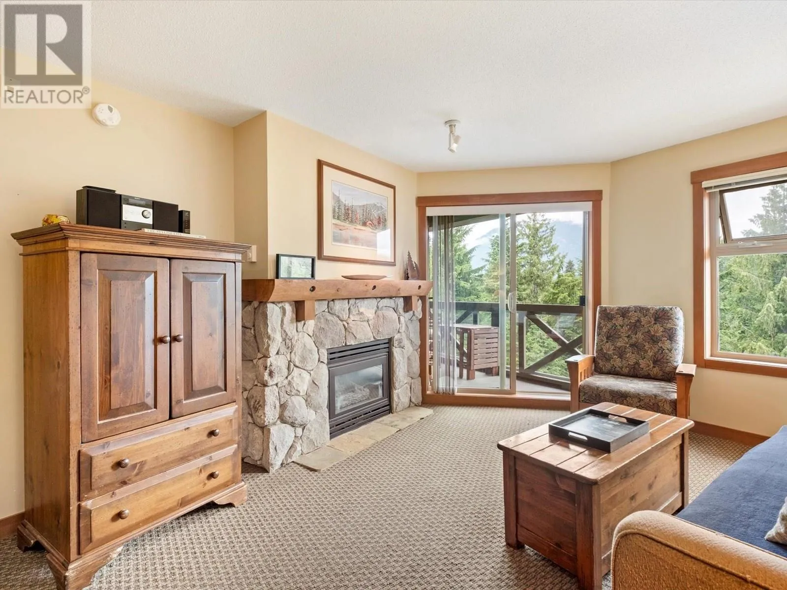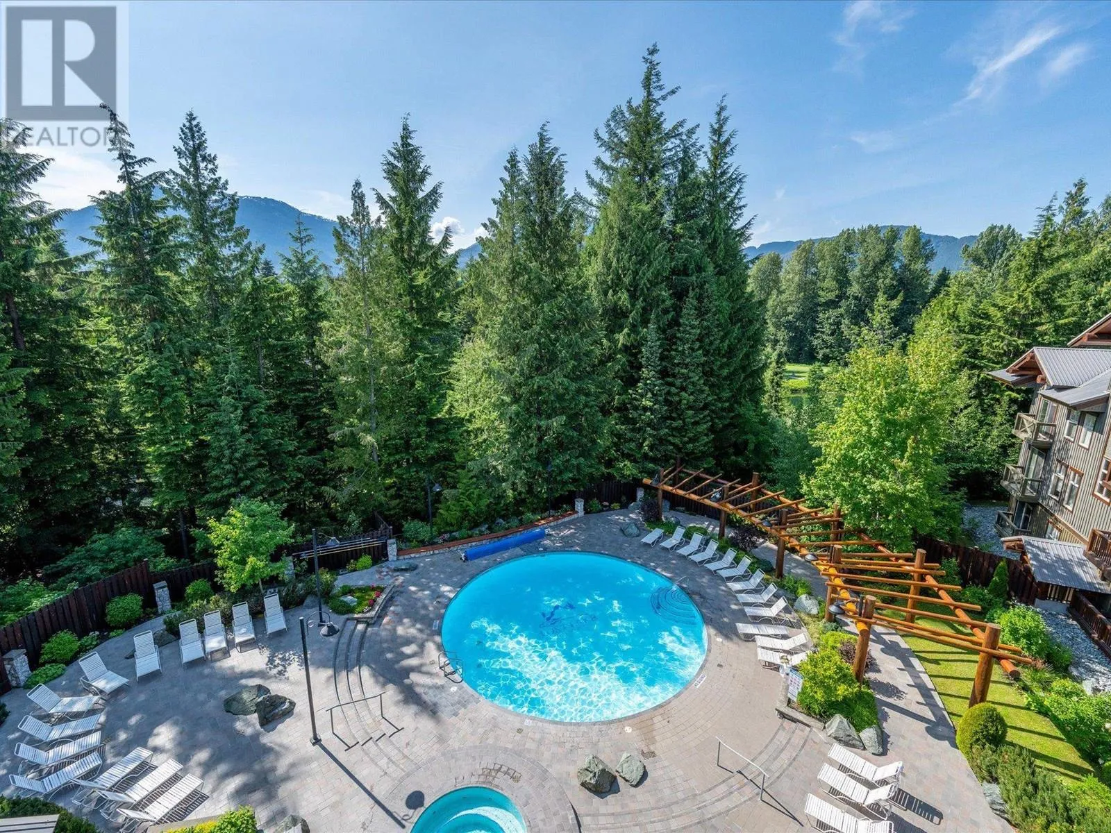 Rarely available top floor condo in one of Whistler's favorite buildings! This wonderful property has abundant natural light and beautiful mountain views due to its prime upper floor location. It overlooks the generous outdoor pool and not tub area, rated one of the best in Whistler! Features include a king sized bedroom, in-suite washer & dryer, comfortable living area with gas fireplace, and a spacious deck to BBQ and enjoy the views. Lost Lake Lodge has a well-stocked fitness room, a games room, ski lockers, bike storage, secured underground parking, and easy access to walking and bike trails. Short-term rentals are allowed and managed through the onsite front desk. Easy to view! (id:27476)