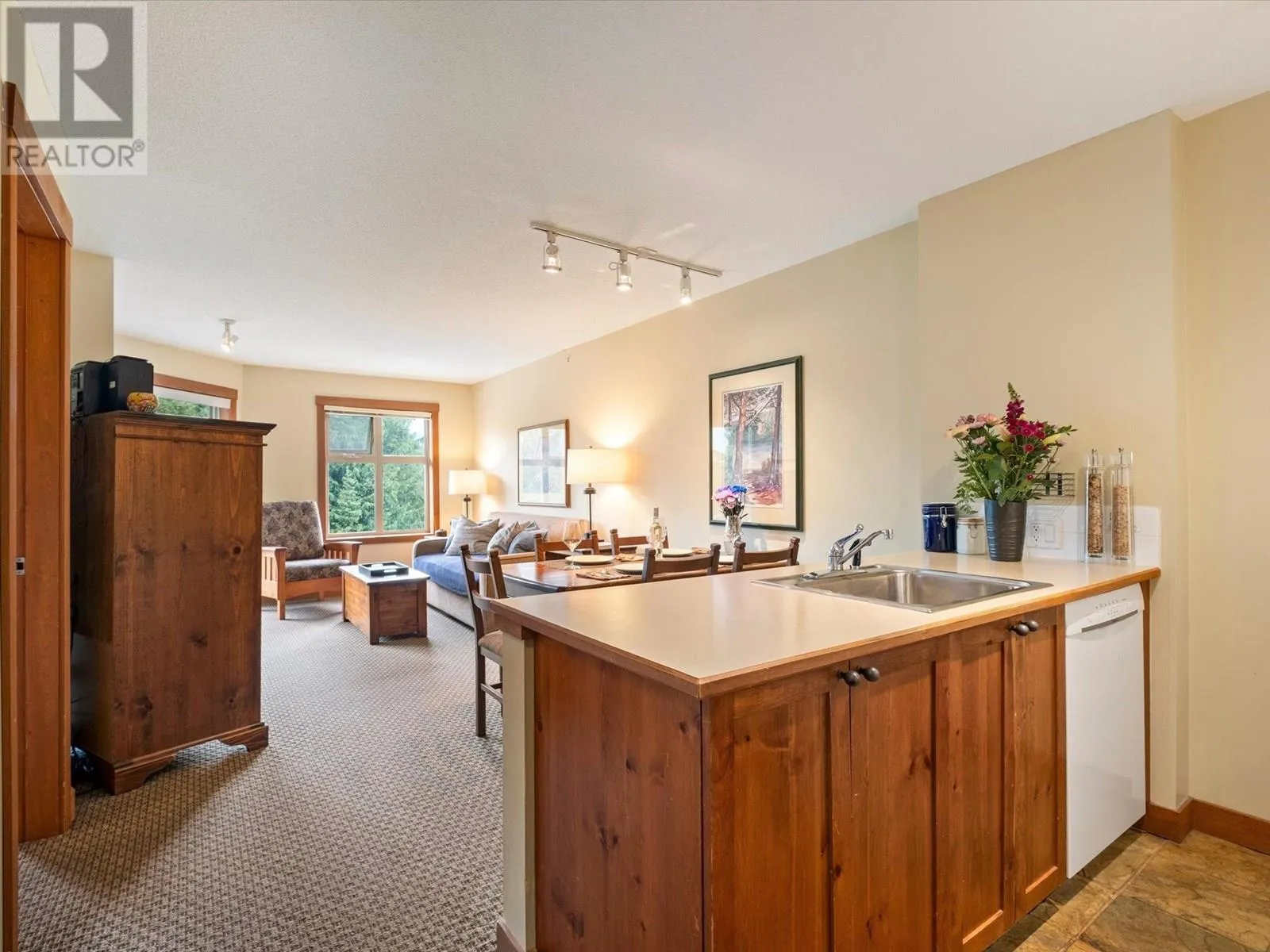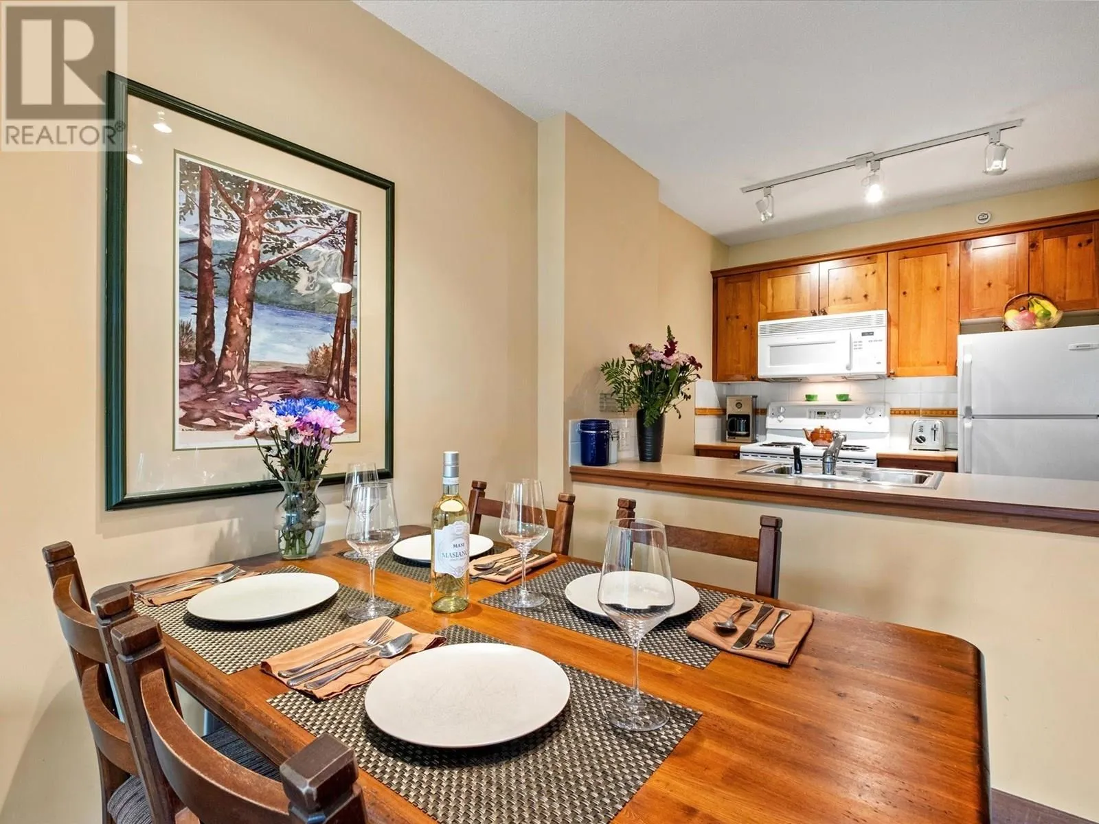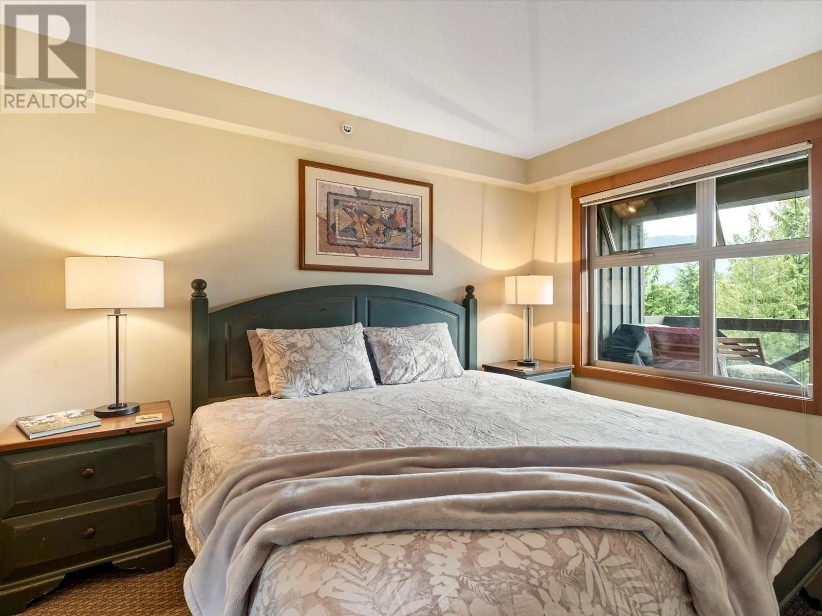 Rarely available top floor condo in one of Whistler's favorite buildings! This wonderful property has abundant natural light and beautiful mountain views due to its prime upper floor location. It overlooks the generous outdoor pool and not tub area, rated one of the best in Whistler! Features include a king sized bedroom, in-suite washer & dryer, comfortable living area with gas fireplace, and a spacious deck to BBQ and enjoy the views. Lost Lake Lodge has a well-stocked fitness room, a games room, ski lockers, bike storage, secured underground parking, and easy access to walking and bike trails. Short-term rentals are allowed and managed through the onsite front desk. Easy to view! (id:27476)