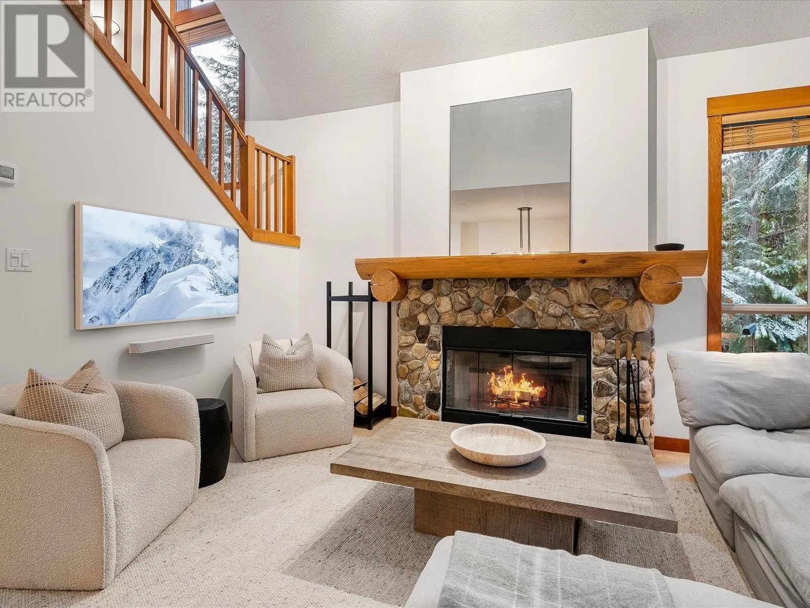 Forest Creek is an incredibly exclusive collection of 12 homes in the coveted Benchland's neighbourhood, adjacent to the Fairmont chateau golf course. This rare END UNIT home with a 2 CAR GARAGE offers room to spread out over 3 levels with vaulted ceilings, a large primary bedroom and a private forest outlook. Relax at the end of your ski day in your very own private hot tub, and enjoy being close walking distance to the golf course, valley trail and lost lake park year round. Features include a large 2 car outfitted garage, forced air natural gas heating, 2 private covered decks, and a wood burning fireplace. Ideal phase 1 zoning permits nightly rentals and unlimited owner usage. A perfect Whistler retreat for family and friends to enjoy and create lasting memories in. (id:27476)