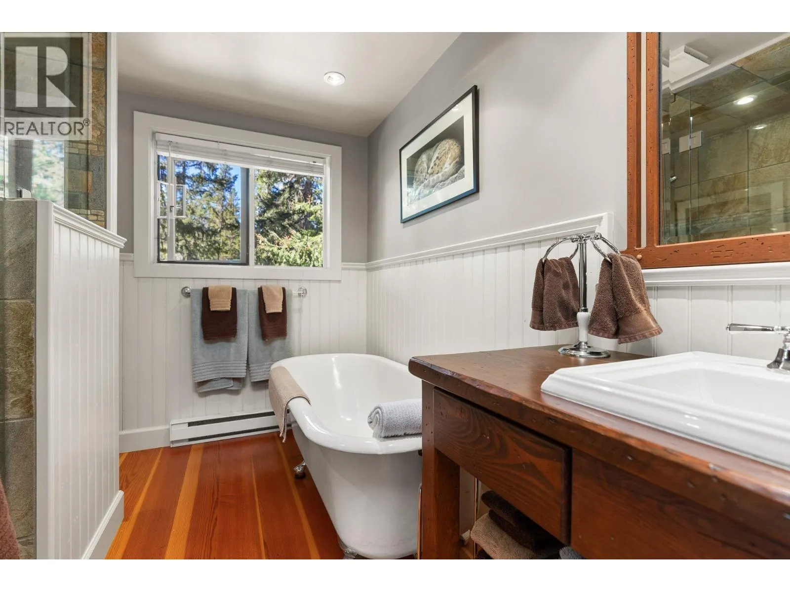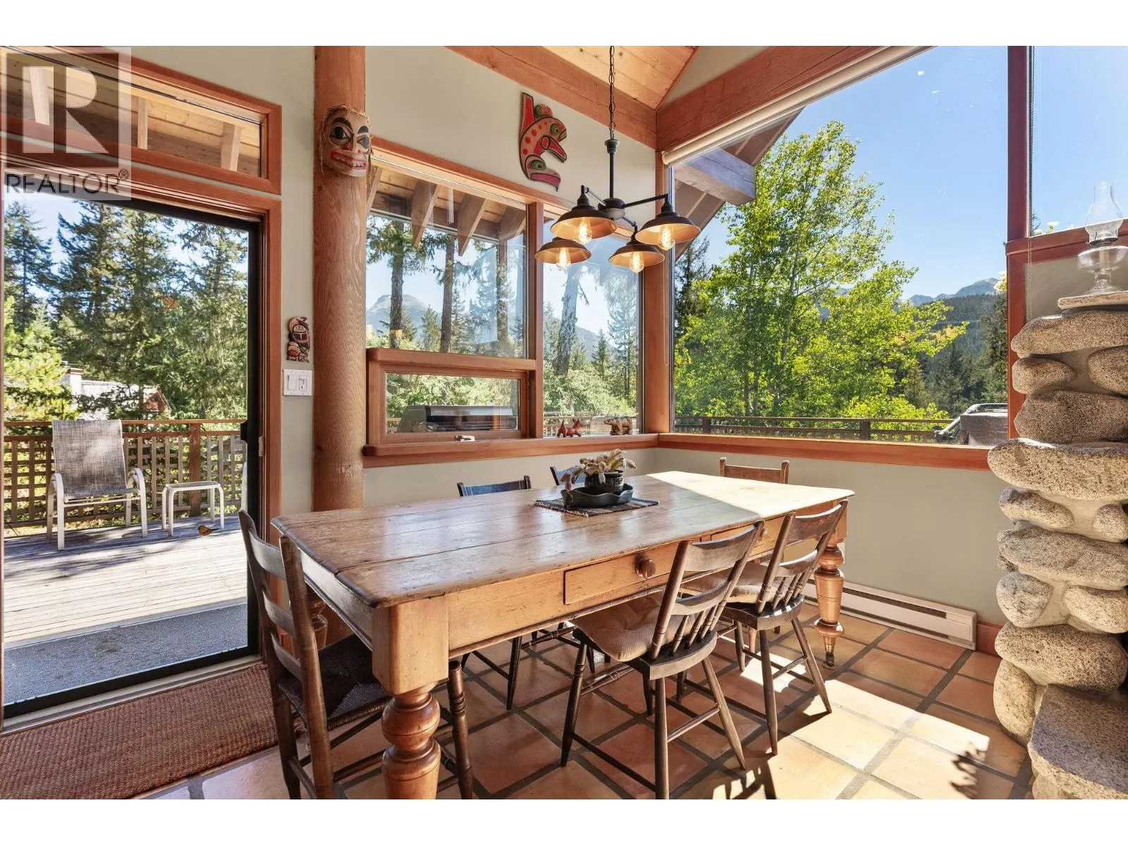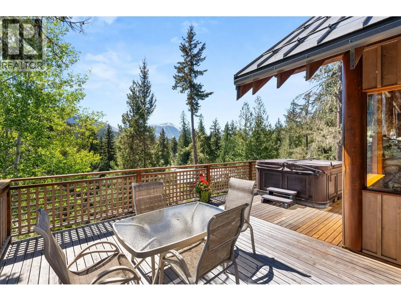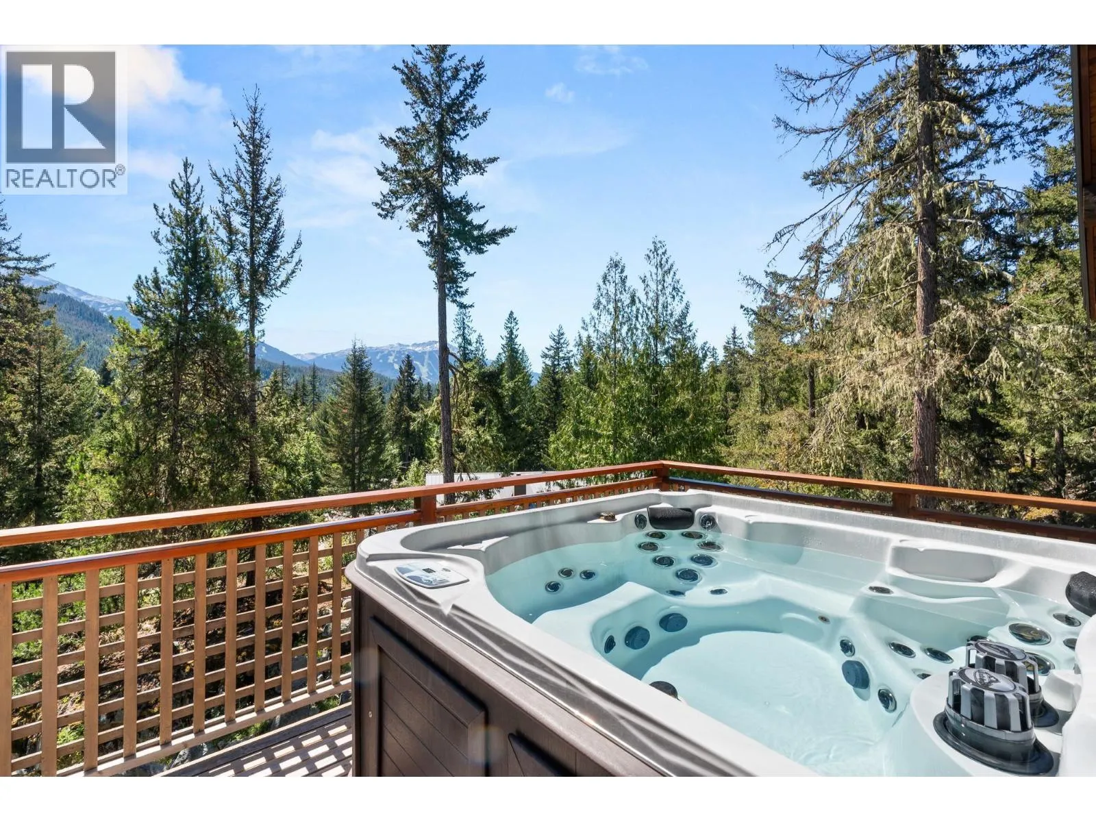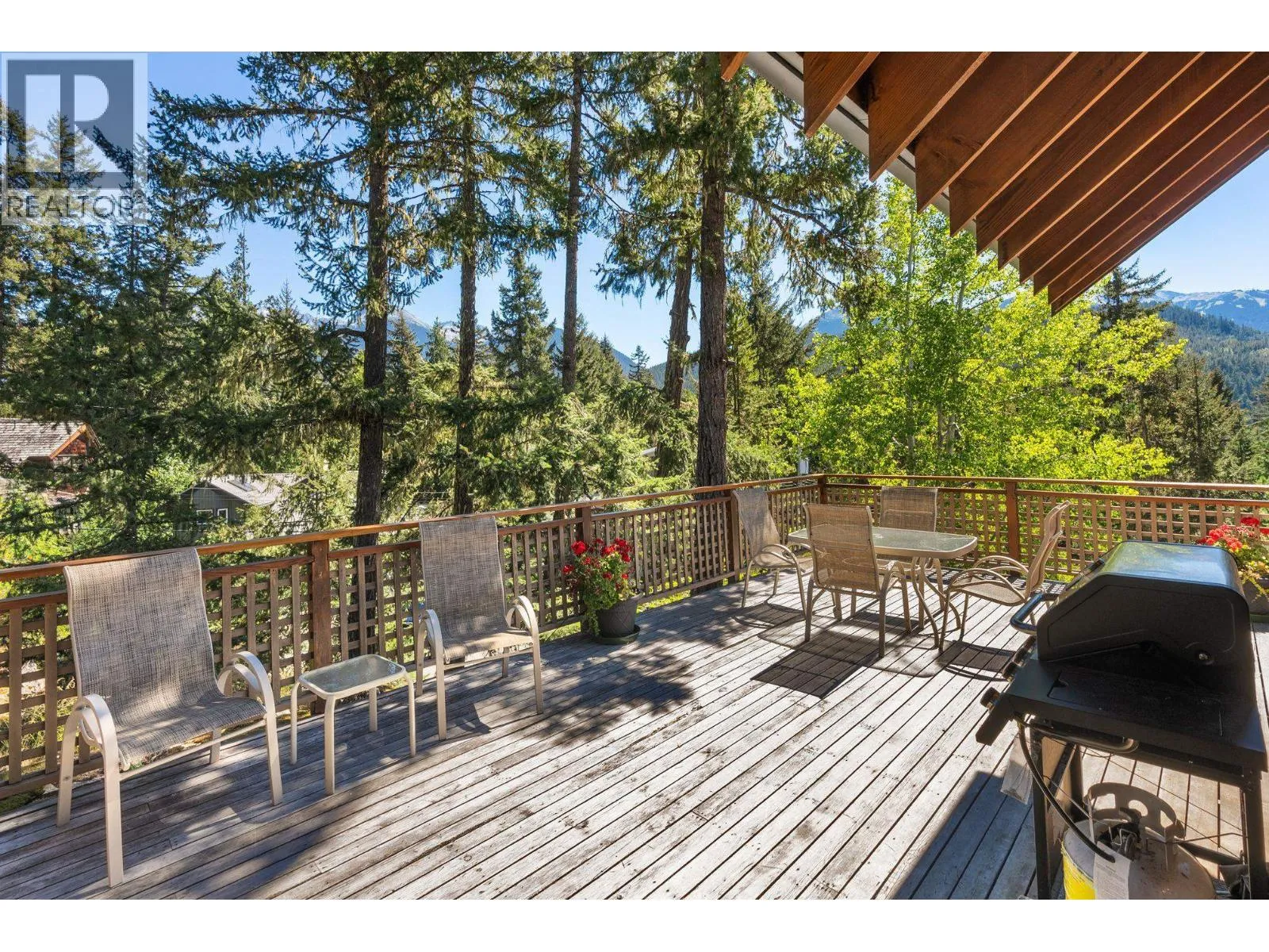 Perched on a 0.65-acre lot in Whistler´s Emerald Estates, this 1,709 square foot four bedroom 2.5 bathroom home blends mountain charm with everyday comfort. Sweeping views of Whistler and Blackcomb Mountains fill massive southeast facing windows, while a handcrafted staircase, cozy tile floors, and a stone fireplace create a warm and inviting atmosphere. The open concept living space flows to a large wraparound deck and hot tub, perfect for relaxing after a day on the slopes. With a garage, lower-level storage, and direct access to Crown land trails, this property offers privacy and convenience just minutes from Whistler Village An adjacent 0.28-acre lot is also available to create nearly a full acre of alpine space, ideal for added seclusion or future development. (id:27476)