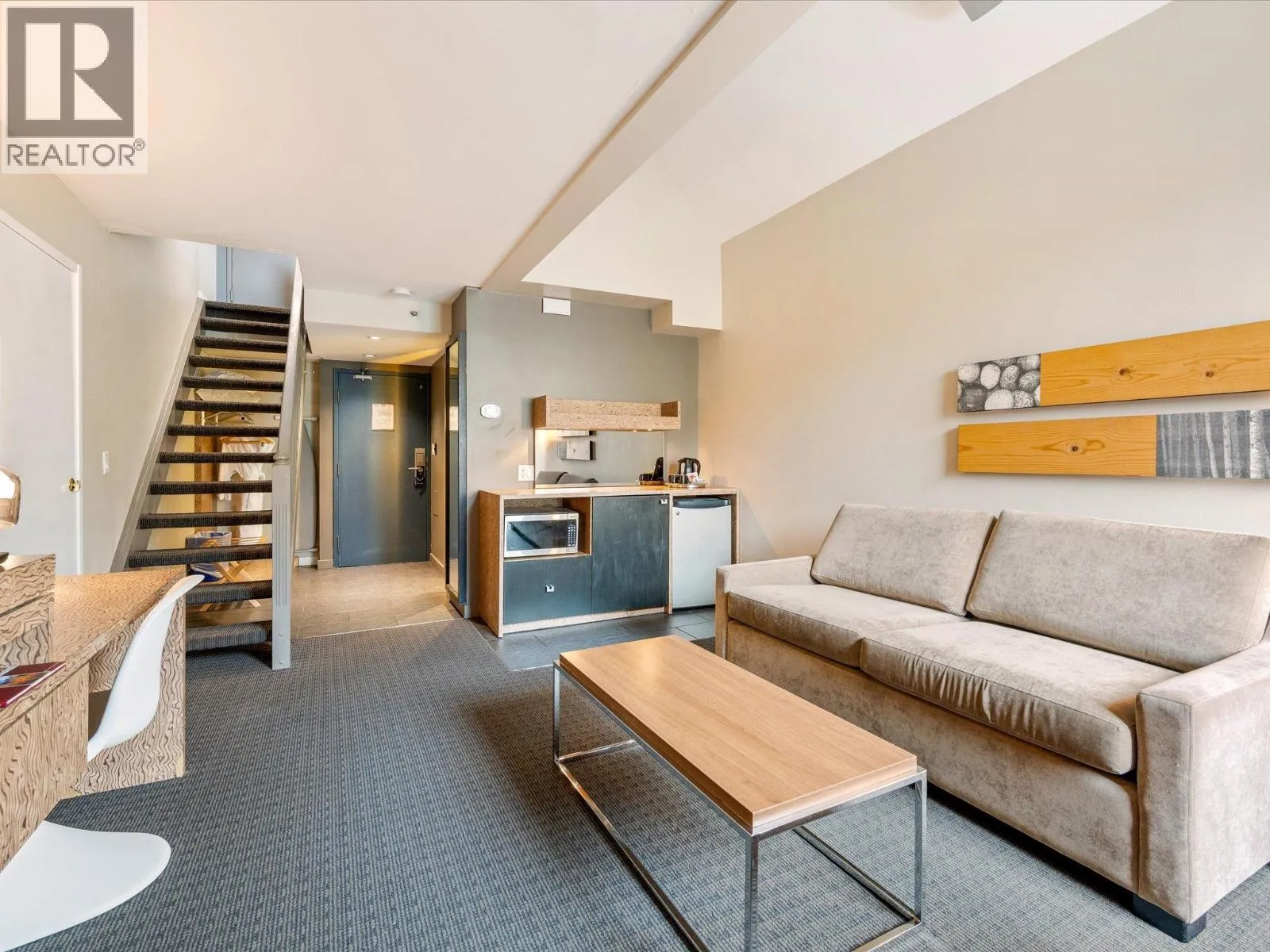 Welcome to Adara Hotel, a lofted one bedroom in the heart of Whistler Village. The hotel offers easy access to the Whistler Village Gondola and all of the amenities of the Village. Inside, you'll find a living area and a pull-out sofa bed to allow this suite to sleep four people. After a day of exploring, you can relax on the private deck and enjoy the stunning mountain views or head to the outdoor pool, hot tub, and fire pit. Complimentary amenities include free storage for your golf clubs, bikes, or skis, and free Wi-Fi. The suite also features a convenient kitchenette with a microwave and bar fridge, perfect for grabbing a quick bite before heading out. The Adara is a pet-friendly hotel and can generate good revenue when you aren´t using your suite. (id:27476)