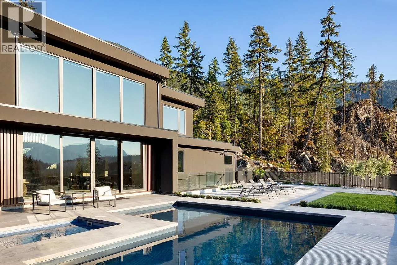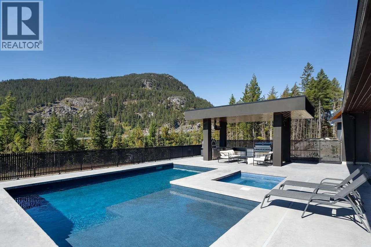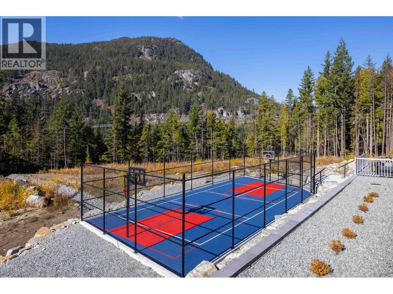 Perched on the scenic plateau of Whistler's WedgeWoods estate, this property offers breathtaking views, modern luxury, and a wealth of in-home amenities perfect for hosting and relaxation. The contemporary design floods the main living space with natural light, seamlessly blending indoor and outdoor living with features like a heated pool, hot tub, covered outdoor kitchen, and private sports court. High-end finishes abound, including custom millwork, an entertainment-focused level, and a heated driveway. Located just 12 minutes north of Whistler Village, this home ensures a hassle-free commute and access to exclusive neighborhood amenities, such as a gym, tennis courts, and pickleball courts. Zoning allows short-term rentals, it's an ideal retreat or investment. (id:27476)