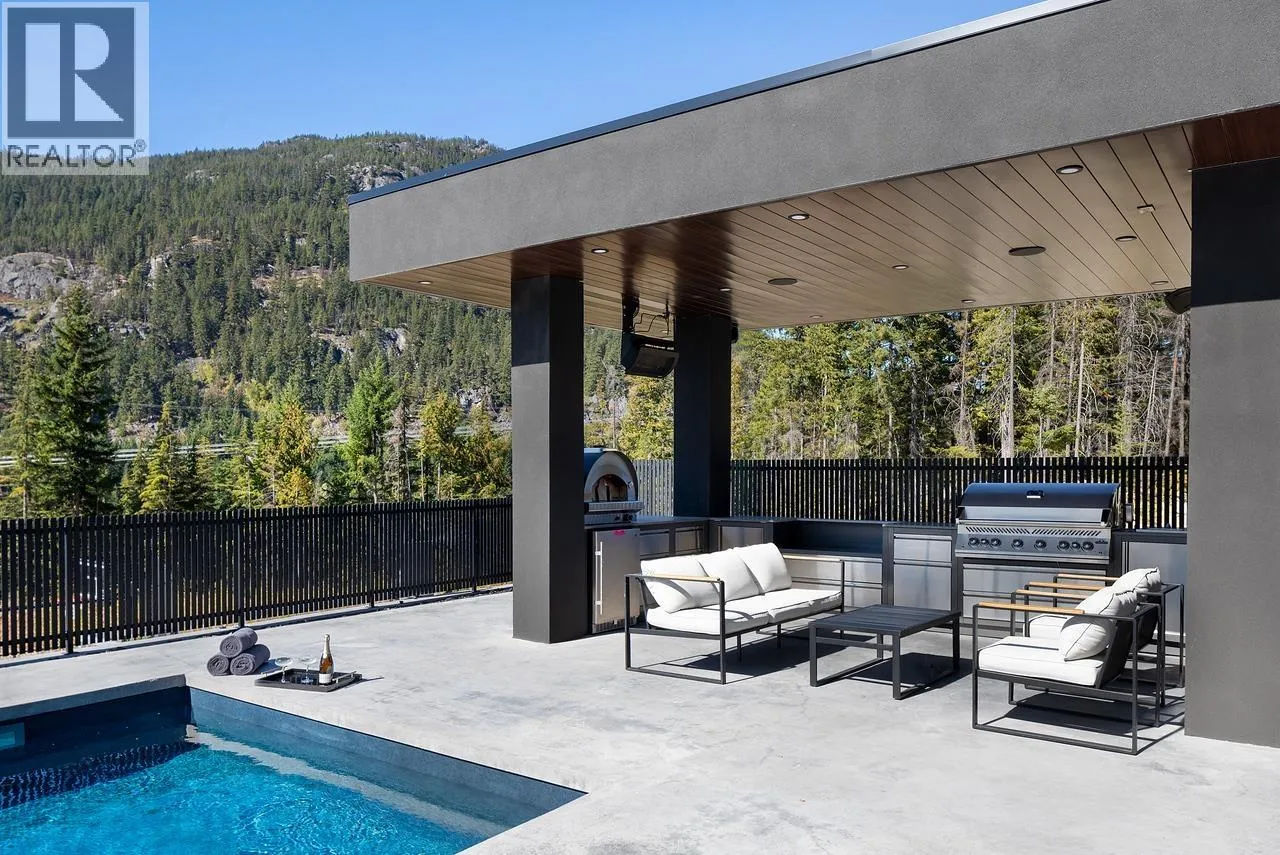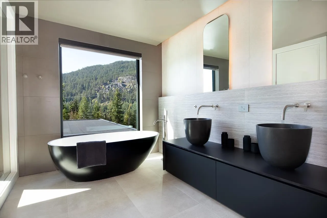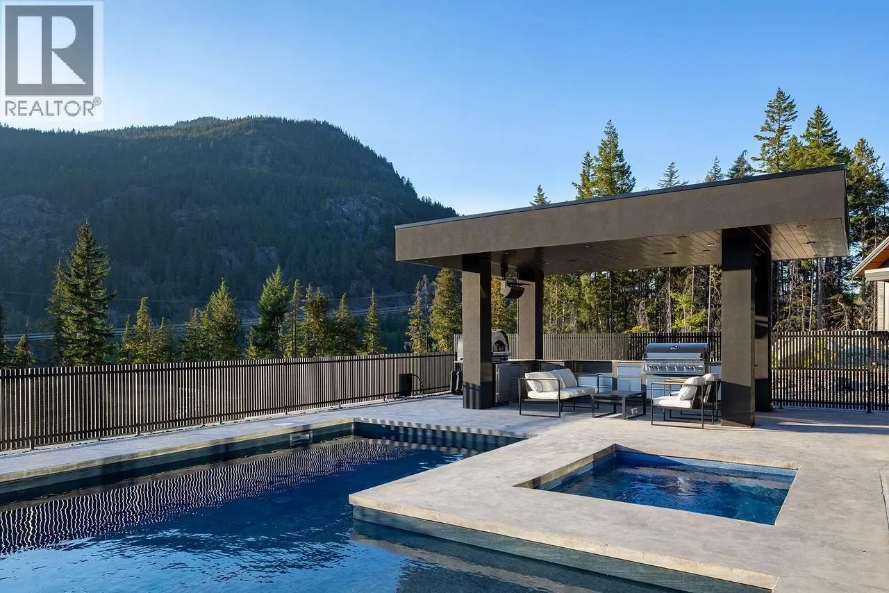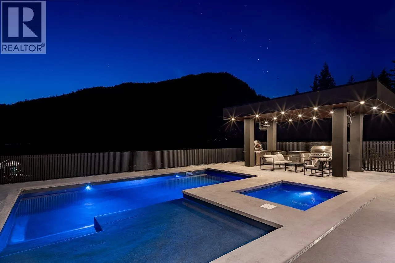 Perched on the scenic plateau of Whistler's WedgeWoods estate, this property offers breathtaking views, modern luxury, and a wealth of in-home amenities perfect for hosting and relaxation. The contemporary design floods the main living space with natural light, seamlessly blending indoor and outdoor living with features like a heated pool, hot tub, covered outdoor kitchen, and private sports court. High-end finishes abound, including custom millwork, an entertainment-focused level, and a heated driveway. Located just 12 minutes north of Whistler Village, this home ensures a hassle-free commute and access to exclusive neighborhood amenities, such as a gym, tennis courts, and pickleball courts. Zoning allows short-term rentals, it's an ideal retreat or investment. (id:27476)