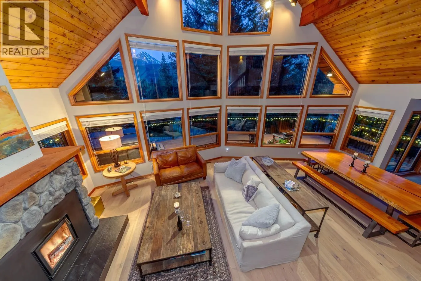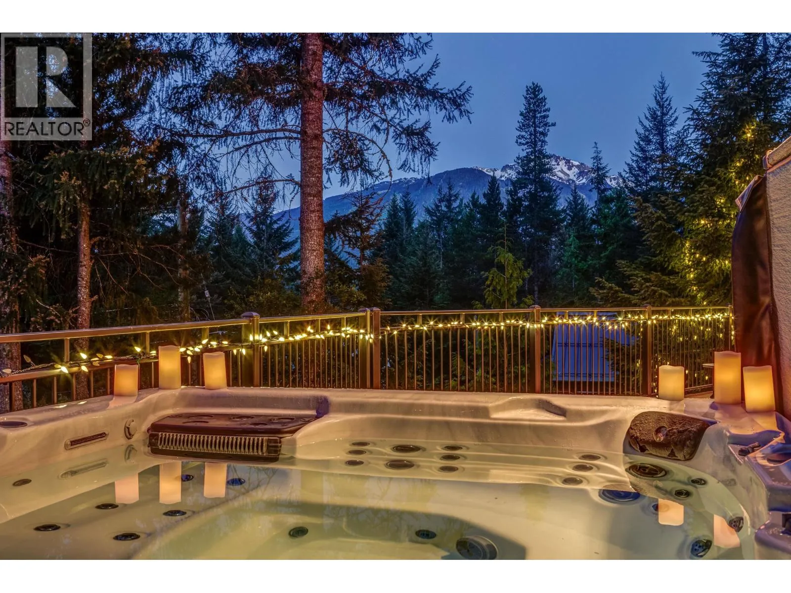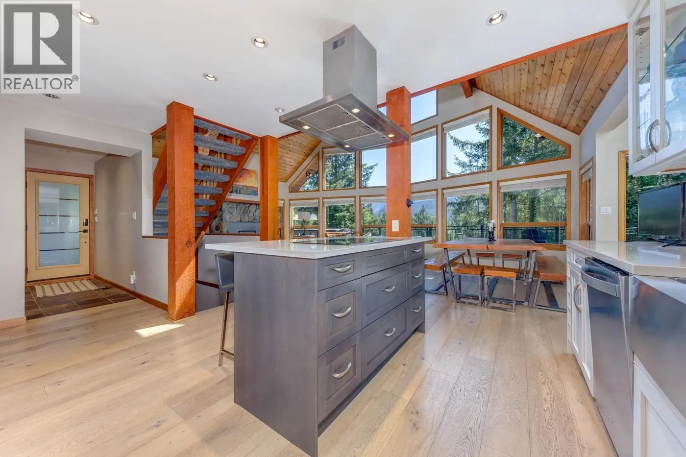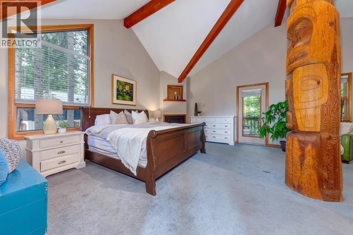 Wake up daily to magnificent mountain views in this stunning, bright, open post & beam home. Soaring cathedral ceilings & floor-to-ceiling windows flood the space with natural light. The open concept main floor is an entertainer's delight, with a wood-burning fireplace, wood floors, & skylights. Step onto your private deck, where a hot tub awaits with sunrise and alpenglow views of Wedge Mtn, Armchair Glacier, & Blackcomb Mtn. The fully updated kitchen is a chef's dream, featuring a wall oven, cooktop, & granite countertops. Upstairs, the primary bedroom has a gas fireplace, private deck, & eagle totem pole to the vaulted ceiling. Luxurious primary ensuite pampers with a double vanity, deep soaker tub, heated floors & a separate shower. 2-bed suite for income or personal use. (id:27476)
