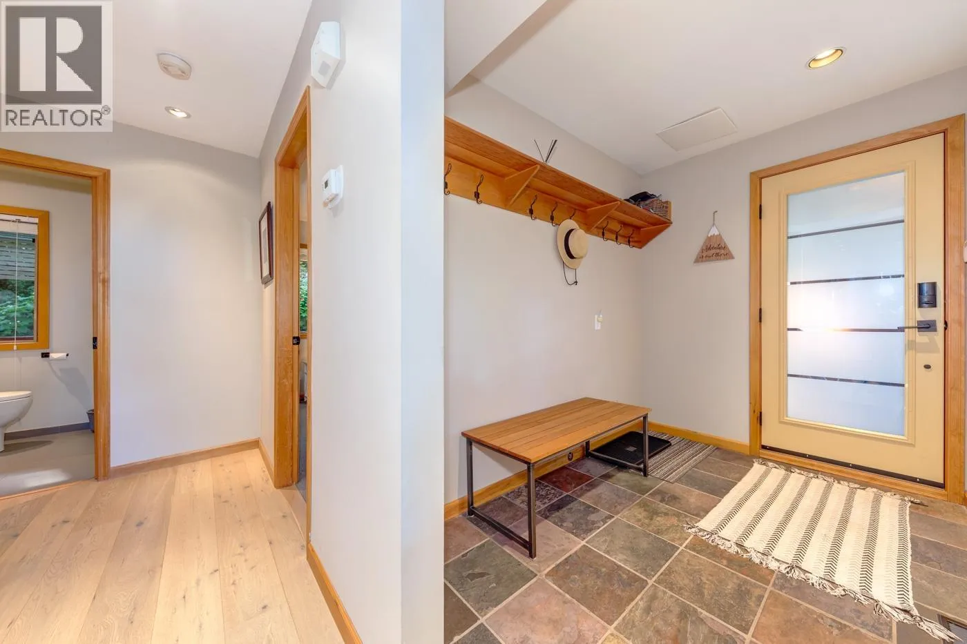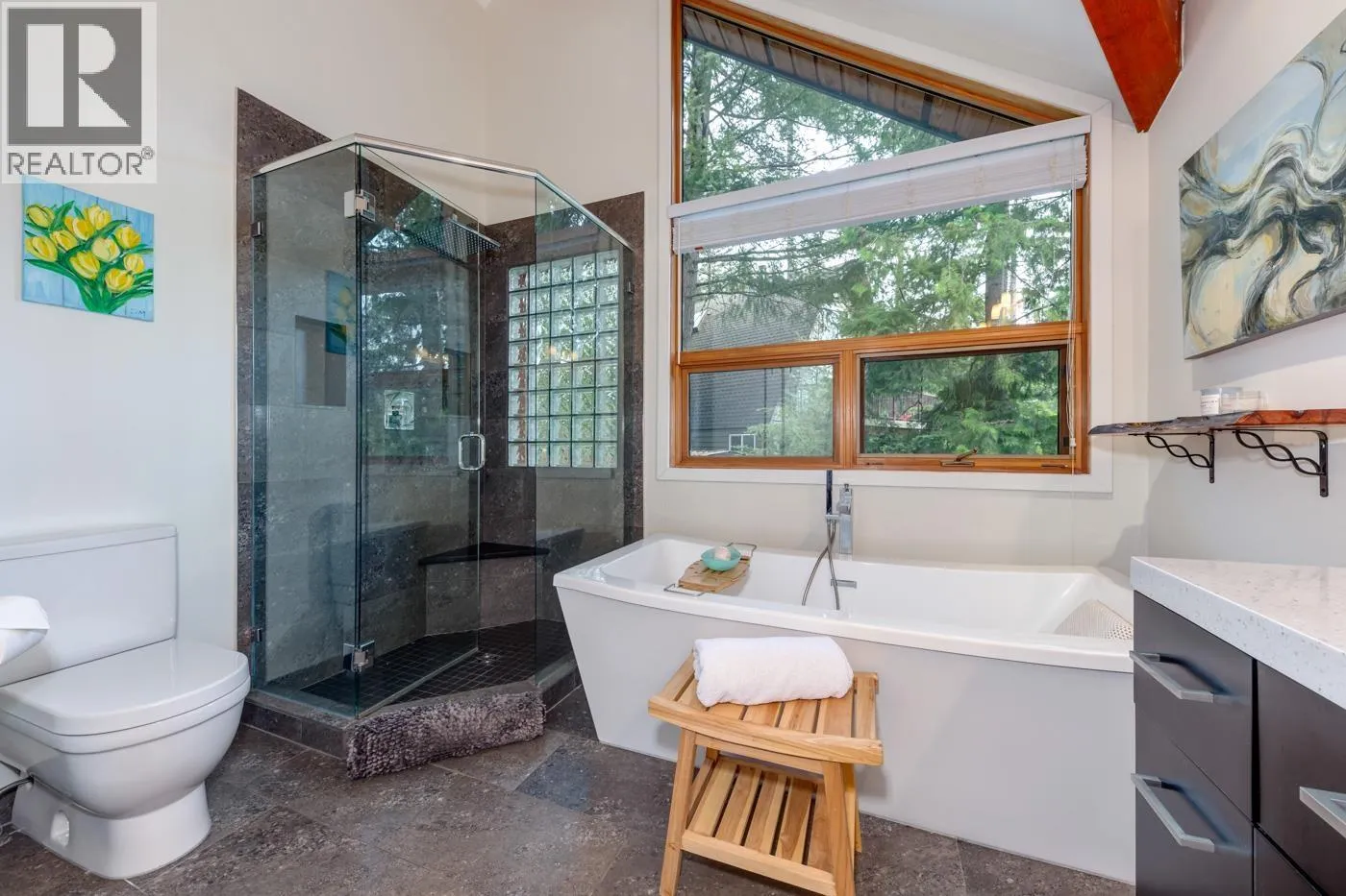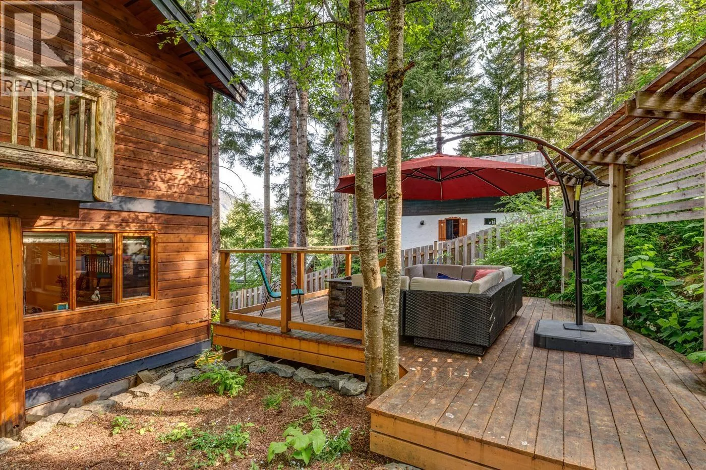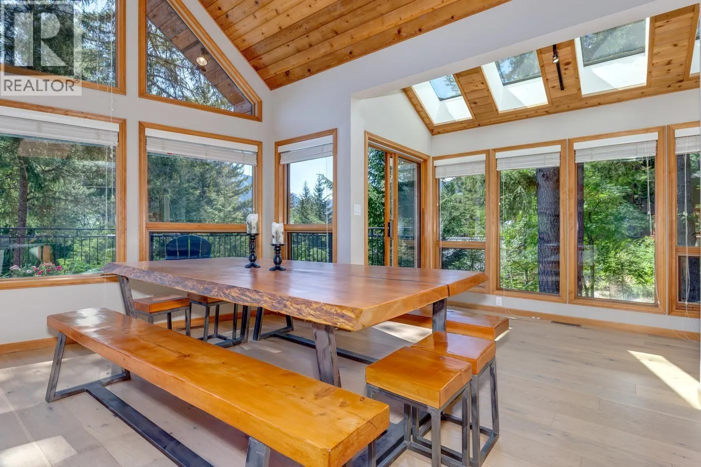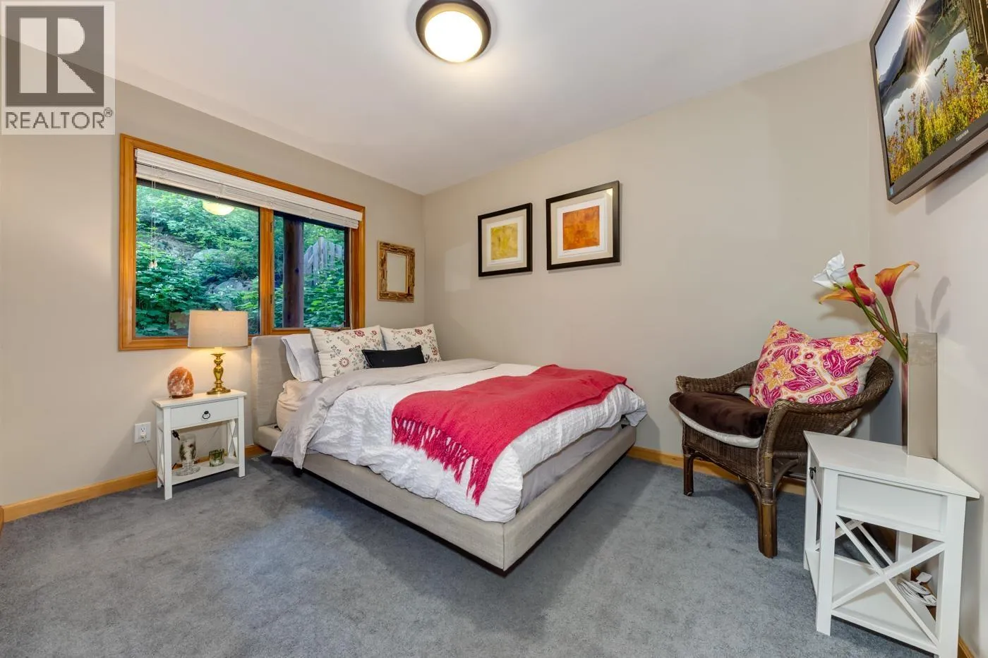 Wake up daily to magnificent mountain views in this stunning, bright, open post & beam home. Soaring cathedral ceilings & floor-to-ceiling windows flood the space with natural light. The open concept main floor is an entertainer's delight, with a wood-burning fireplace, wood floors, & skylights. Step onto your private deck, where a hot tub awaits with sunrise and alpenglow views of Wedge Mtn, Armchair Glacier, & Blackcomb Mtn. The fully updated kitchen is a chef's dream, featuring a wall oven, cooktop, & granite countertops. Upstairs, the primary bedroom has a gas fireplace, private deck, & eagle totem pole to the vaulted ceiling. Luxurious primary ensuite pampers with a double vanity, deep soaker tub, heated floors & a separate shower. 2-bed suite for income or personal use. (id:27476)