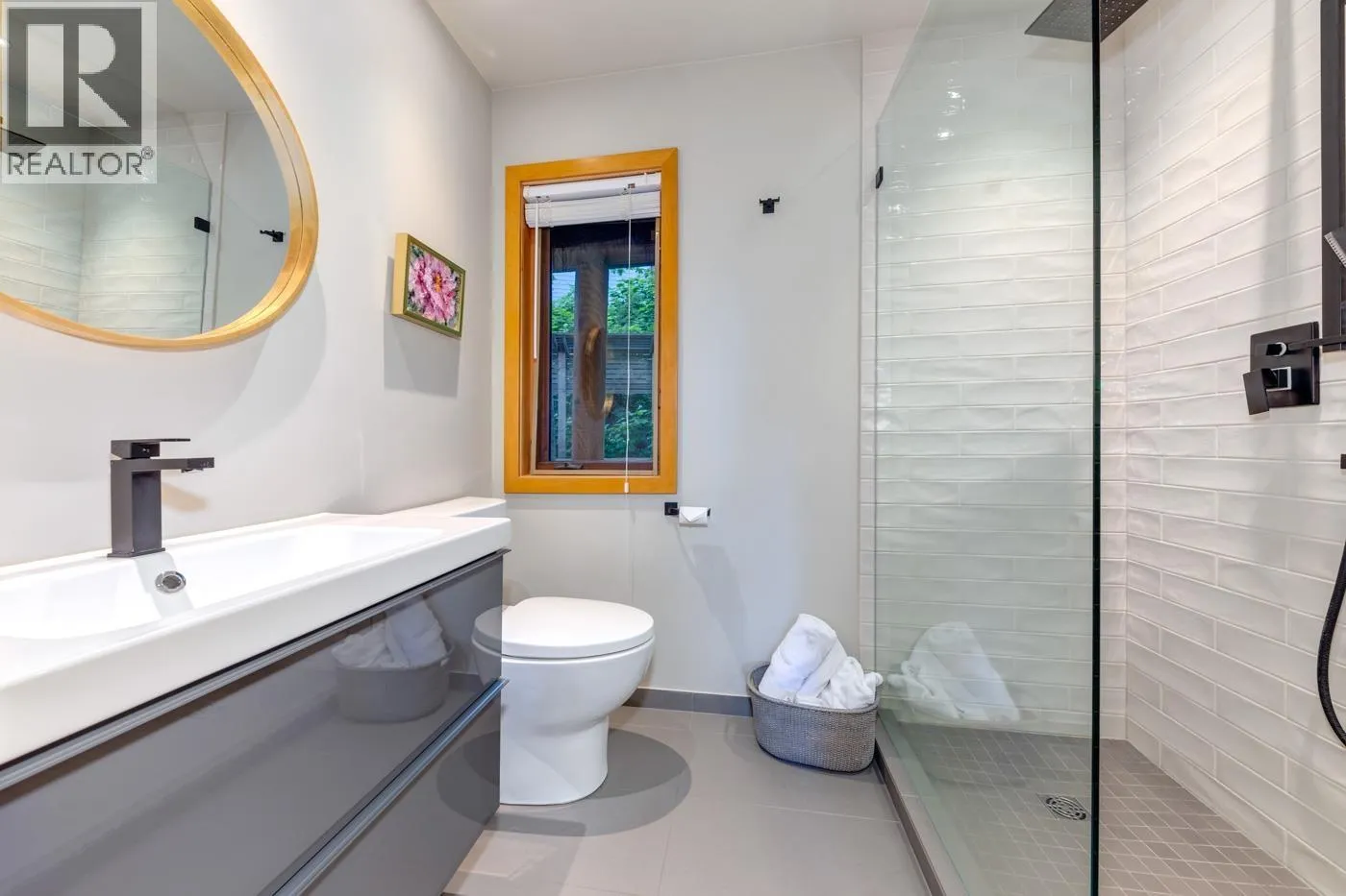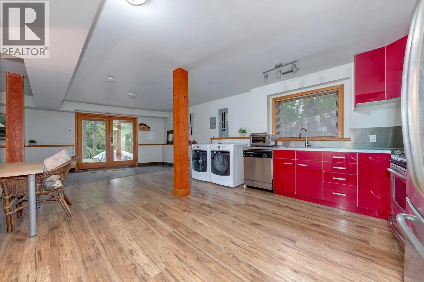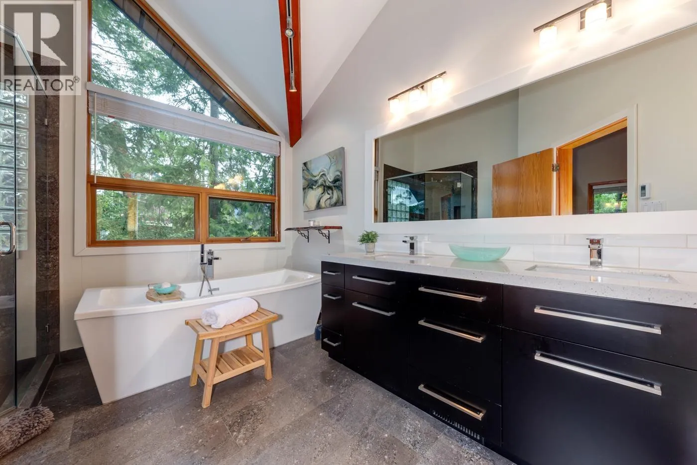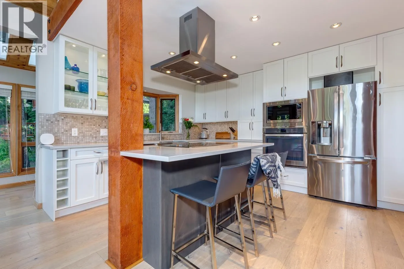 Wake up daily to magnificent mountain views in this stunning, bright, open post & beam home. Soaring cathedral ceilings & floor-to-ceiling windows flood the space with natural light. The open concept main floor is an entertainer's delight, with a wood-burning fireplace, wood floors, & skylights. Step onto your private deck, where a hot tub awaits with sunrise and alpenglow views of Wedge Mtn, Armchair Glacier, & Blackcomb Mtn. The fully updated kitchen is a chef's dream, featuring a wall oven, cooktop, & granite countertops. Upstairs, the primary bedroom has a gas fireplace, private deck, & eagle totem pole to the vaulted ceiling. Luxurious primary ensuite pampers with a double vanity, deep soaker tub, heated floors & a separate shower. 2-bed suite for income or personal use. (id:27476)