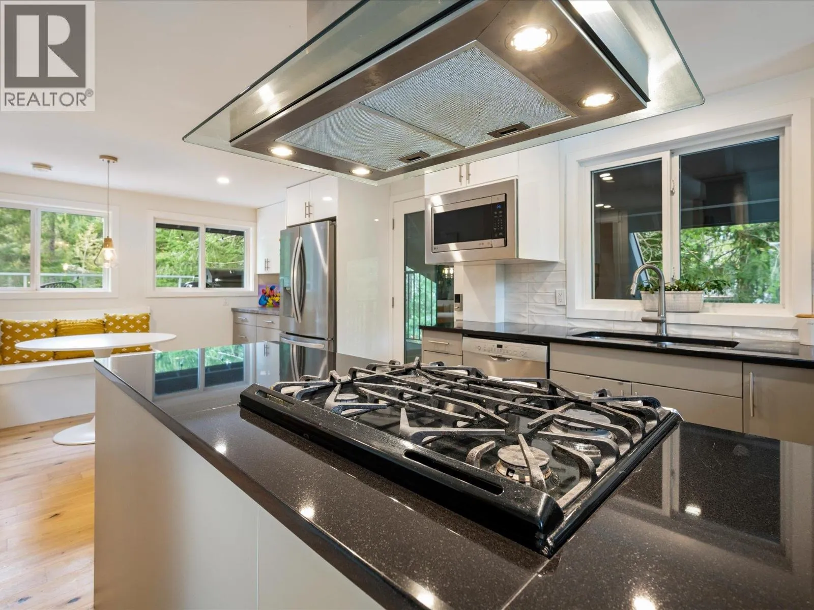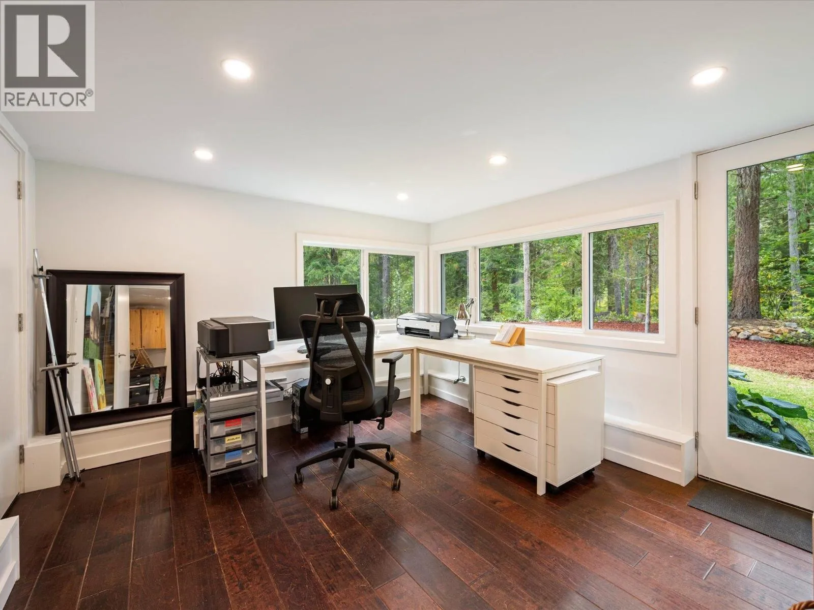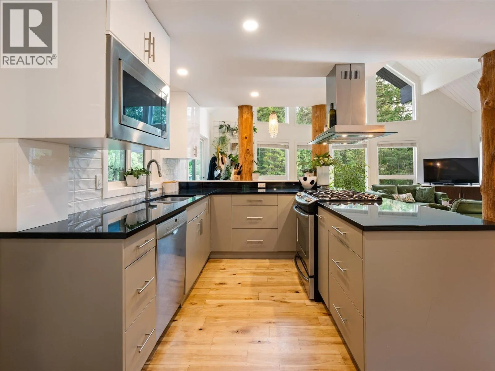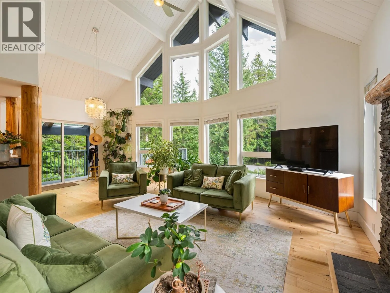 Private Black Tusk Village home blending contemporary comfort with a private treed setting, mountain views, and backing onto Pinecrest Lake with dock access. Vaulted ceilings and expansive windows fill the main level with light, featuring a wood-burning fireplace and a flexible bedroom/den/office space. Upstairs offers two bedrooms; the lower-level master retreat boasts a spa-inspired ensuite and heated floors. Recent upgrades include remodeled bathrooms, updated electrical with EV charging, LED lighting, and a deck with glass railings. Enjoy outdoor living with a covered deck, perennial garden, paved driveway with RV parking, and a two-room studio. Community amenities include private lake access, tennis courts, and trails-your turnkey Whistler escape. (id:27476)