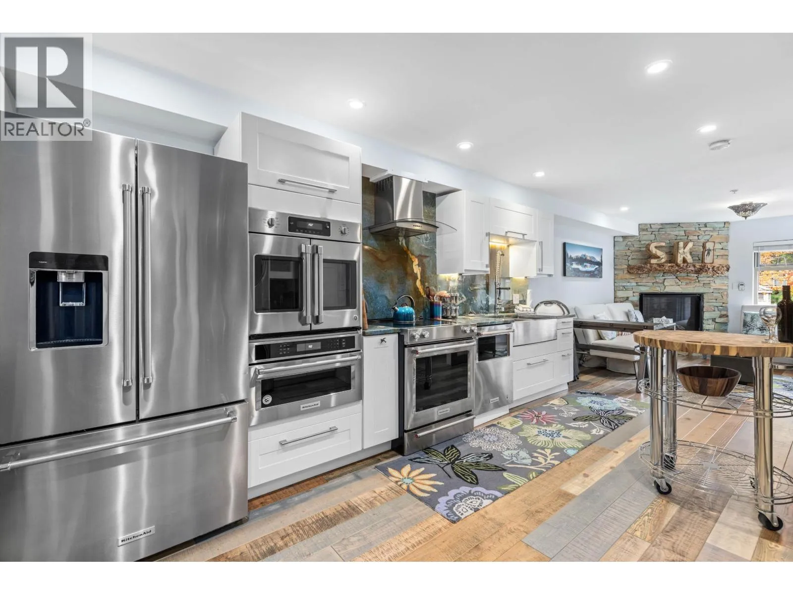 Discover this stunningly renovated Creekside retreat, just steps from the gondola. The gourmet kitchen is a showpiece with dramatic stone counters & premium appliances, complemented by a cozy stone fireplace in the living area with radiant in floor heating throughout. This ground-floor unit offers a private walk-out patio opening to a quiet courtyard, perfect for any season. After a day on the mountain, relax in the year-round outdoor pool and hot tub. With Phase 1 zoning permitting nightly rentals and unlimited owner use, this is a superb turn-key investment and the ultimate Whistler getaway. (id:27476)