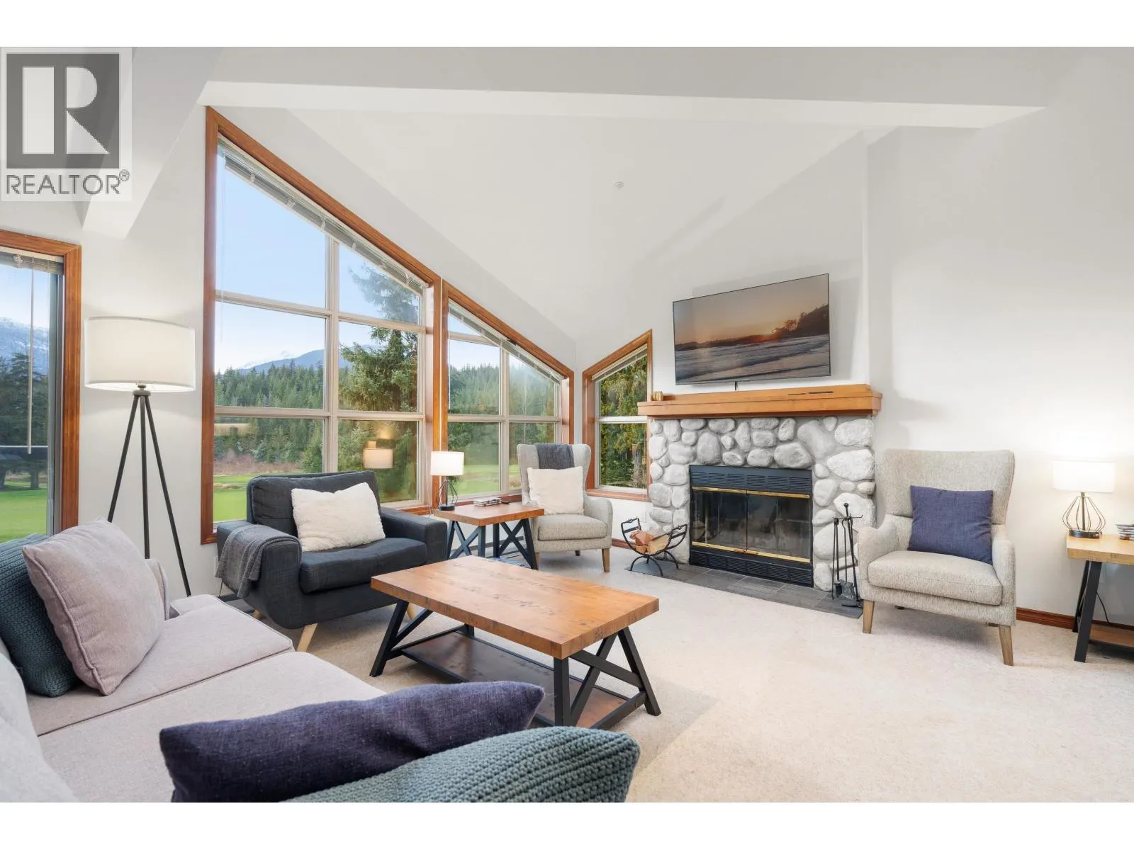 Set along the 1st fairway of the Chateau Whistler Golf Course, Blackcomb Greens #4 is a private retreat featuring 3 bedrooms, 2 bathrooms, and an ideal blend of serenity and sophistication. Positioned at the front of the complex, it offers unobstructed golf course frontage and a peaceful, natural setting. Vaulted ceilings, expansive windows, and abundant light frame stunning fairway vistas throughout the open living spaces and primary suite. The spacious layout sleeps 8+, perfect for family or entertaining. Enjoy direct access to the Valley Trail, walk or bike to Lost Lake and Whistler Village, or take the free winter shuttle to Blackcomb Base. Owners enjoy a large outdoor hot tub, dedicated parking, ample guest parking, and Phase 1 zoning for nightly rentals and unlimited personal use. (id:27476)