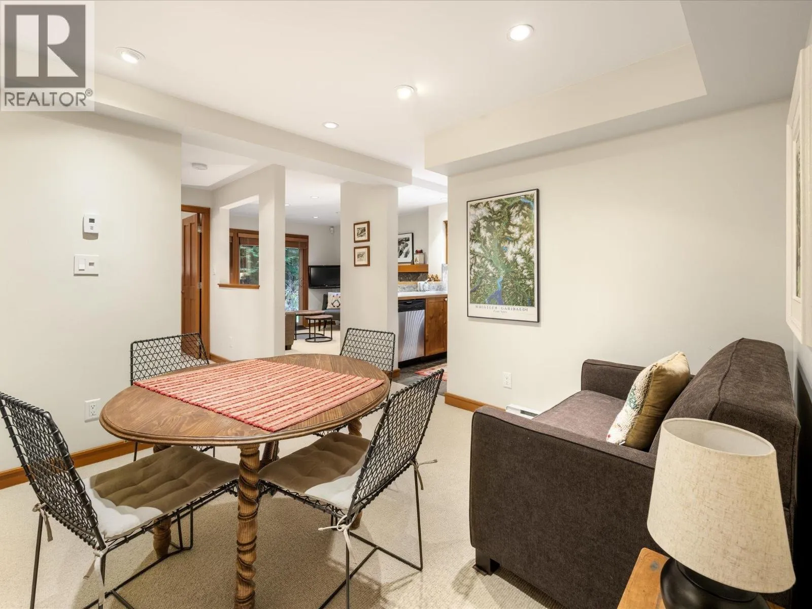 Beautifully updated and spacious 1-bedroom Treeline townhome, quietly situated on a private cul-de-sac in the Blackcomb Benchlands. Features heated slate floors, warm wood accents, wood-burning fireplace, and a large private patio with perfect for a BBQs overlooking a grassy yard. The kitchen includes solid pine cabinets, heated floors, and quality appliances. Treeline offers a ski-home trail, hot tub, secure underground parking with bike storage, and a private ski locker at the front door. Free public bus nearby. GST exempt. (id:27476)