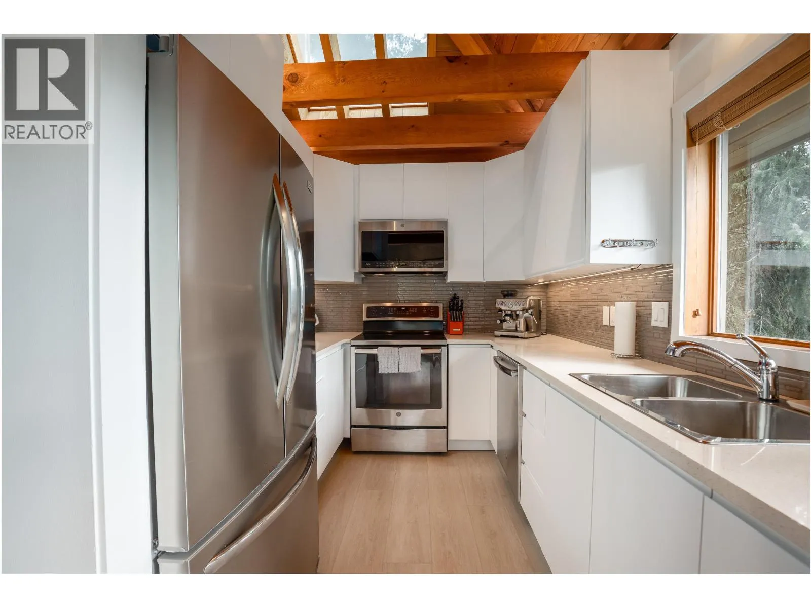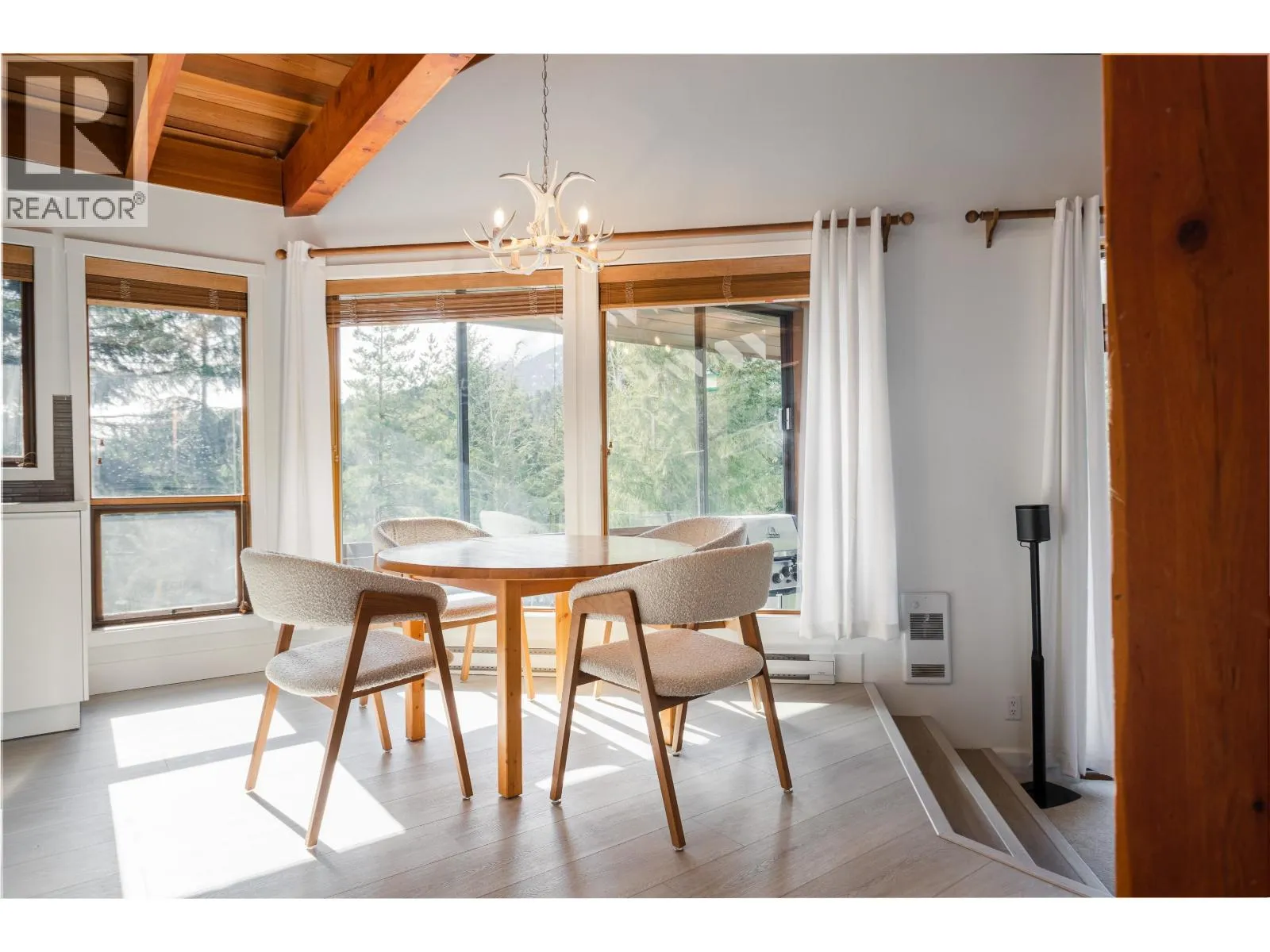 Discover the perfect Whistler retreat in this beautifully updated 2-bed, 2-bath home featuring soaring vaulted ceilings and a warm alpine feel throughout. After a day on the slopes, unwind by the cozy wood-burning fireplace while cooking in the deluxe, fully updated kitchen designed for effortless entertaining. A large mudroom and expansive storage area provide all the space you need for gear and year-round living. Enjoy the convenience of covered parking and a private, peaceful setting just steps from the Village Centre via the Valley Trail. This is the ideal blend of comfort, charm, and location-everything you could want in a Whistler home, in one of Whistler's most sought upon neighbourhoods. (id:27476)