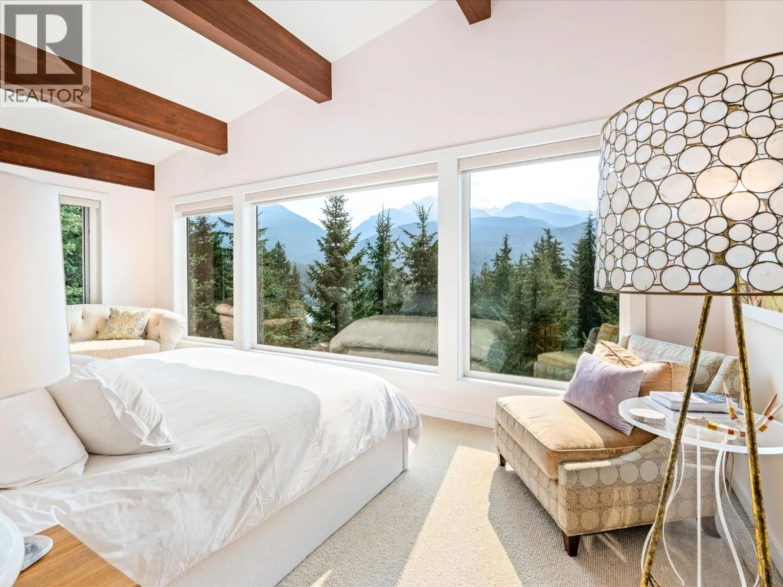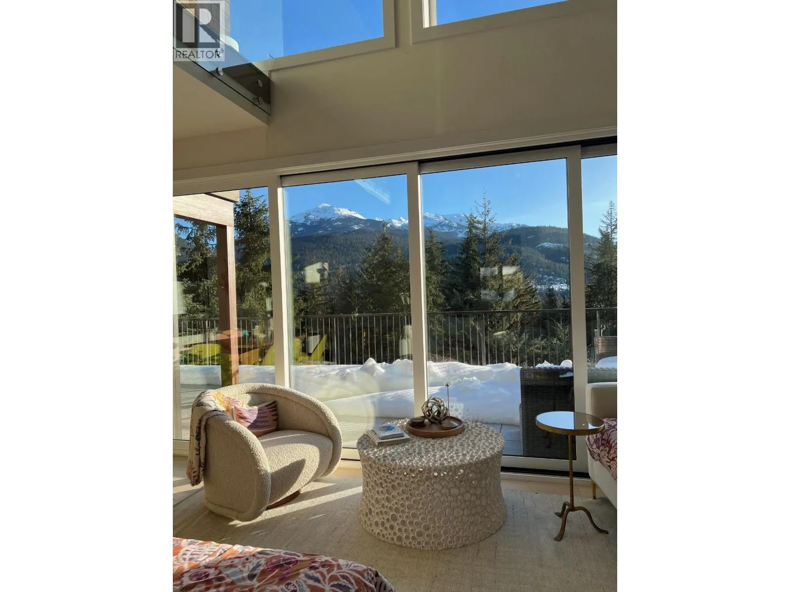 Spectacular, bright, multilevel modern home with breathtaking south-facing panoramic views of Whistler, Blackcomb & Wedge Mountains. 5 spacious bedrooms, 4.5 bathrooms. The main floor boasts a large great room and family room, a separate office, and an open-plan living/kitchen/dining area under a vaulted ceiling, featuring a dramatic floor-to-ceiling fireplace and sliding doors that open to a sunny south-facing deck with a hot tub. Upper level: main bedroom suite with vaulted ceiling & sunrise views, and two more bedrooms with bathrooms. Entry floor: bright, fully equipped 2-bed suite with mountain views, ideal for guests or rental. Double garage, extra parking, heated driveway. Short walk to Green Lake, trails, & mountain biking. Private, serene, stunning mountain living! (id:27476)