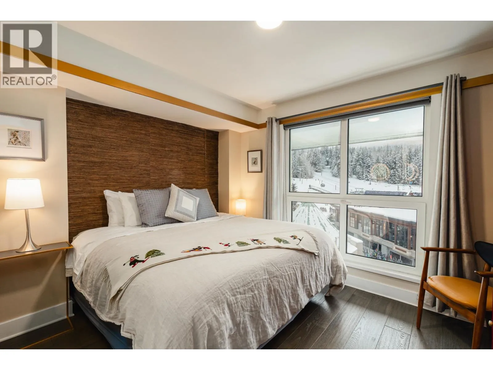 Perfectly located at the base of Blackcomb Mountain, this luxurious ski-in/ski-out residence offers direct, unobstructed views of the mountains, gondola, and Upper Village stroll from every window. A rare one-bedroom with private laundry, it features full-height, symmetrical living room windows that add balance and light-an uncommon detail in the building. Situated on the coveted 4th level, the highest and most sought-after floor for smaller units, this beautifully updated home benefits from Phase 1 nightly rental zoning, exceptional revenue history, and unlimited personal use. Enjoy resort-style amenities including a pool, hot tub, and gym-an elegant alpine retreat and investment. (id:27476)
