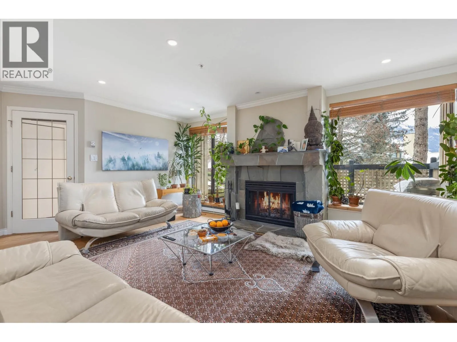 Welcome to Unit 18 at Snowberry, a stunning ground floor 2-bed, 2-bath townhome in the sought after Benchlands. Enjoy a fully renovated kitchen with quartz countertops, stainless steel appliances, and a spacious island, along with beautifully updated bathrooms. The open layout flows into a cozy living room with a wood burning fireplace and large windows. Dutch hardwood floors, two sunny patios, in-suite laundry, and secure underground parking make mountain living easy. This Phase 1 townhome allows unlimited personal use and nightly rentals. Just steps from ski lifts, the Fairmont Chateau Golf Course, Lost Lake trails, and the free shuttle. (id:27476)