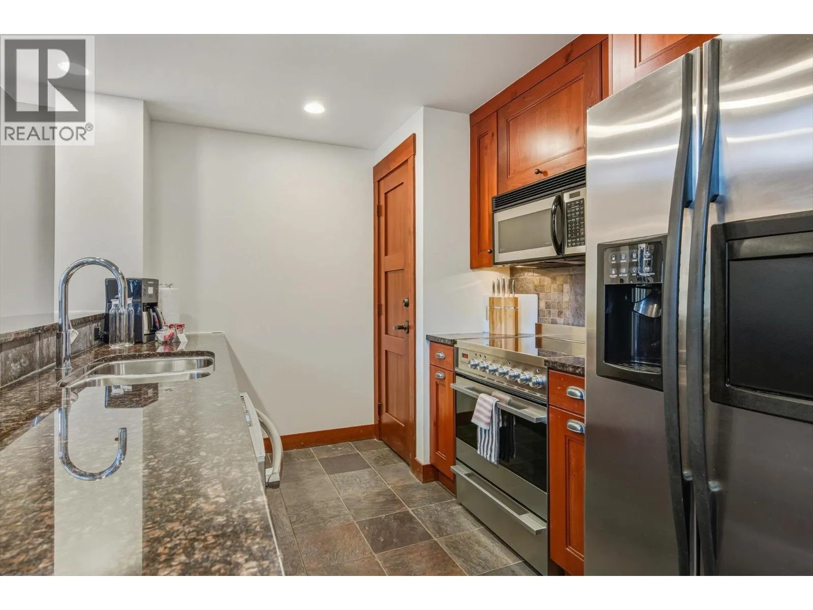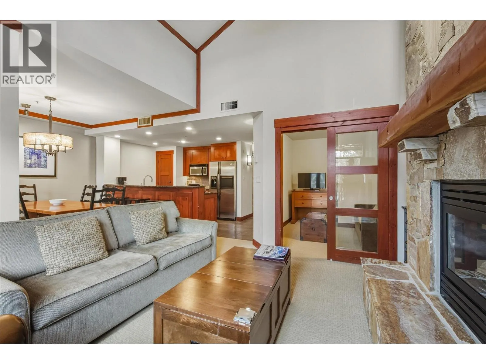 Welcome to unit 208 at First Tracks Lodge, Whistler´s premier Creekside address. Located just 50m from the gondola, this spacious 1BR + Den residence offers a sophisticated two-story layout. The main level features soaring vaulted ceilings, a commanding stone-encased gas fireplace, and a gourmet kitchen with premium stainless appliances. The entire upper floor is a private, self-contained primary sanctuary with its own ensuite and balcony. Enjoy the mountain air from the large main deck off the dining area. Ample storage includes a large gear locker and in-suite lock-offs. Amenities: gym, steam room, 2 hot tubs, and a heated pool. Phase 1 zoning allows for nightly rentals managed via Lodging Ovations. Perfect for those seeking a refined mountain retreat with an easy commute to Vancouver. (id:27476)