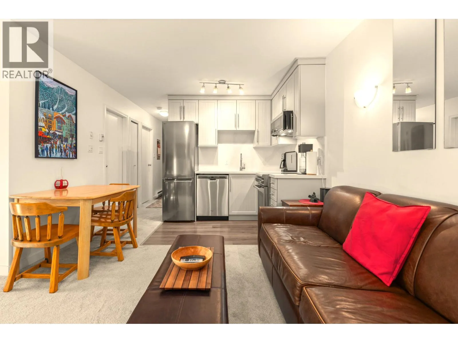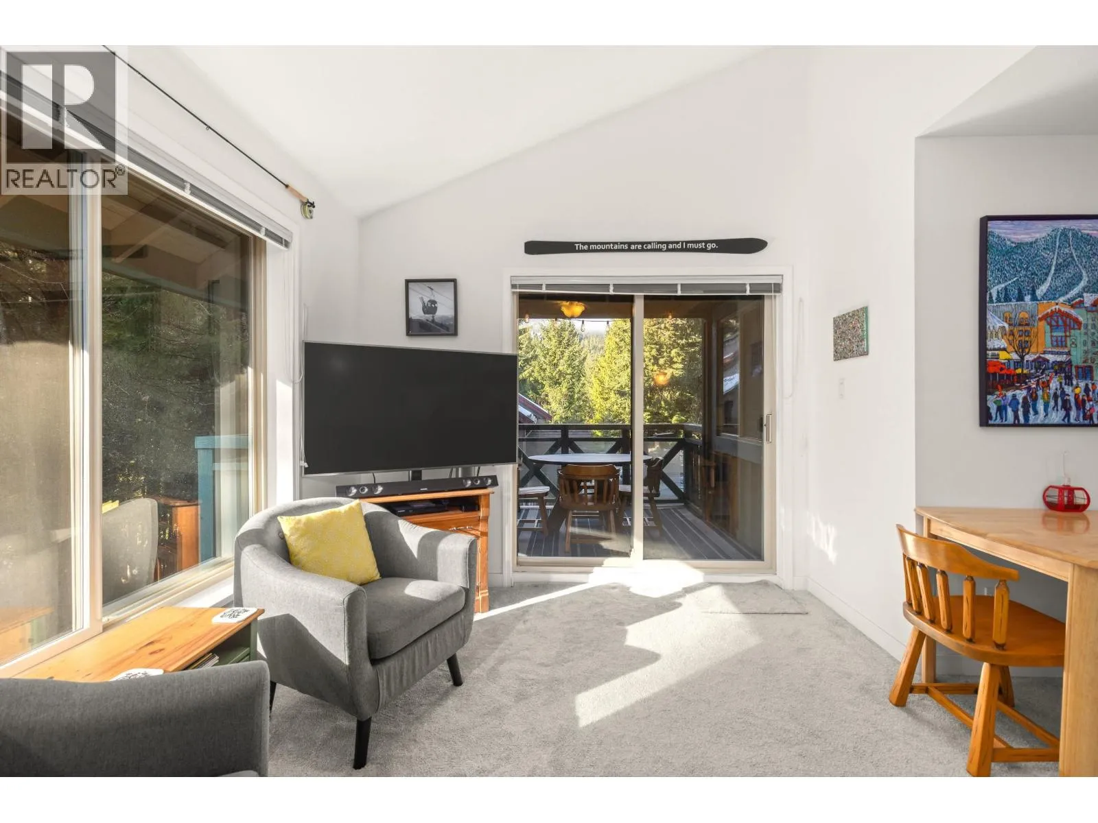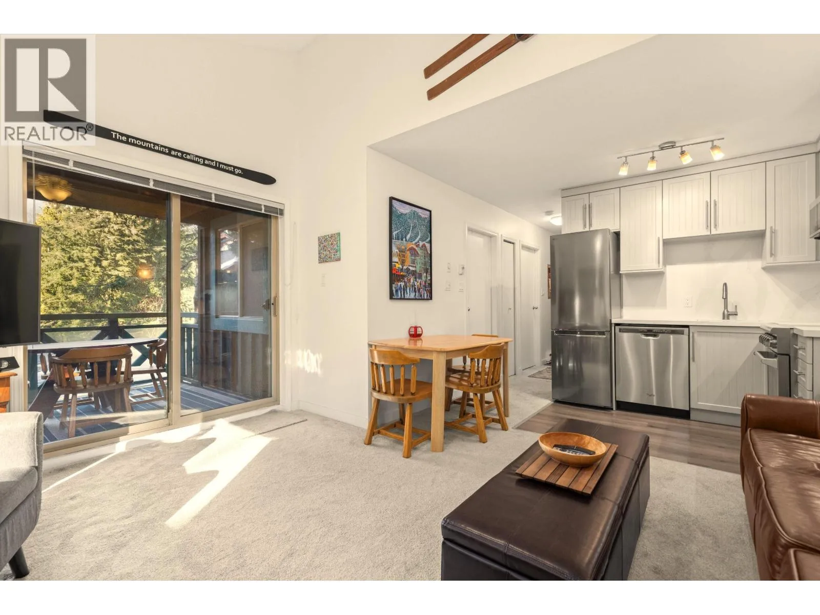 Centrally located 2-bedroom, top-floor end unit townhouse in Alta Vista, ideally situated between Whistler Village and Creekside ski lifts. Just a short walk to Lakeside Park / Alta Lake and steps from the Valley Trail, year-round recreation is right at your doorstop. This bright home features vaulted ceilings, an open layout, and a large southwest-facing balcony with mountain views. Recent updates include a renovated kitchen with stainless steel appliances, renovated bathroom, new carpet and flooring, and fresh paint with new baseboards throughout. Additional features include in-suite laundry, gas fireplace, secured exterior storage with built-in ski and gear storage, and two parking stalls. An ideal full-time or weekend retreat in one of Whistler's most desirable neighborhoods. (id:27476)