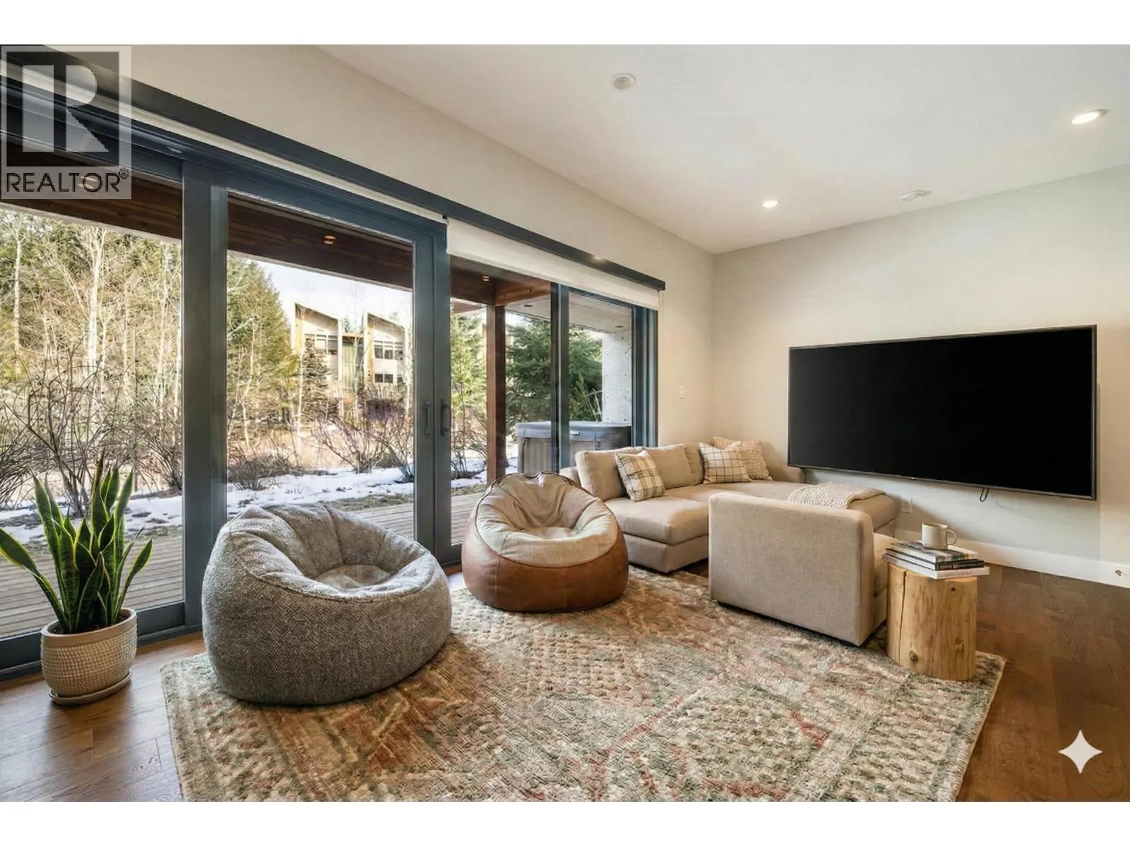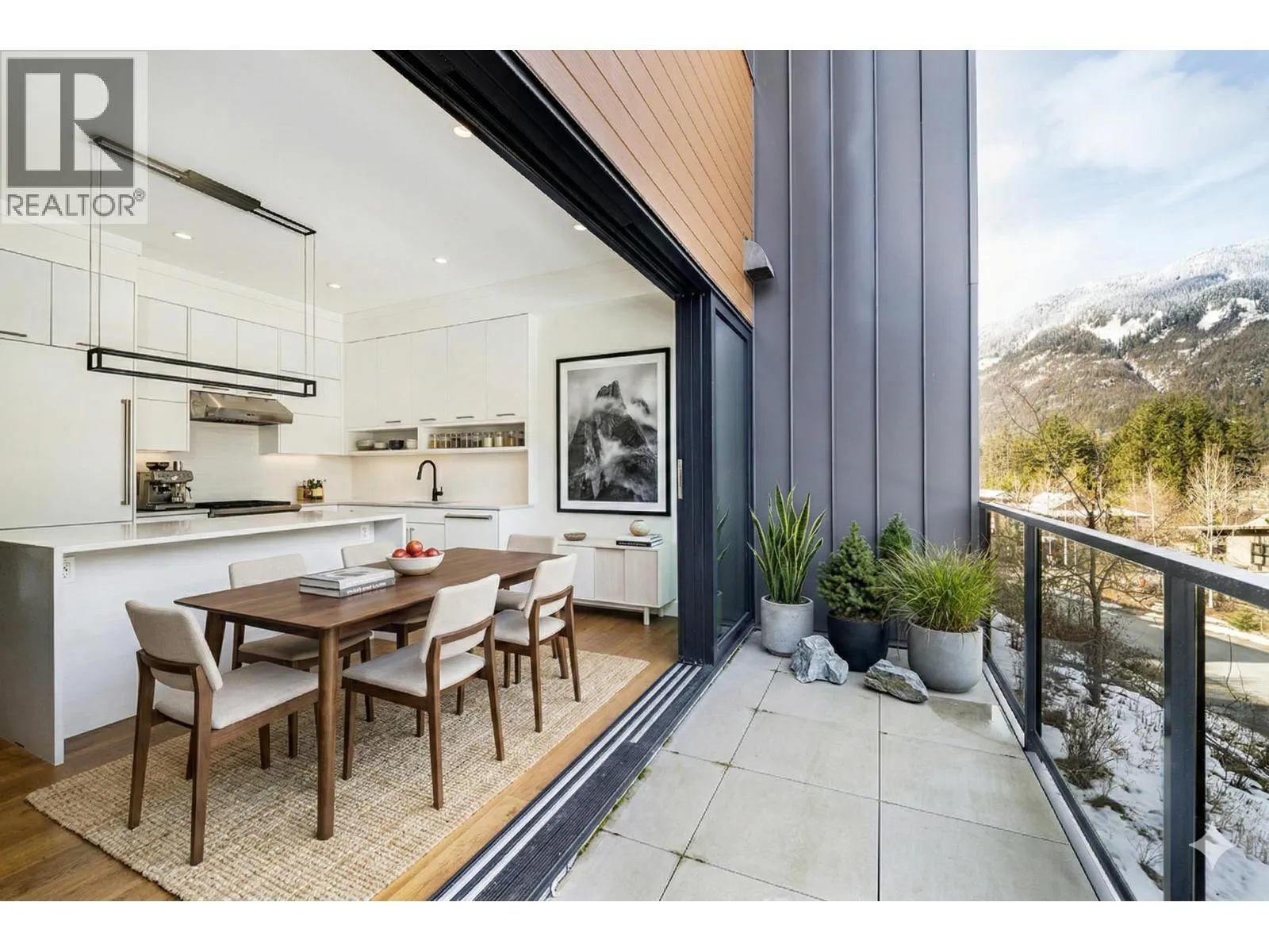 Beautiful contemporary townhouse in the sought-after Basalt development at Cheakamus Crossing. This 4-bedroom/Flex/Media room, 3.5 bathroom home offers radiant in-floor heating throughout, wide plank oak flooring, high ceilings and abundant natural light. The open concept living space features a gourmet kitchen with Sub-Zero fridge, Wolf range, wine fridge and quartz waterfall countertops, flowing into a cozy living area with gas fireplace. Enjoy mountain living with a private hot tub deck, spa-inspired primary suite with a walk-in closet and ensuite, plus a large lower flex/media room or bedroom with a steam shower. Double car garage with built-in storage. Steps to trails and minutes to Whistler Village.   **Some photos have been staged with AI due to the tenancy in place. (id:27476)