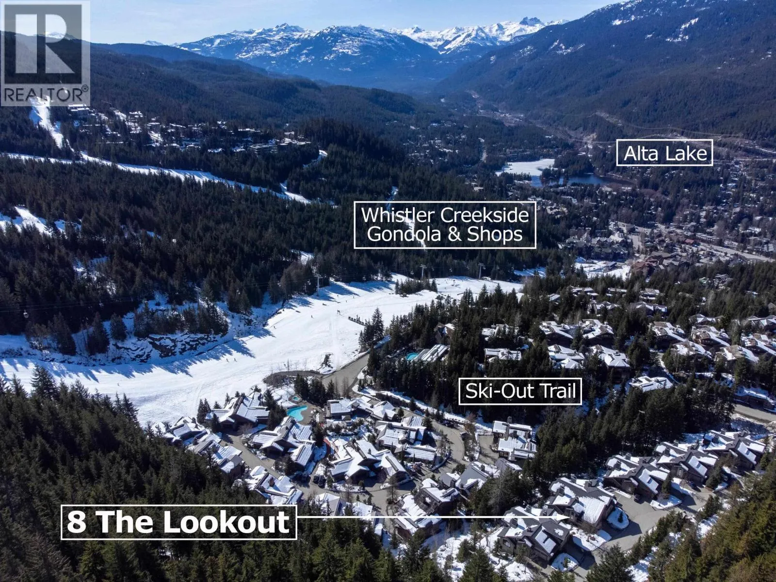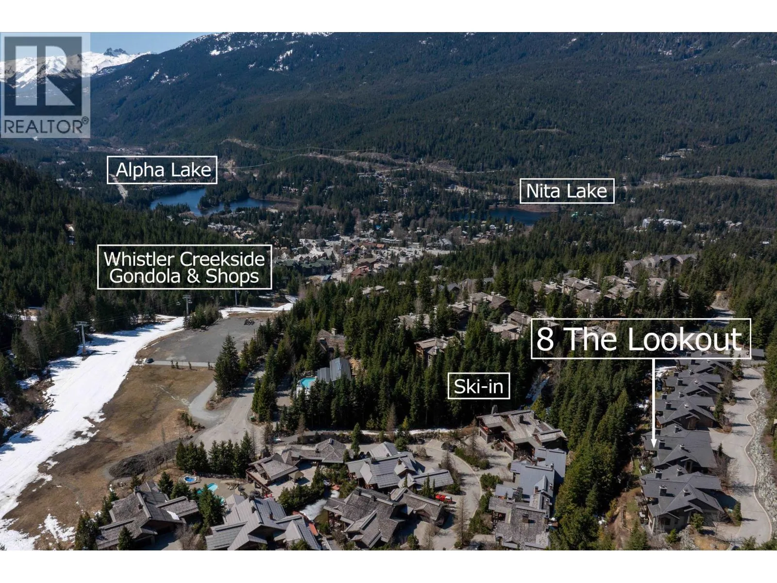 Perched on the side of Whistler Mountain, this stunning 4-bedroom, 2.5-bathroom townhome at 8 Lookout at Taluswood offers true ski-in/ski-out access and sweeping views of Whistler's peak. Featuring an open-concept main level with vaulted ceilings, rich hardwood floors, heated tile in key areas, and a gourmet kitchen with granite countertops, a Thermador gas range, and Sub-Zero fridge. Ideal for entertaining, the home boasts three private decks - including one with a private hot tub for relaxing apres-ski. The spacious primary suite includes a walk-in closet, luxurious soaker tub, and glass shower. With unlimited owner use in a nightly rental zone, this property offers the flexibility to enjoy personally or generate rental revenue. Experience elevated mountain living at its finest. No GST. (id:27476)