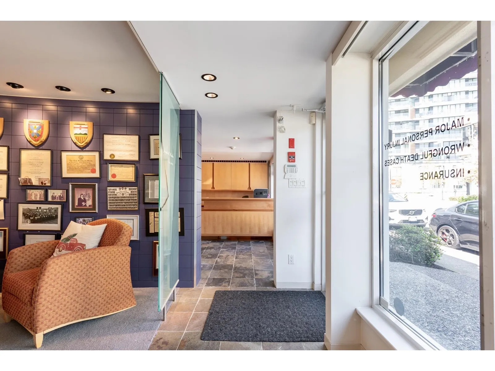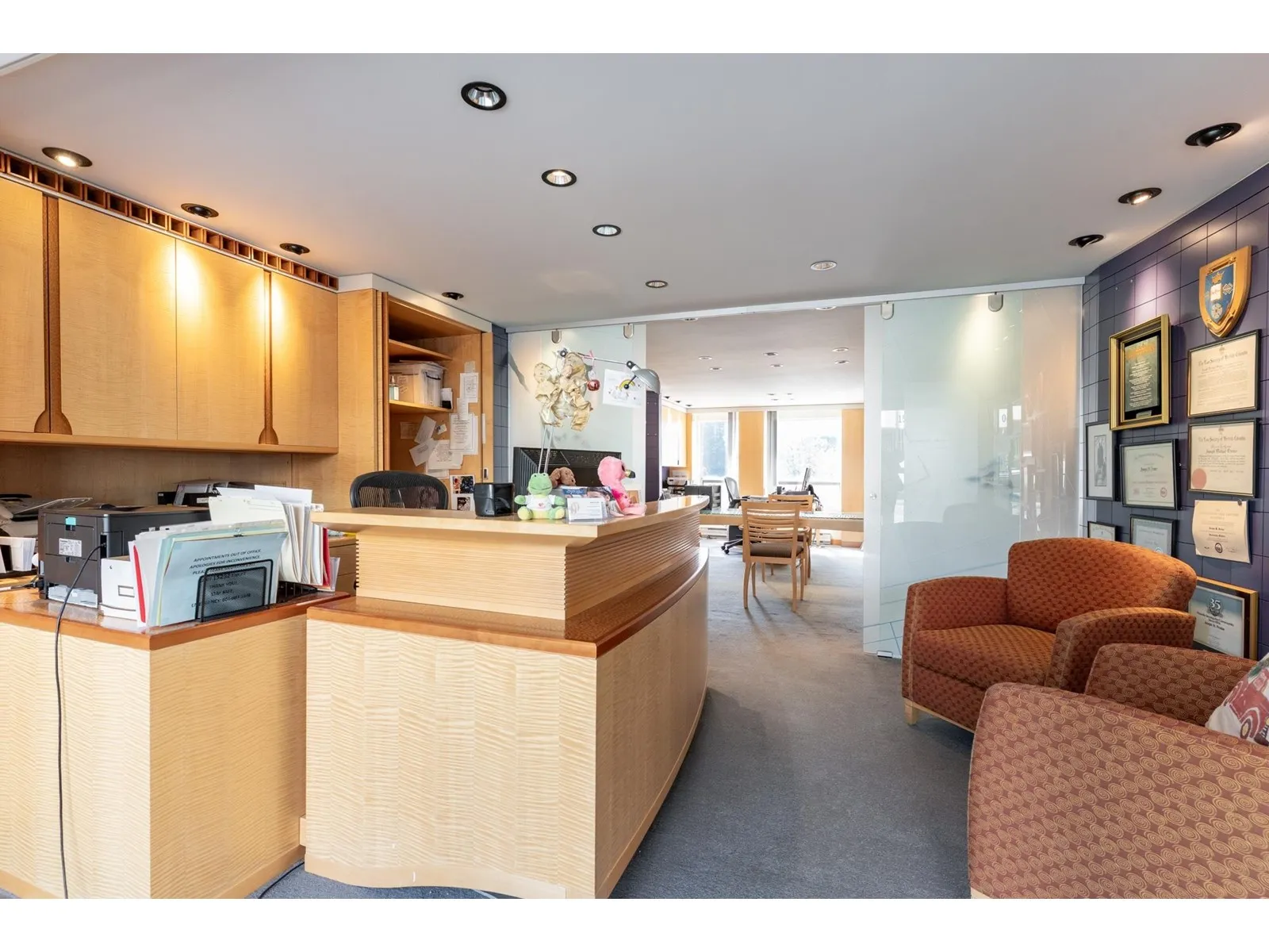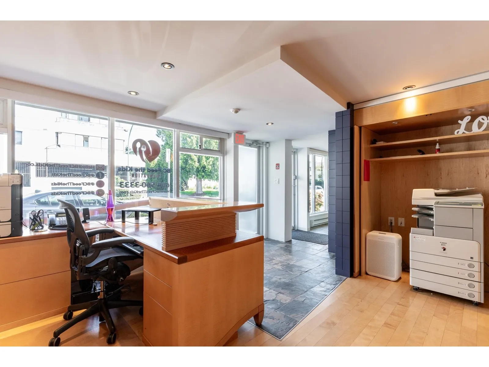 Meticulously maintained mixed-use commercial unit with street-level entry & parking at Franklin Place in White Rock. Ideal for retail, legal, accounting, or medical professional use. Excellent exposure to foot traffic from nearby established businesses. Features include 2 reception desks, a large furnished boardroom, custom built-in cabinetry, kitchen/lunch room, 1 bathroom, 4 combined underground parking stalls. Nicely renovated throughout and move-in ready! A rare opportunity for an owner-user or investor. With over 1,500 sq/ft of total space with both units, this is a rare find-don't miss out, schedule your showing today! Must be sold with 15258 Thrift Ave, White Rock see MLS# C8068766 (id:27476)