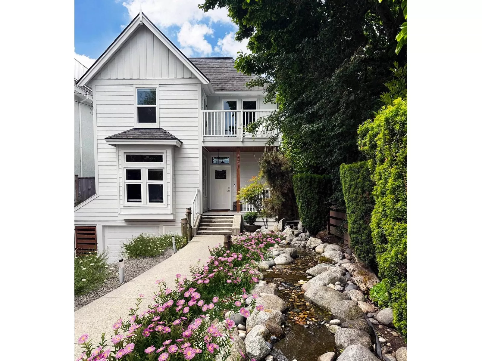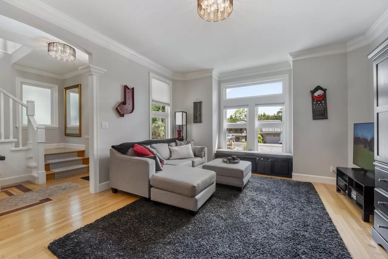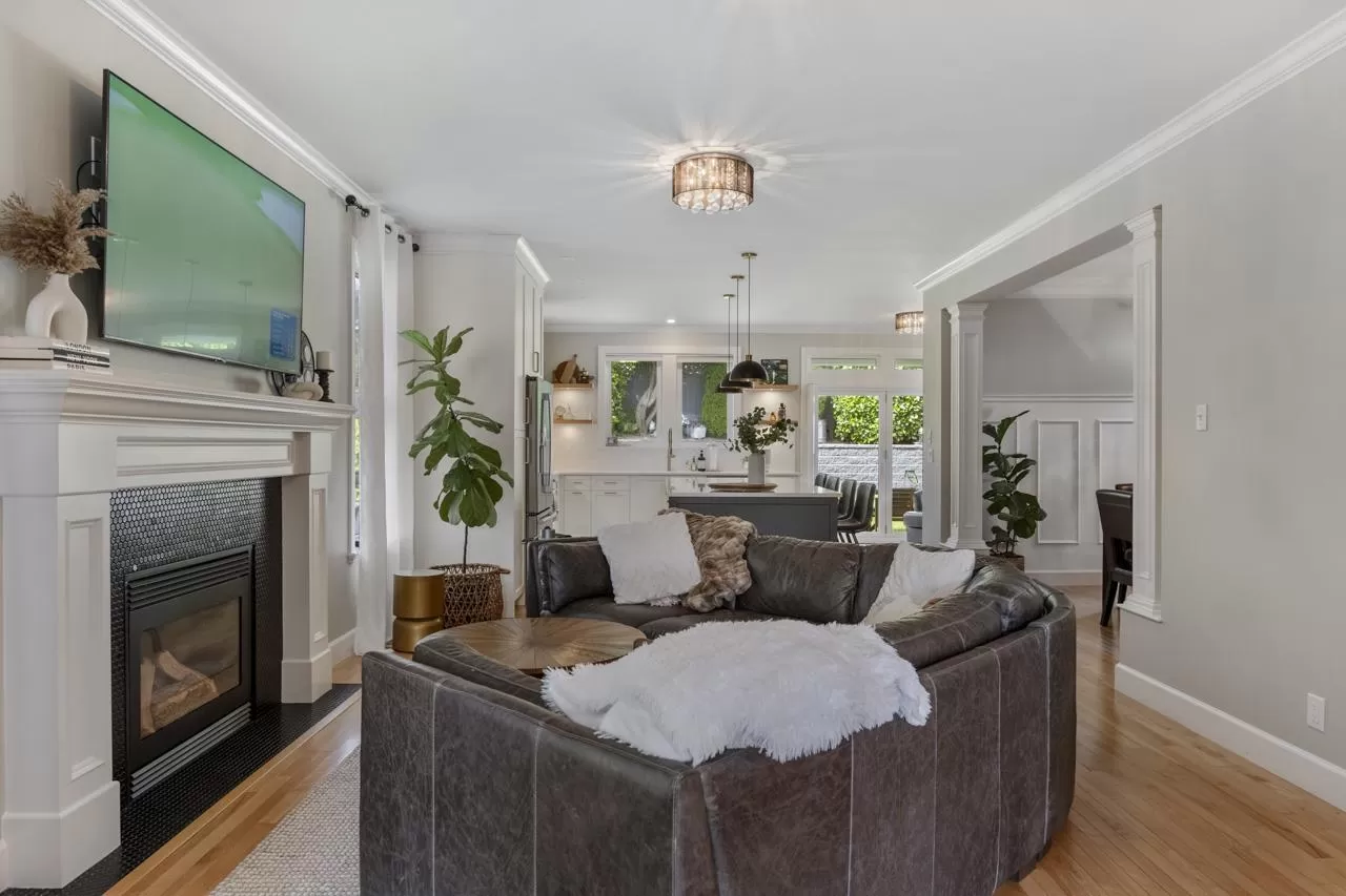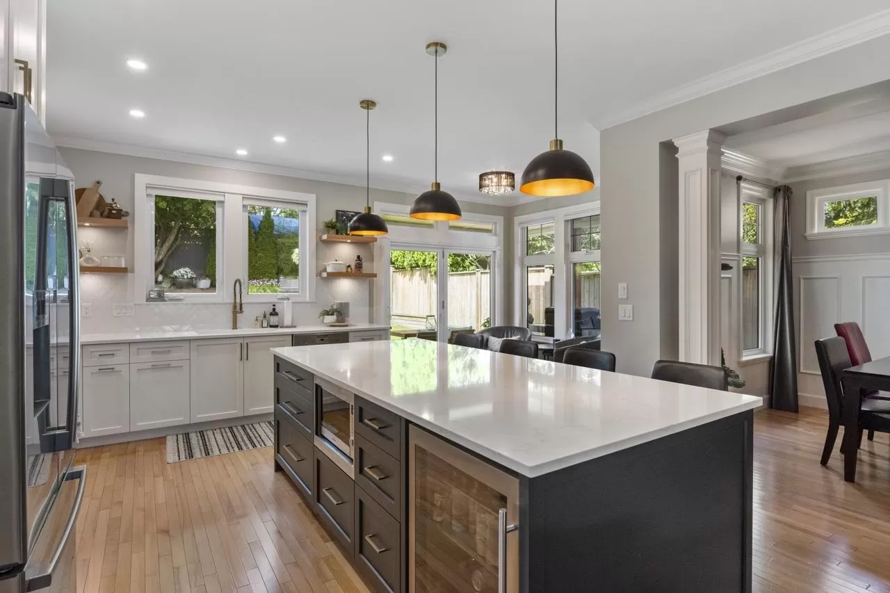 Jewel Box of a home just steps to the White Rock Beach. This gorgeous home has recently been extensively renovated 2023. Designer kitchen w/ natural gas stove, large island, new cabinets & surfaces. A nano wall in kitchen leads to walk-out open and covered patio. Fully private, landscaped backyard is West facing. Living area includes hardwood flooring, central a/c, dining room, natural gas fireplace in living room & family room. Foyer entry. Above three large bedrooms/three bath-balcony, sumptuous primary suite w/ soaker tub-dual shower walk-in, double sinks & walk-in closet. Basement has storage & one car garage. Home is 2,641 SF. In 2020: New siding, windows, soffits & gutters. Landscaped backyard 2018. New roof (2016). French immersion: Peace Arch Elem. & Earl Marriott Sec. (id:27476)