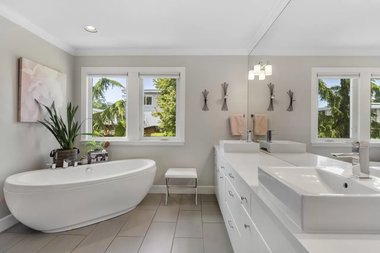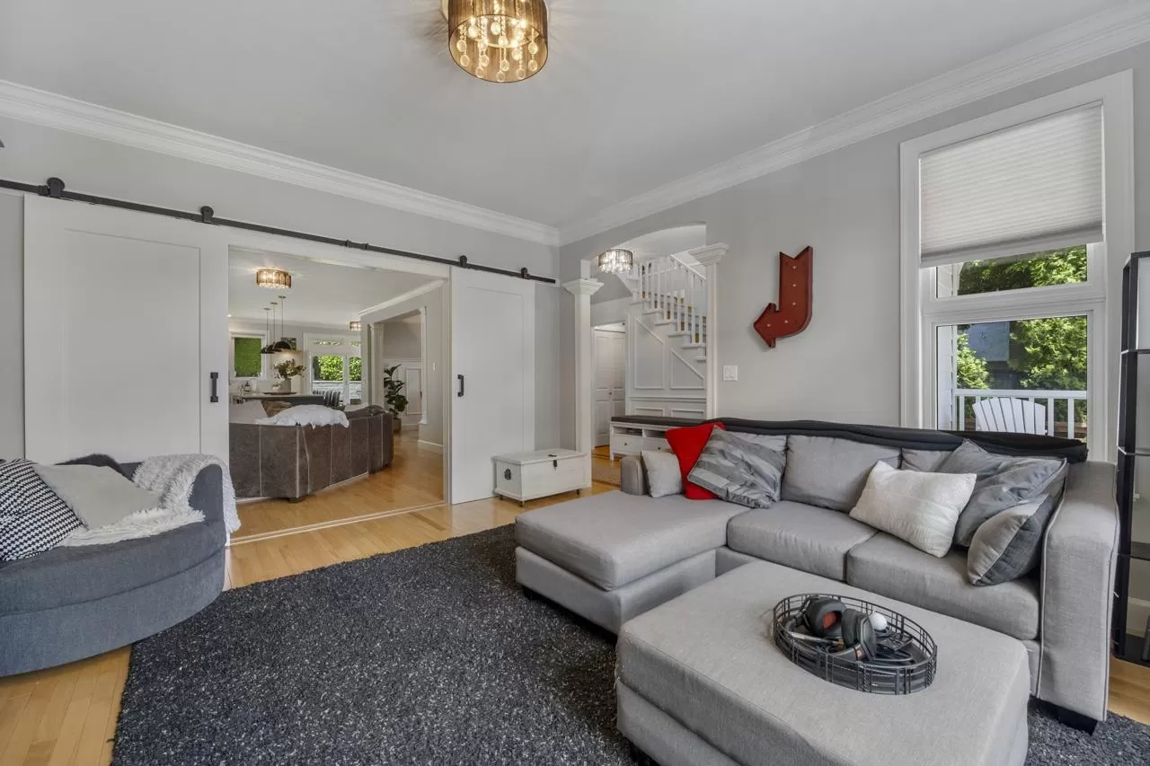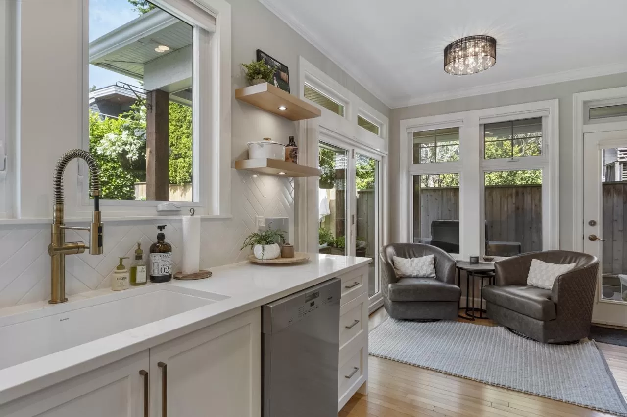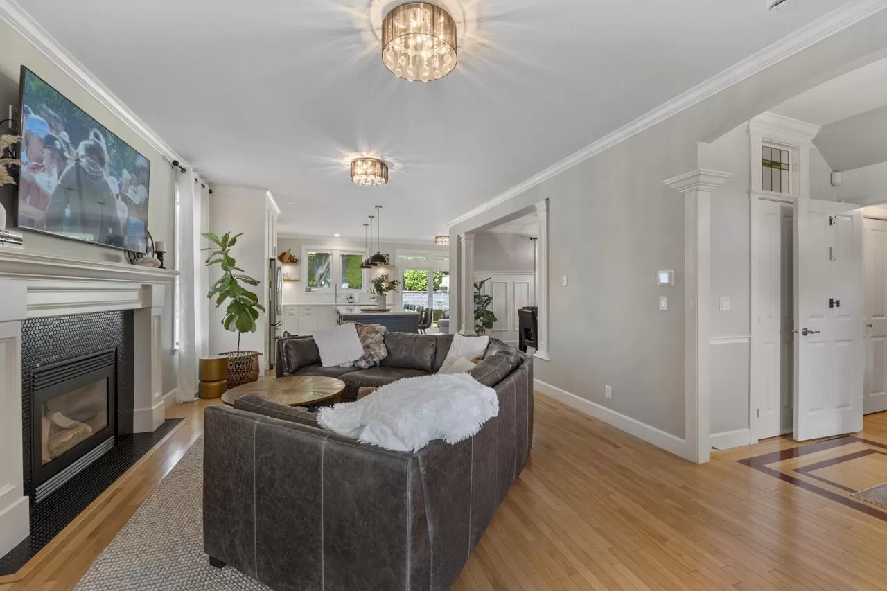 Jewel Box of a home just steps to the White Rock Beach. This gorgeous home has recently been extensively renovated 2023. Designer kitchen w/ natural gas stove, large island, new cabinets & surfaces. A nano wall in kitchen leads to walk-out open and covered patio. Fully private, landscaped backyard is West facing. Living area includes hardwood flooring, central a/c, dining room, natural gas fireplace in living room & family room. Foyer entry. Above three large bedrooms/three bath-balcony, sumptuous primary suite w/ soaker tub-dual shower walk-in, double sinks & walk-in closet. Basement has storage & one car garage. Home is 2,641 SF. In 2020: New siding, windows, soffits & gutters. Landscaped backyard 2018. New roof (2016). French immersion: Peace Arch Elem. & Earl Marriott Sec. (id:27476)