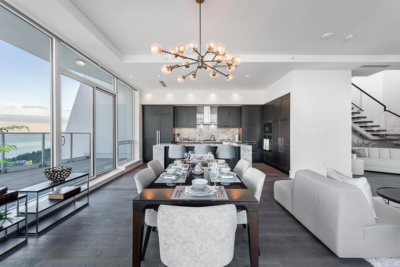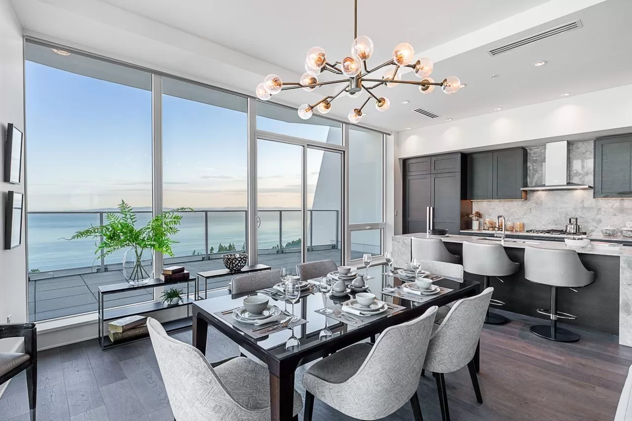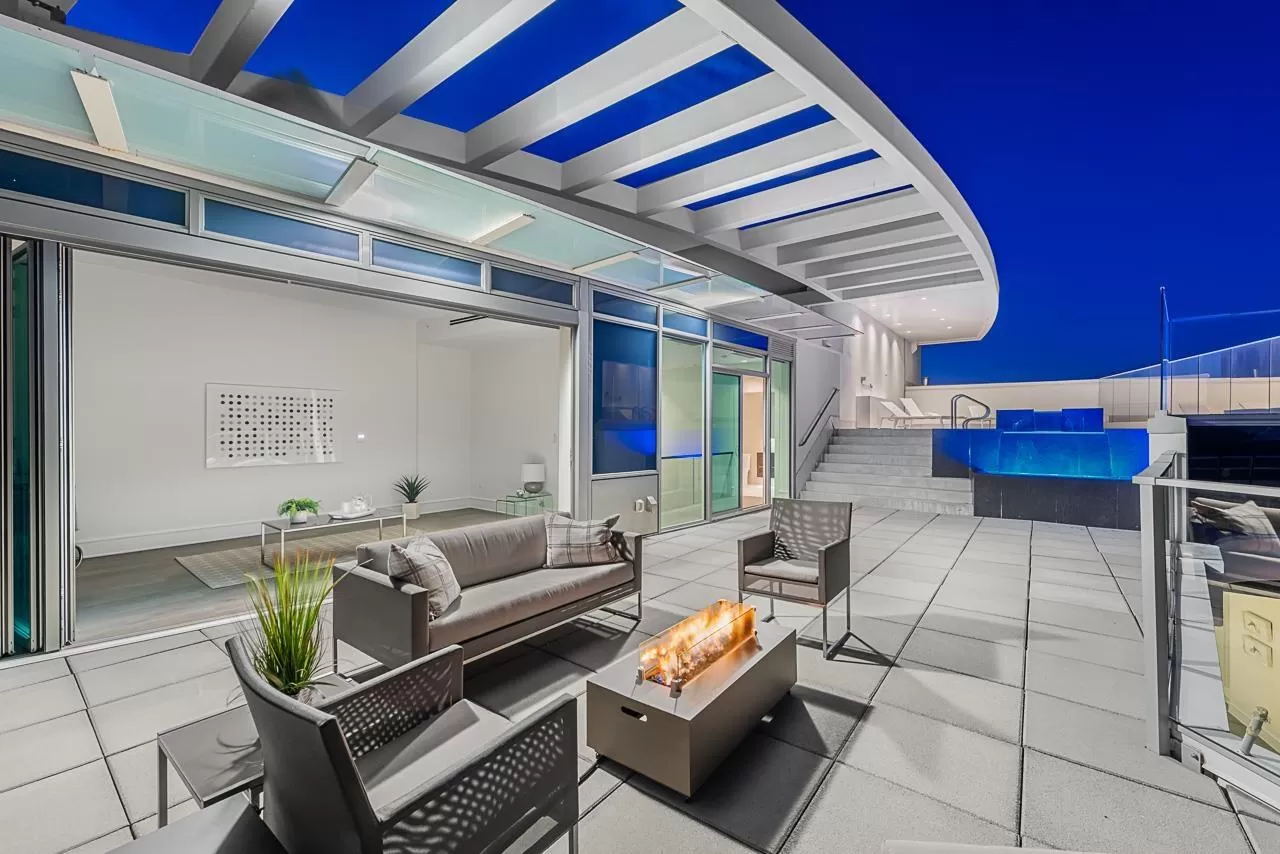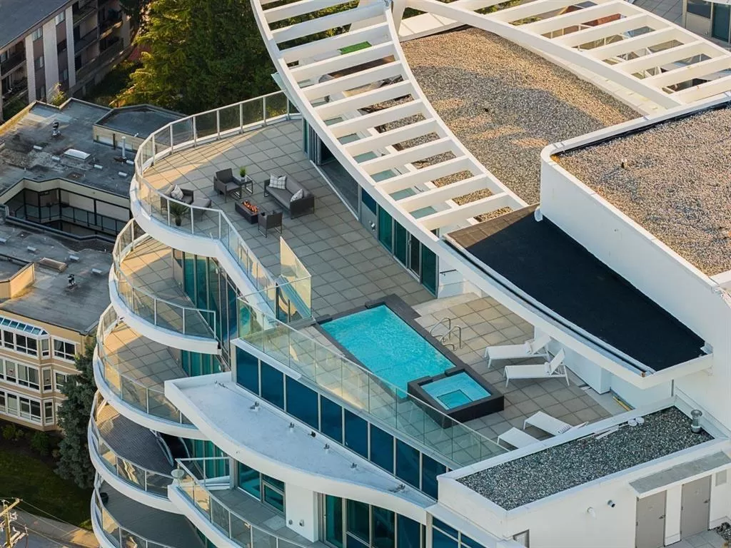 Experience the pinnacle of seaside-urban living in this 2-story Penthouse at White Rock's Foster Martin. Stunning 3,800 sqft residence features 4 spacious bedrooms, 5.5 baths, a den, flex area and an upper loft suite. Revel in the panoramic ocean and mountain views, soaring 11' ceilings, floor-to-ceiling windows, a chef's kitchen with Miele appliances, spa-like baths, and luxurious finishings throughout. Enjoy 2,400 sqft of outdoor living with 4 main floor balconies and a spectacular rooftop deck with cascading waterfall hot tub and pool, fire table area, and outdoor kitchen rough-in. Includes a private triple garage with storage and resort-style amenities: indoor/outdoor pool, sauna/steam room, gym, lounge, games room and concierge. The perfect harmony of luxury, location, and lifestyle! (id:27476)