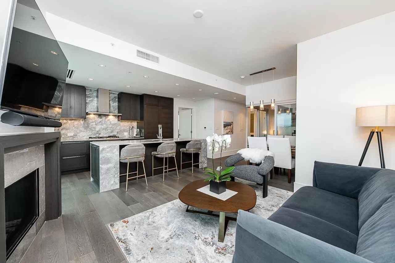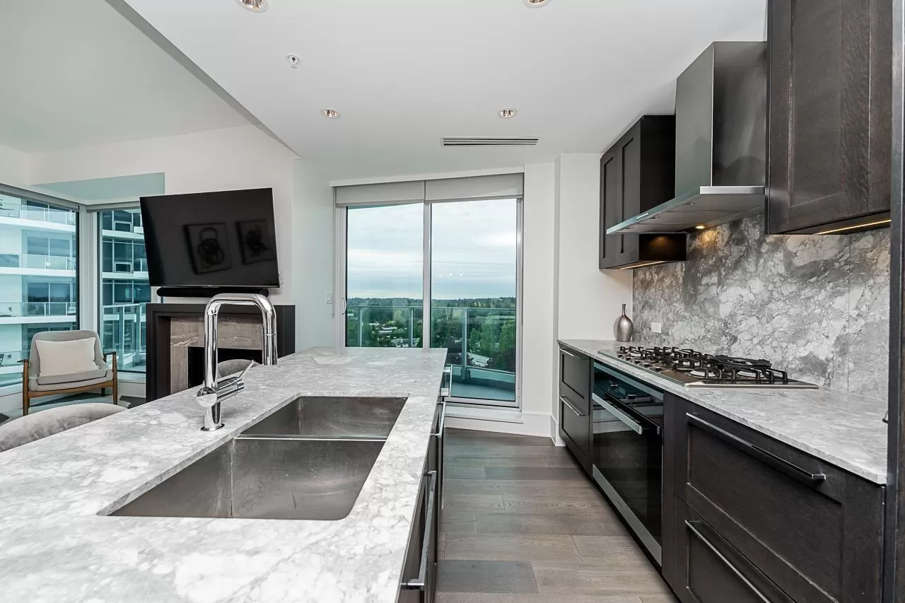 FOSTER MARTIN - The epitome of luxury in the heart of White Rock! This beautiful 2 Bed, 2 Bath & Den Corner unit has it all. Enjoy the panoramic view of Mountain Baker & the ever exciting waters of Boundary/Semiahmoo Bay from the 2 balconies which seamlessly allows indoor living to expand to the outdoors. Excellent floor plan boasts lots of natural light & space. Thoughtfully designed with elegant touches to inspire, featuring top-of-the-line Miele appliances, hardwood floors, carrera marble tiles and countertops, a cozy gas fireplace and upgraded fixtures. Amazing 10,000 sq.ft. amenities. Walking distance to everything. School catchment, White Rock Elementary and Semiahmoo Secondary. (id:27476)