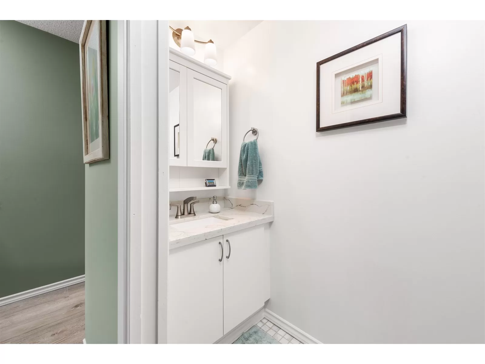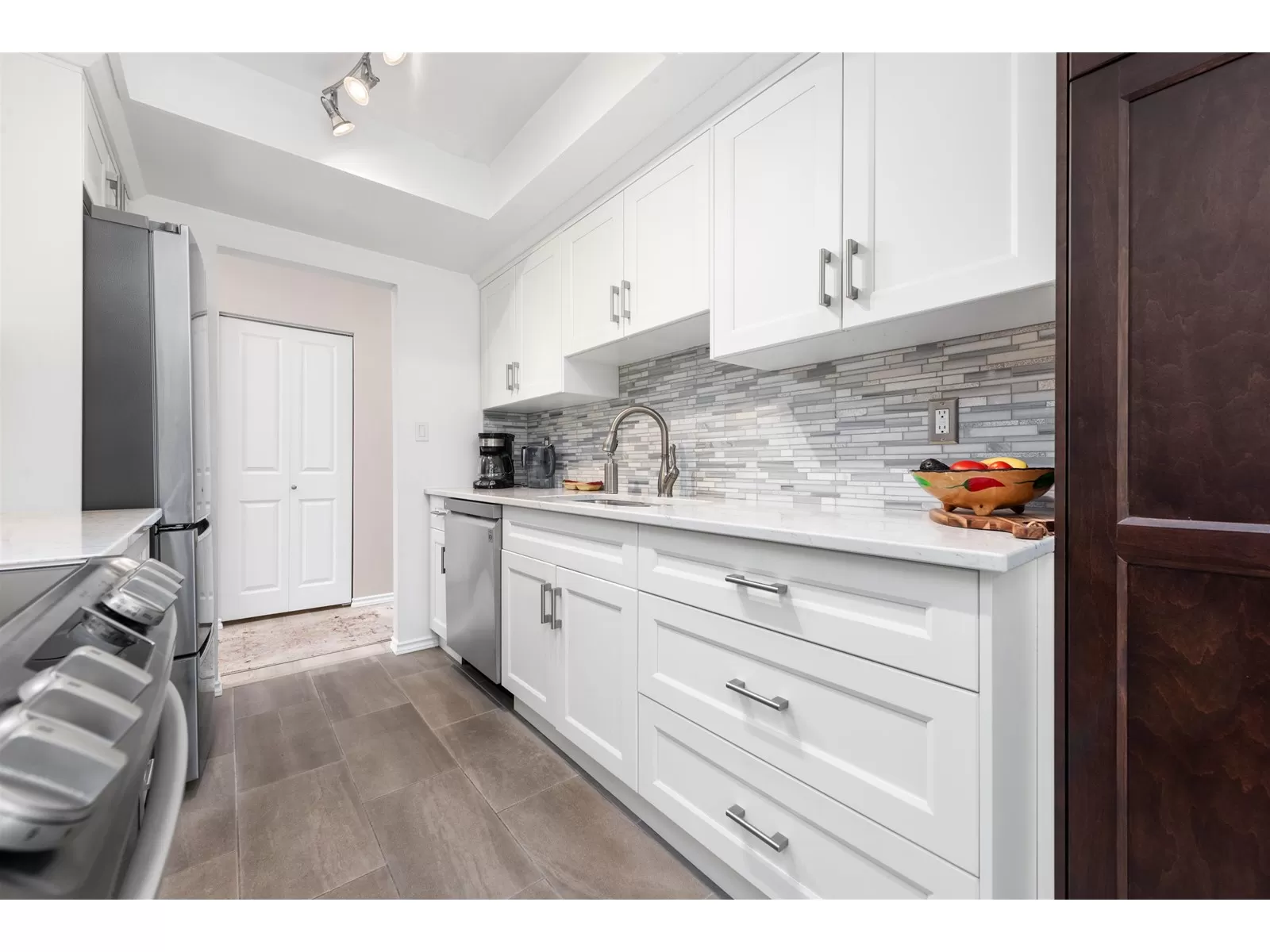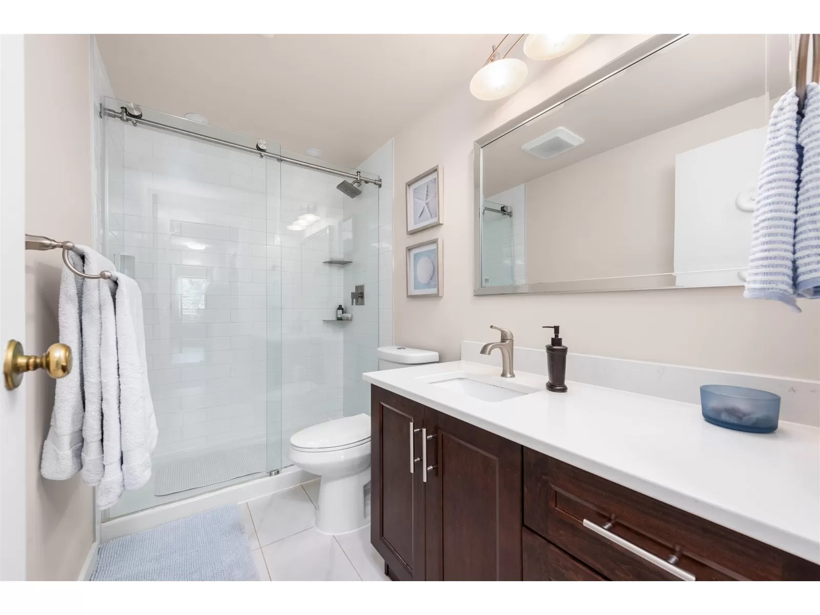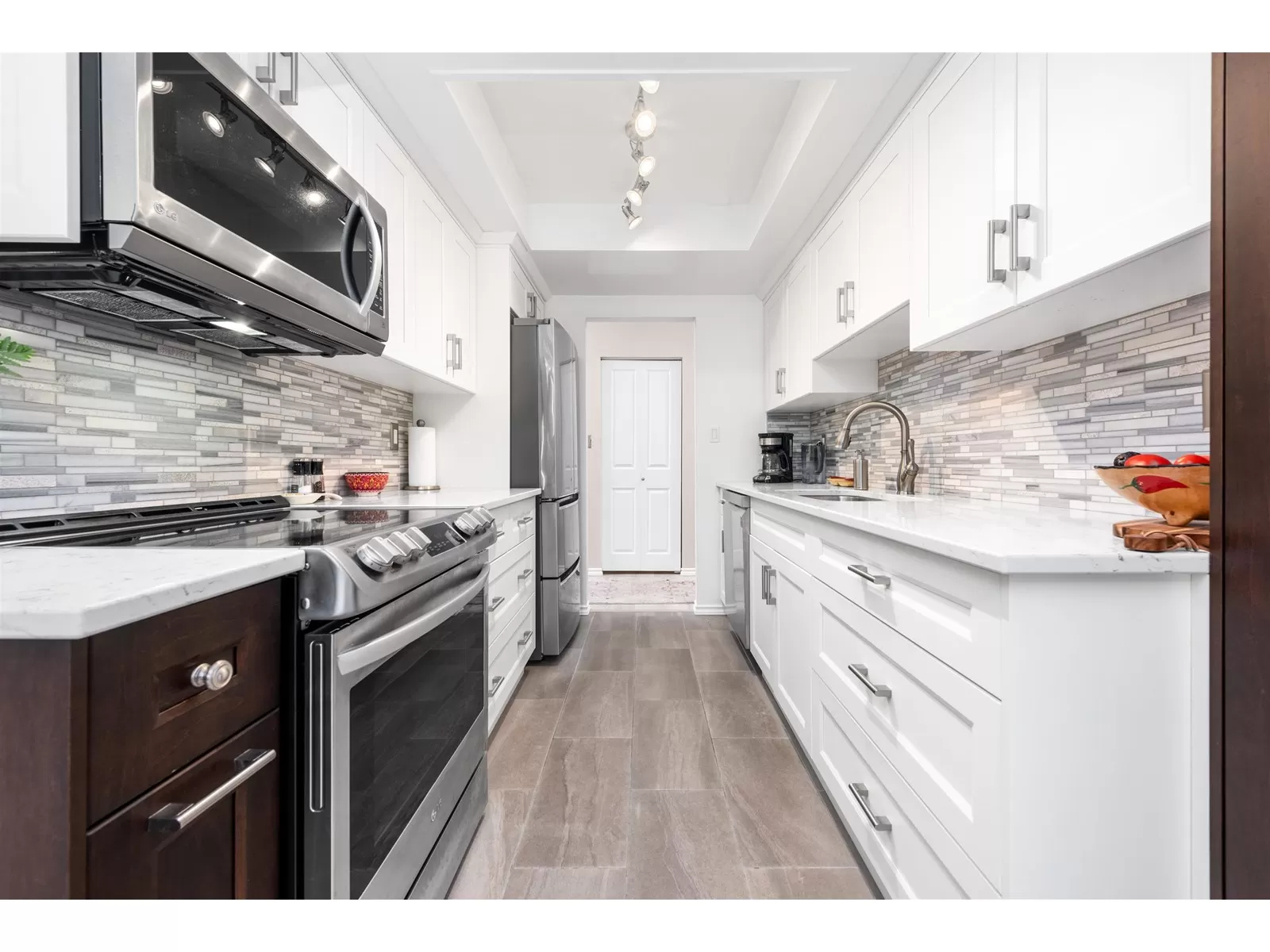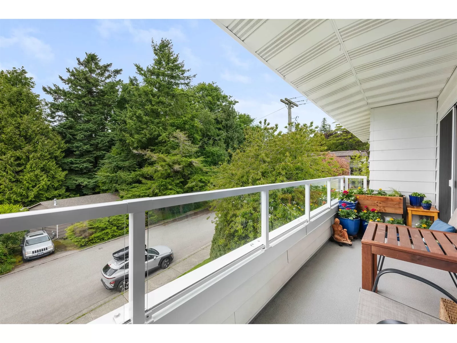 Enjoy breathtaking ocean views year-round from the West facing patio or while relaxing inside by the cozy gas fireplace in this beautifully updated 2 bed, 1.5 bath corner unit at the Baycrest. A private and quiet retreat, this home's serene, yet central location, faces White Rock's protected ravine, and with only a sundeck above it offers a true penthouse feel. Fully renovated throughout, featuring new flooring, updated bathrooms and kitchen with custom cabinetry and stylish modern finishes. Just a short stroll to shops, cafes, and restaurants, or take the beautifully landscaped stairs down to the beach. This is seaside living at its best-quiet, convenient, and move-in ready. Secure underground parking and heat incl. in strata fees. Book your appointment to catch the sunset here! (id:27476)