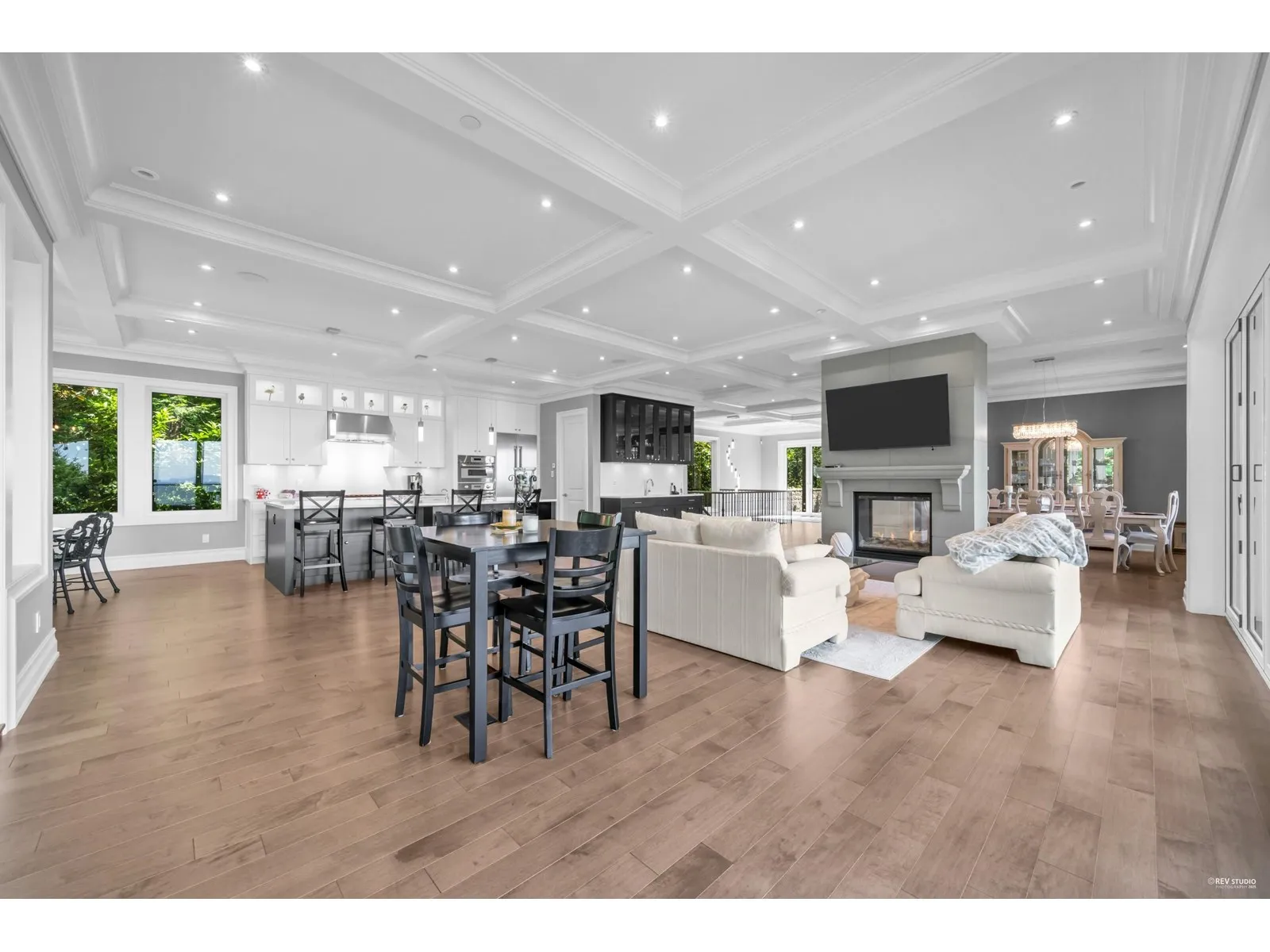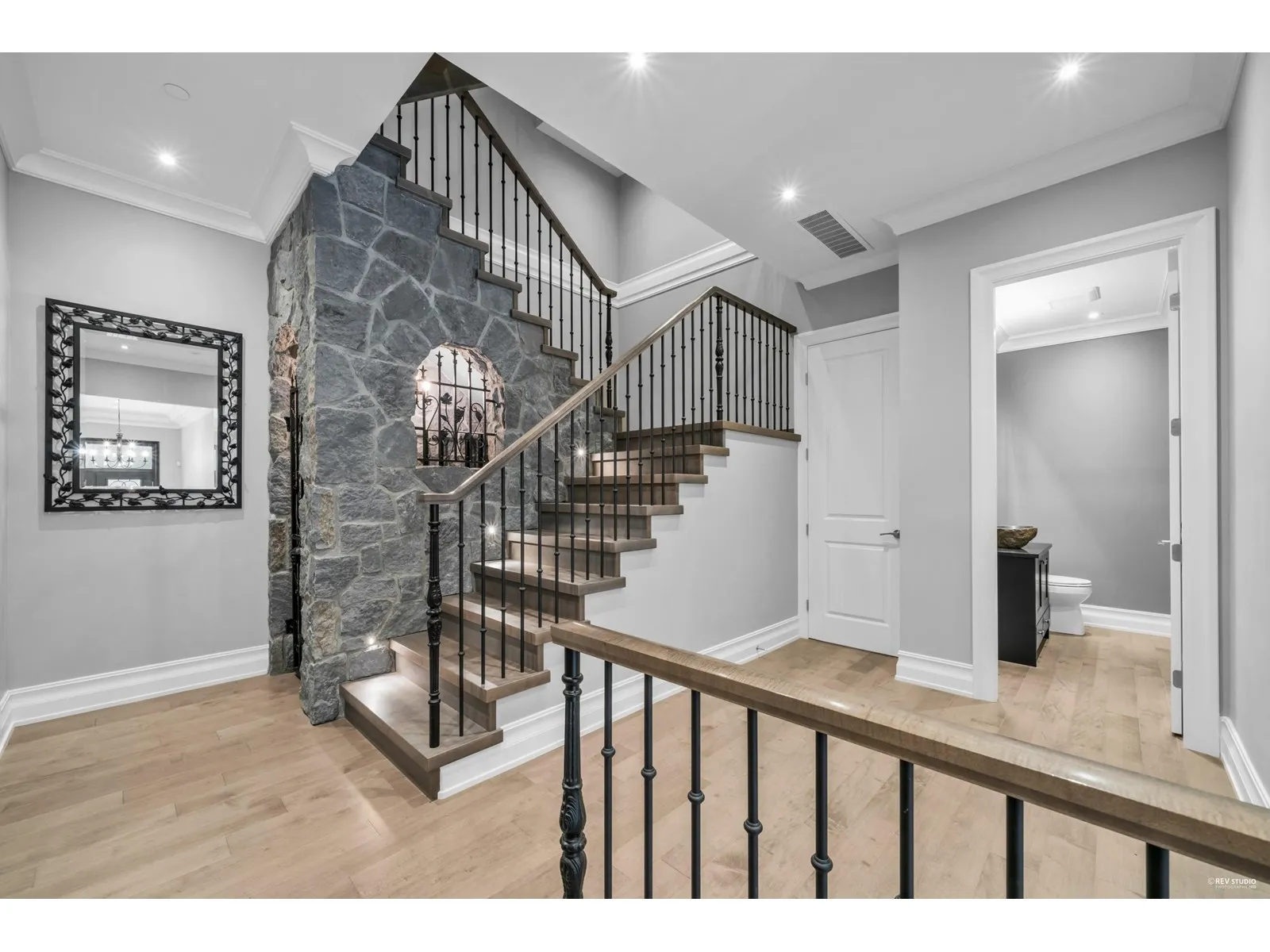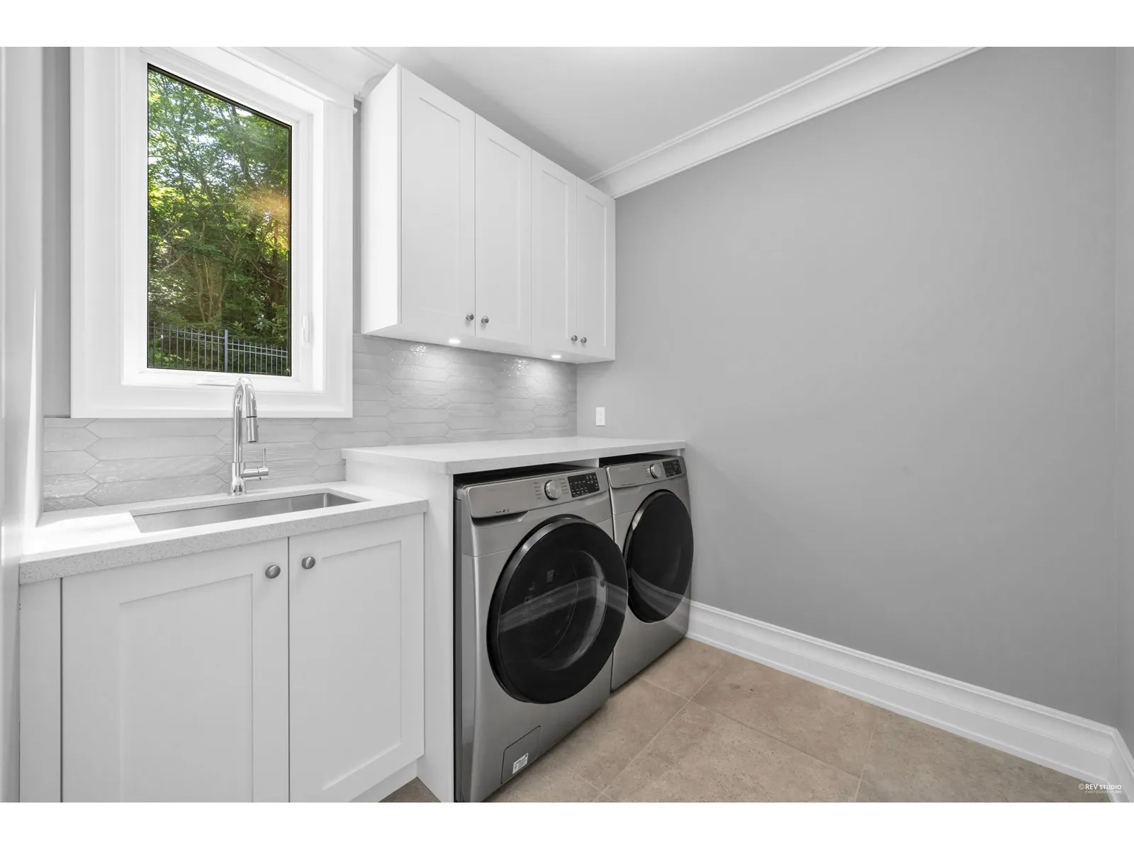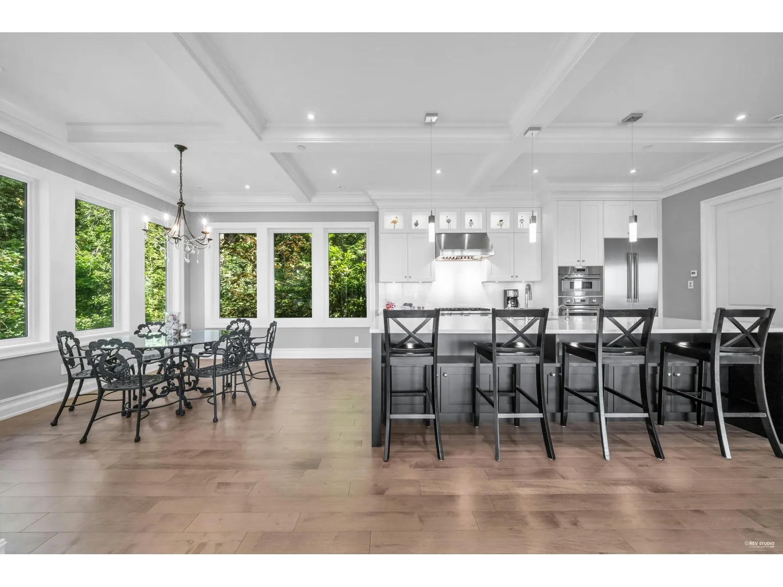 Must sell! Unobstructed panoramic ocean view. Pristine 5,734 sf executive home by renowned Ronco Construction on a S-facing 9,350 sf lot with 132.4' frontage, surrounded by mature trees and trail to Centennial Park. Main floor features open living/dining, Thermador gourmet kitchen, office/4th ensuite bdrm, and 1,080 sf wrap-around covered balcony plus 200+ sf private patio with built-in trellis-perfect for entertaining. Lower floor offers 4 spacious ensuite bdrms and 978 sf covered balcony. Luxurious primary ensuite with soaker tub, crystal chandelier, steam shower, marble finishes. Basement includes home theatre, 2-bdrm legal suite, wine cellar, and 5-car garage. 10' ceilings, Viessmann radiant heating, HRV, flood-warning system, elevator, cedar soffits, man-made stream, electric gate. (id:27476)