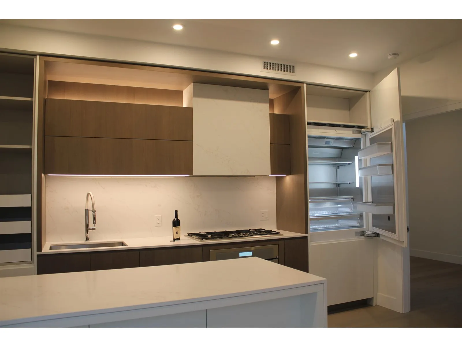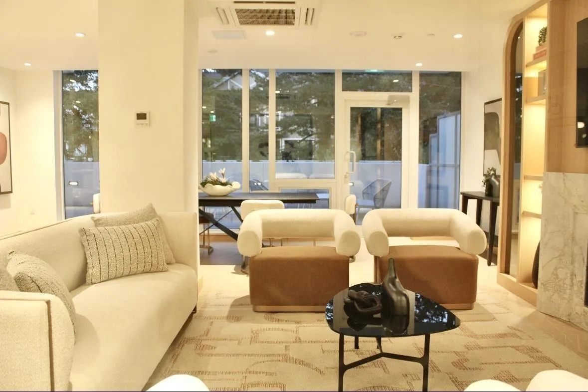 Experience luxury living at **Monaco by Solterra** in white Rock - a 13-storey concrete, air-conditioned boutique building on Johnson Road. This 2 bed, 2 bath home features a junior second bedroom and an Italian-designed kitchen with high-end Thermador appliances, including a 36" built-in fridge, 5-burner gas cooktop, and a beverage fridge. The spa-like ensuite offers a double vanity, heated floors, soaker tub, walk-in shower, and a private toilet area. **Elevated design, top-tier comfort - don't miss out!** (id:27476)