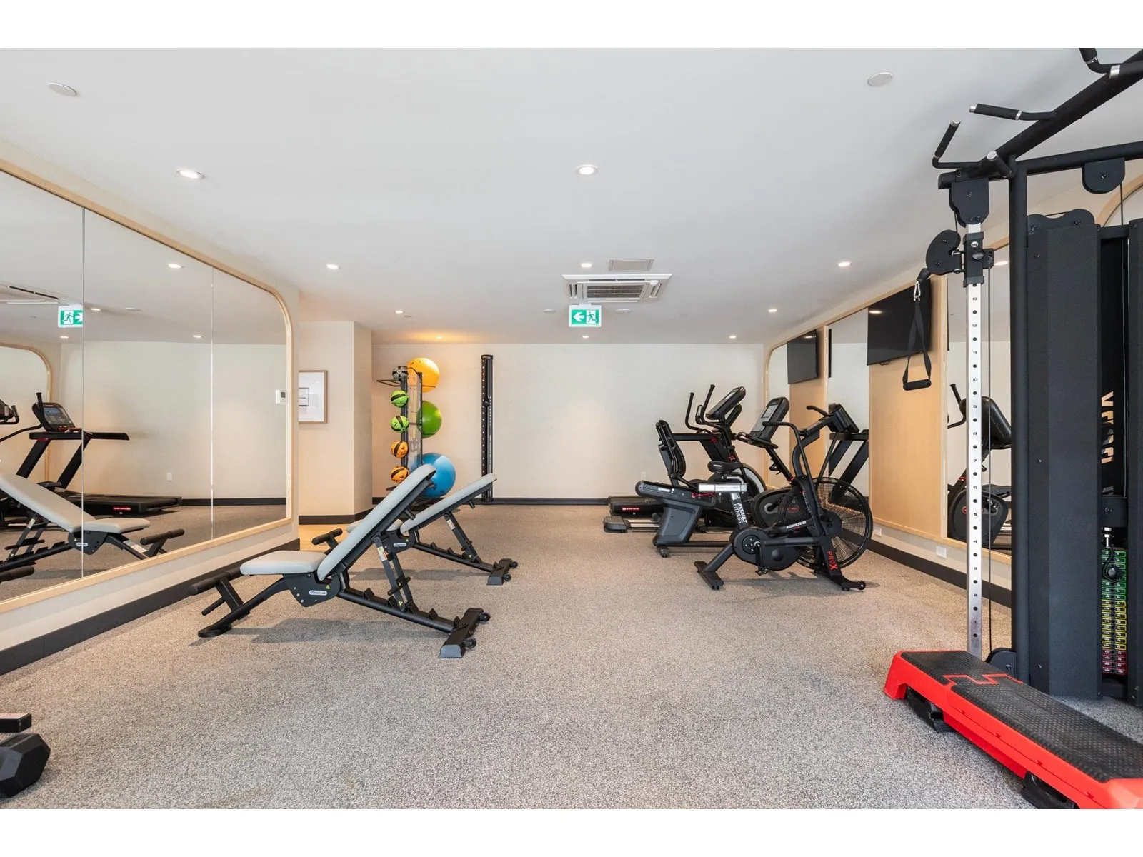 Monaco, White Rock's newest and most prestigious high rise. Ocean View home has it all from 18' gourmet kitchen featuring Thermador. Built in appliances from the fridge, cooktop, wine fridge, microwave, and oven. Cabinets feature pull outs everywhere. Master suite is large with massive closet space and more built ins. Ensuite is tiled to the ceiling, recessed mirrors, shelving, bidet, and heated floors. Flex space could be set up as a dining room or 3rd bedroom. Secondary bedroom is bright large and has loads of closet space. 2 Parking spaces (one with EV roughed in) storage locker. Air conditioned and ready to move in. There are 2 common social areas for entertaining a complete lounge area with kitchen and a 5th floor outdoor oasis including BBQ and Panoramic Views. Awesome gym as well. (id:27476)