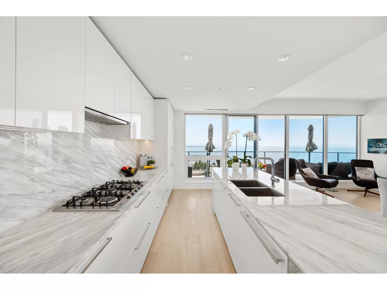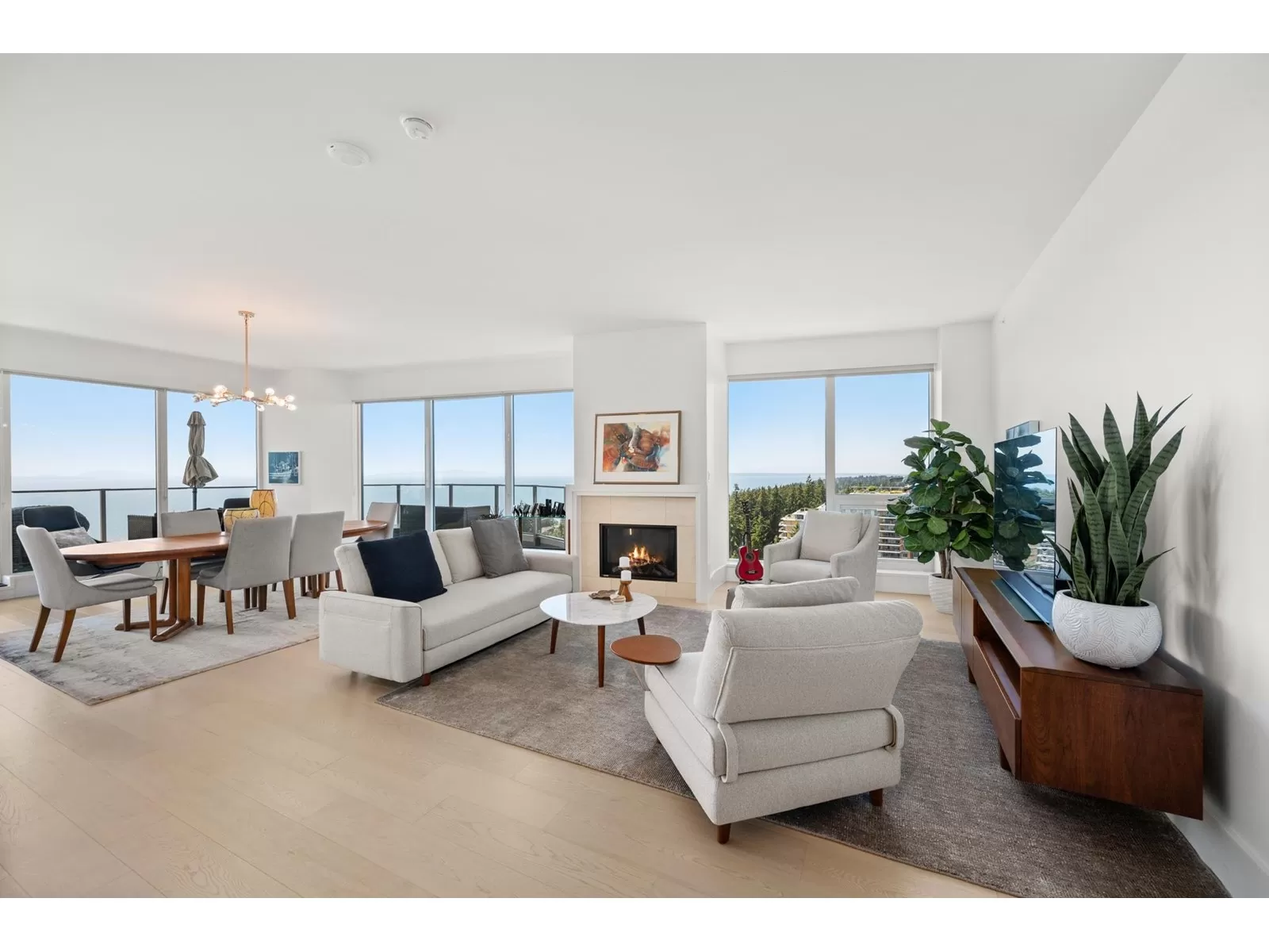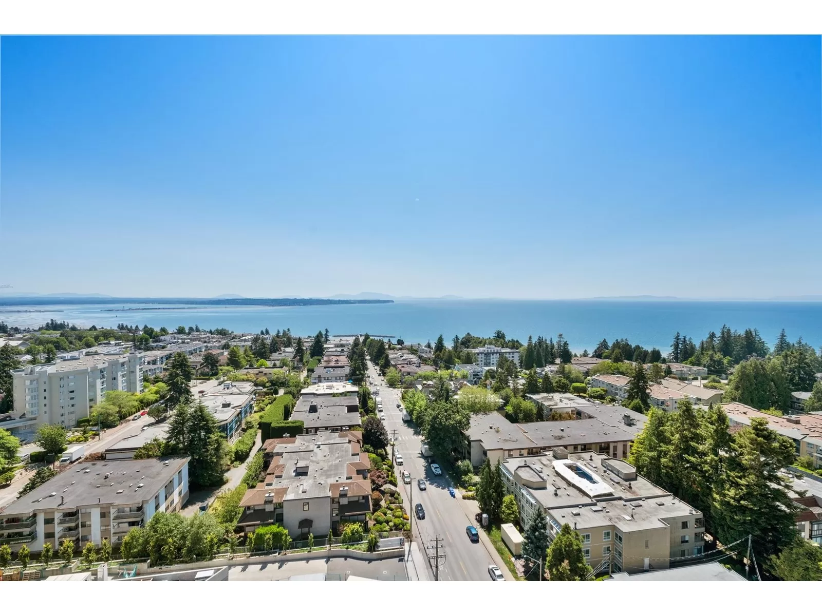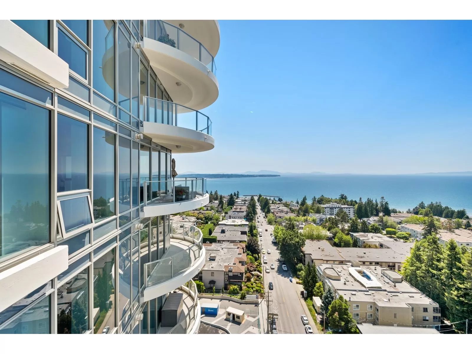 Experience the elegance of Suite 1601 at Foster Martin, White Rock's premier luxury high-rise. Spanning 2,140 SF, this residence offers 3 bedrooms, a den, and 3.5 spa-inspired bathrooms, all framed by sweeping, unobstructed ocean views. Floor-to-ceiling windows and two expansive wrap-around balconies invite natural light. The gourmet kitchen is equipped with a Miele appliance package, complemented by light hardwood floors, sleek white cabinetry, and marble countertops. Foster Martin residents enjoy 10,000 SF of world-class amenities, including an indoor/outdoor pool, hot tub, yoga studio, steam and sauna rooms, and a full-service concierge. Steps from restaurants, shopping, and daily conveniences, this bright and sophisticated home is truly one to experience in person. (id:27476)