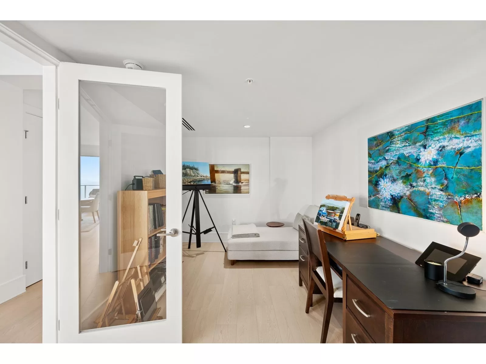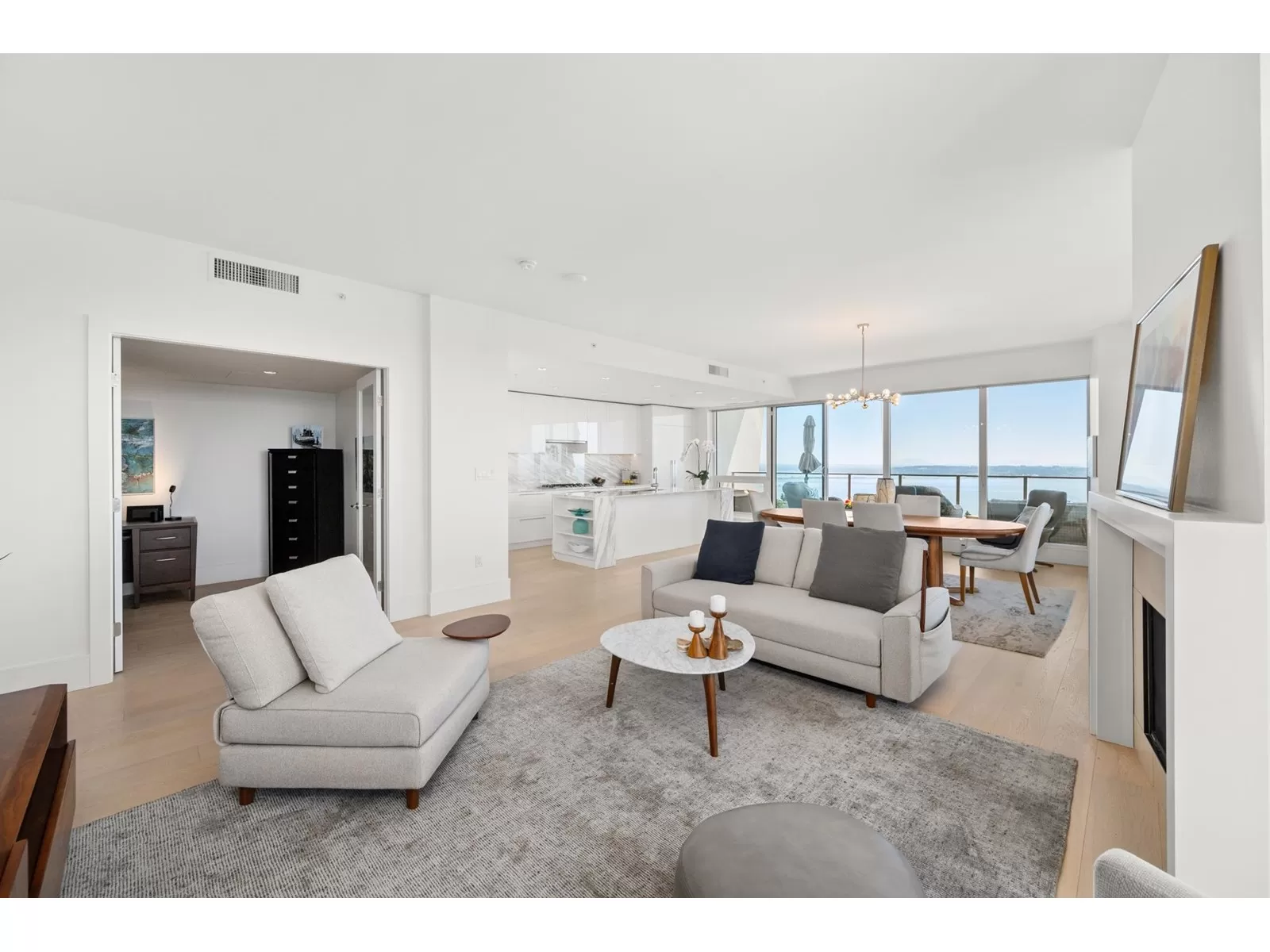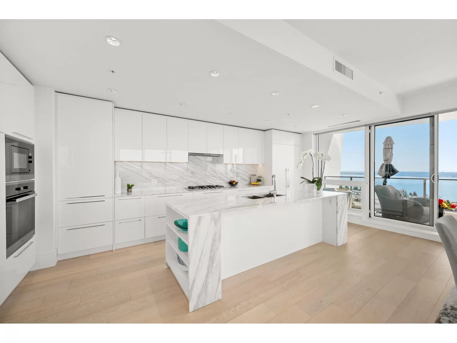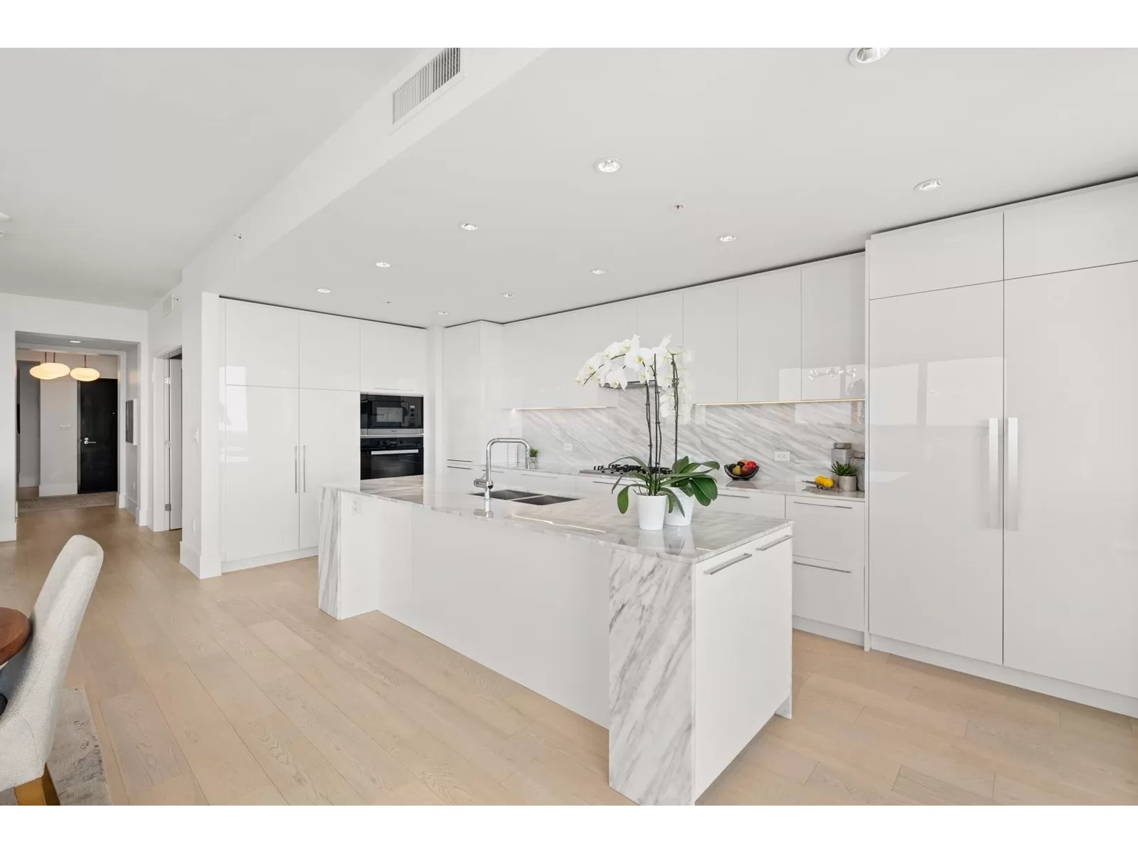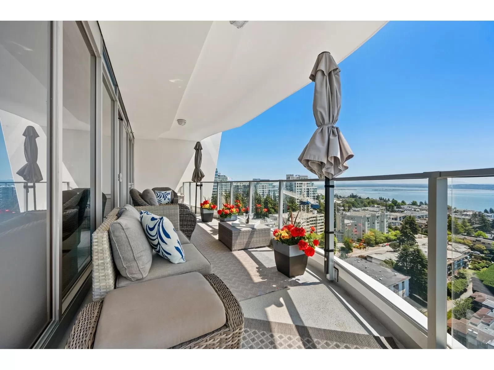 Experience the elegance of Suite 1601 at Foster Martin, White Rock's premier luxury high-rise. Spanning 2,140 SF, this residence offers 3 bedrooms, a den, and 3.5 spa-inspired bathrooms, all framed by sweeping, unobstructed ocean views. Floor-to-ceiling windows and two expansive wrap-around balconies invite natural light. The gourmet kitchen is equipped with a Miele appliance package, complemented by light hardwood floors, sleek white cabinetry, and marble countertops. Foster Martin residents enjoy 10,000 SF of world-class amenities, including an indoor/outdoor pool, hot tub, yoga studio, steam and sauna rooms, and a full-service concierge. Steps from restaurants, shopping, and daily conveniences, this bright and sophisticated home is truly one to experience in person. (id:27476)