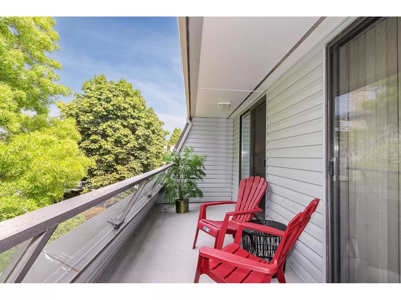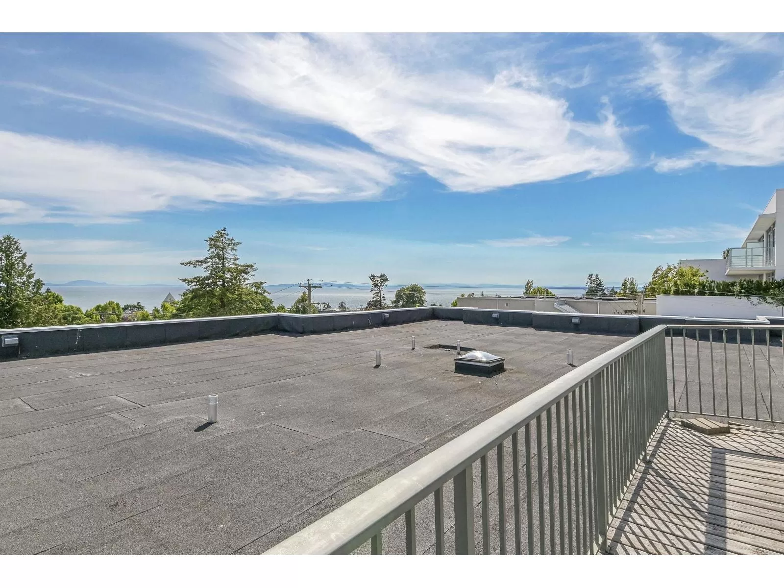 Welcome to this bright & airy top-floor 1-bedroom + den featuring updated flooring throughout. You'll love the quiet location, natural light & versatile den-complete w/ two closets & a skylight-ideal for home office, gym, or creative space. The open living area is enhanced by an electric fireplace & opens onto a spacious deck w/ access from both the living room & bedroom-perfect for morning coffee or evening relaxation.The kitchen includes a generous walk-in pantry & there is ample storage overall. Step outside & you're just a quick walk from everything: shopping, restaurants, library, theatre & more. Exceptional walk score, this location can't be beat. Check out the incredible rooftop deck w/ panoramic ocean views-a perfect bonus! (id:27476)