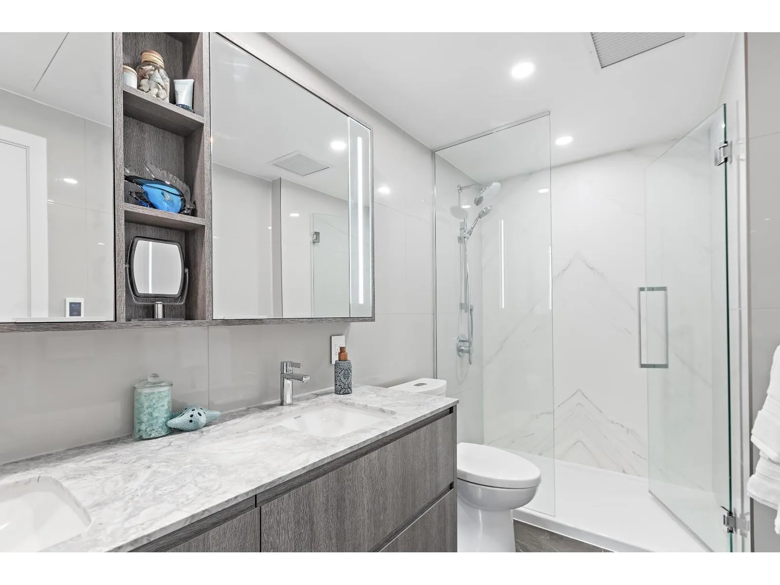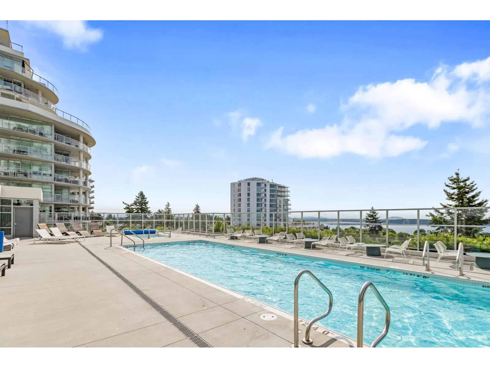 Welcome to the Miramar, built by Bosa. This southwest corner ocean view unit concrete condo features 2 Bdrm & 2 Bath, plus 2 balconies. Enjoy the in-suite radiant floor heating, engineered HW floors (2024), stone surfaces & Nest thermostat, A/C Heat Pump, 1 parking & 1 Storage. Amenities include Concierge service, dual elevators, 3rd Flr - gym & stretching area with access out to lovely spacious 15,000 SF outdoor terrace with BBQs, furnished seating areas, putting green, garden plots & a dog run. The 4th Flr - ocean view outdoor pool & hot tub amazing! Walk downstairs to Thrity's, 3 Dogs Brewing, Tacofino & more! Perfect location in White Rock, lots of visitor parking. (id:27476)