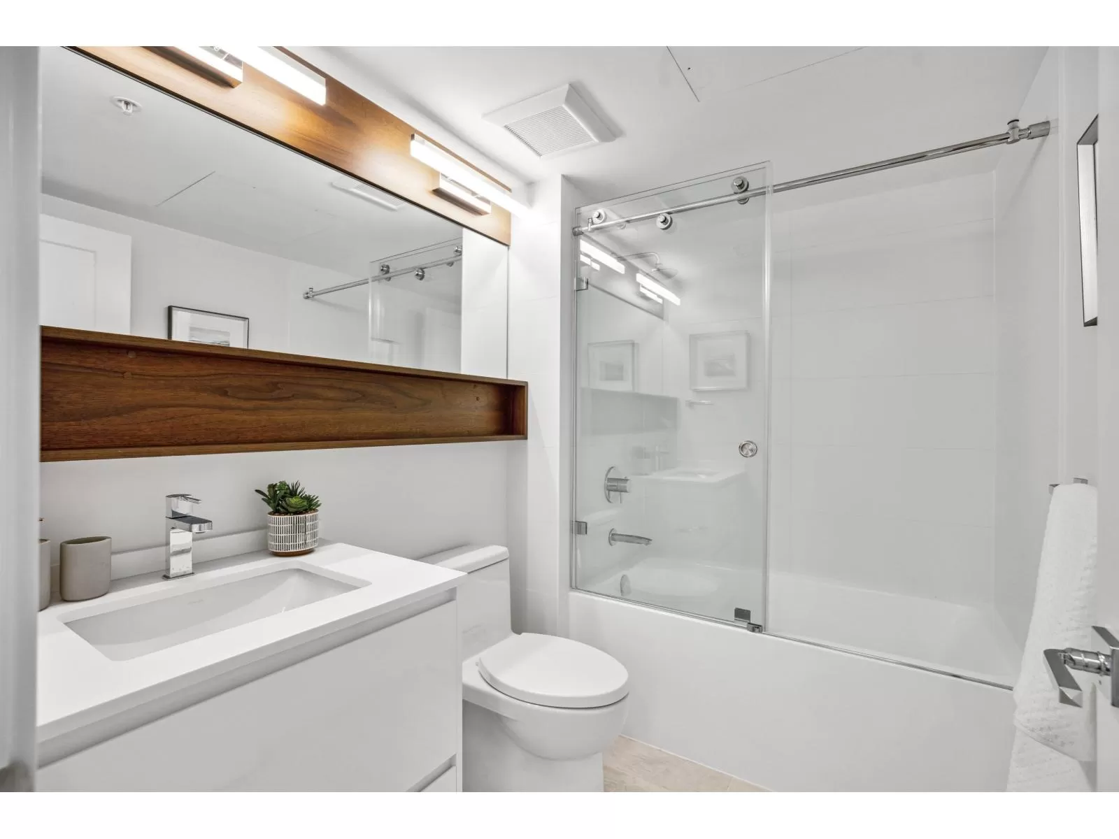 LIMITED TIME 5% BUYER'S CREDIT ON FINAL HOMES. This 2 bed home is the perfect layout for sharing space - with the primary and ensuite on one side of the home and the second bedroom/bathroom on the other. Early risers will love the oversized 276SF roof deck, tucked away on the East side of the building. Two parking stalls, a private EV charger, storage, and access to a 3000 SF multi-purpose space with a state-of-the-art fitness center and conveniences you will use everyday. Walking distance to the East Beach promenade, White Rock Town Center, Schools, parks and many eateries and amenities. Easy living w/concierge on-site, safe parcel storage, and a guest suite for friends and family. Book your private appointment to view the final homes at Altus! (id:27476)