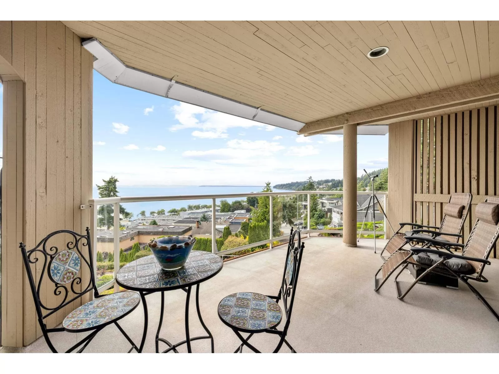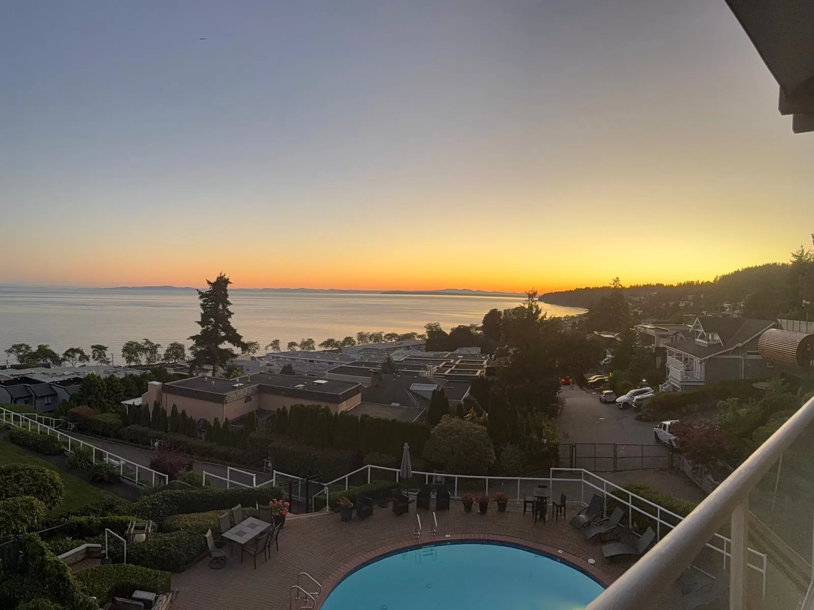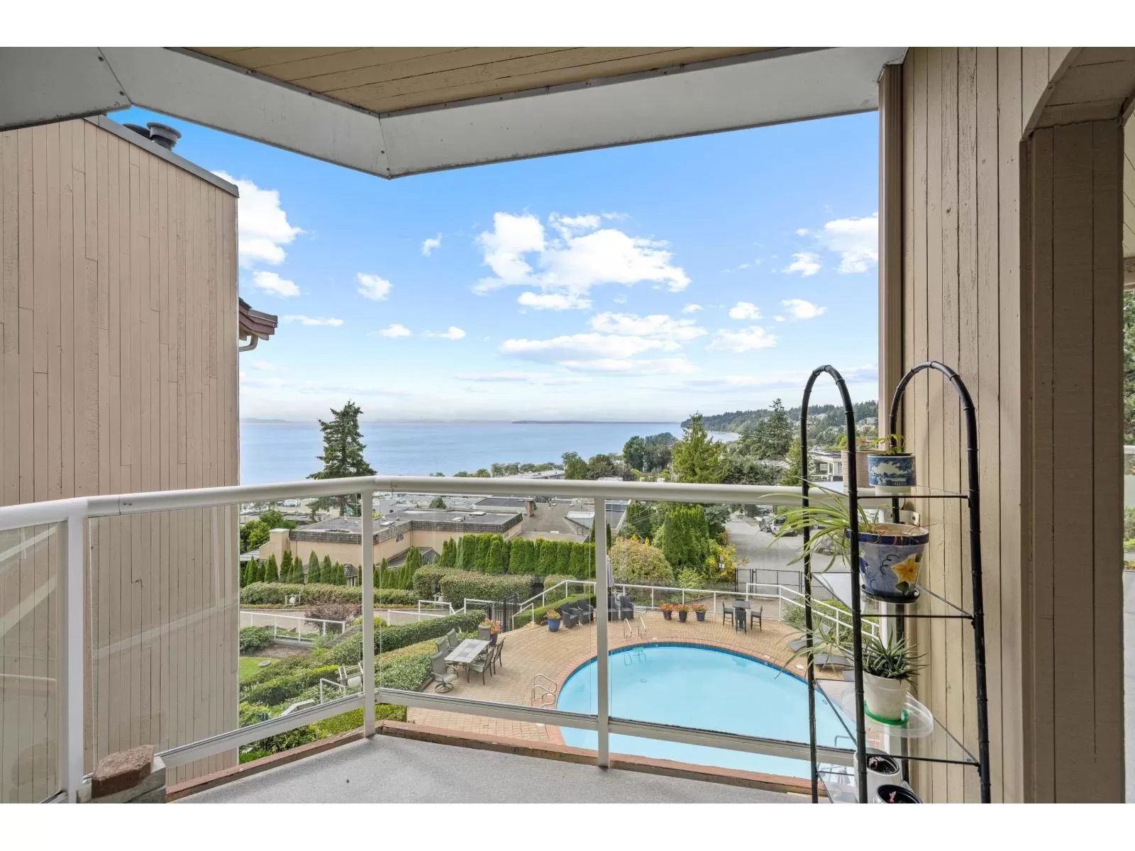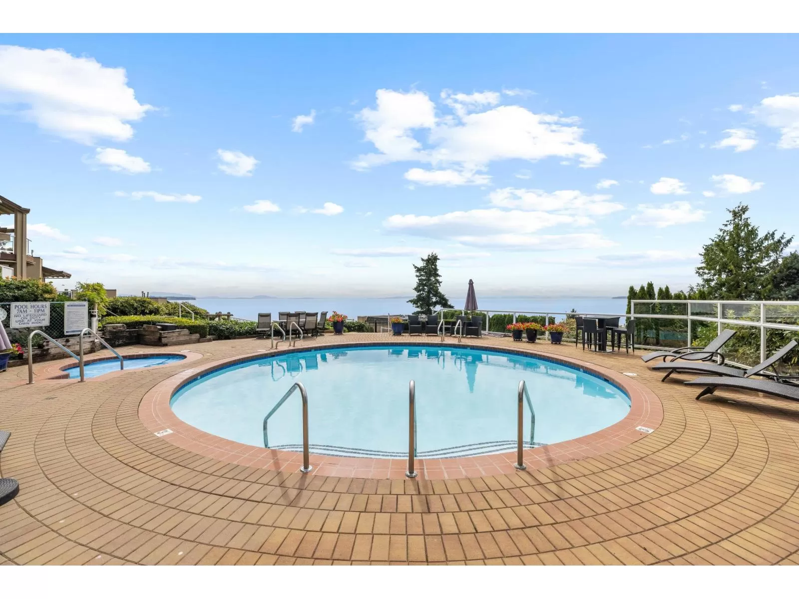 Welcome to Victoria Terrace by Bosa-your seaside retreat in the heart of White Rock! Perfectly positioned in one of the area's most coveted locations, this 2 Bed + Den, 2 Bath home offers completely unobstructed, panoramic views from your 2 balconies of the ocean, pier & Gulf Islands from every room. Thoughtfully renovated, the kitchen dazzles with sleek cabinetry, quartz counters & stainless steel appliances, while both bathrooms have been beautifully updated with modern finishes. Resort-style living awaits with a sparkling outdoor pool & hot tub overlooking the ocean. Just steps to the promenade, beach, cafés & restaurants, this home truly embodies the White Rock lifestyle. In a well-managed, 55+ community that welcomes pets, Victoria Terrace blends luxury, comfort & tranquility. (id:27476)