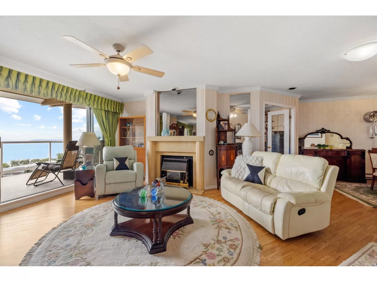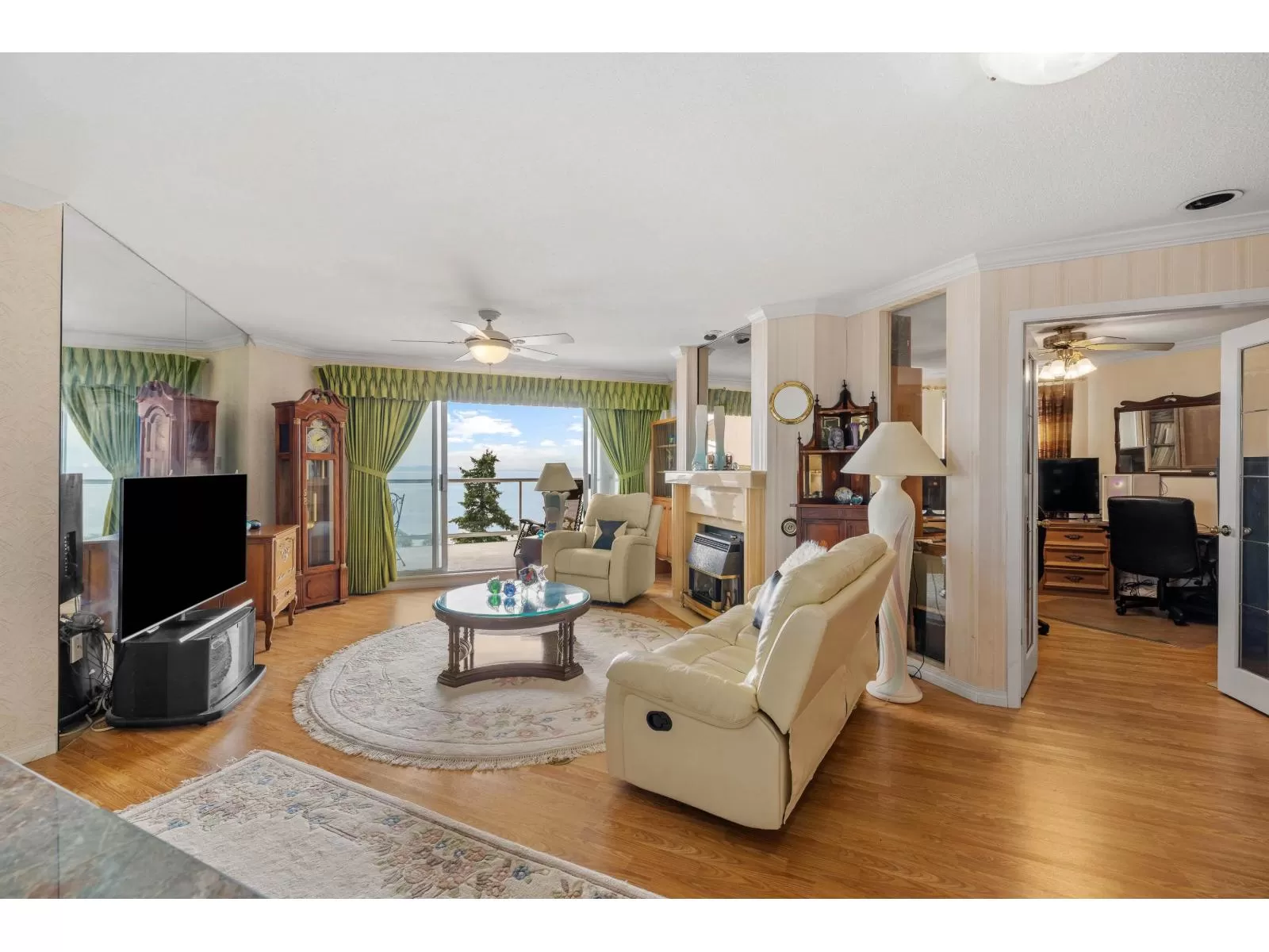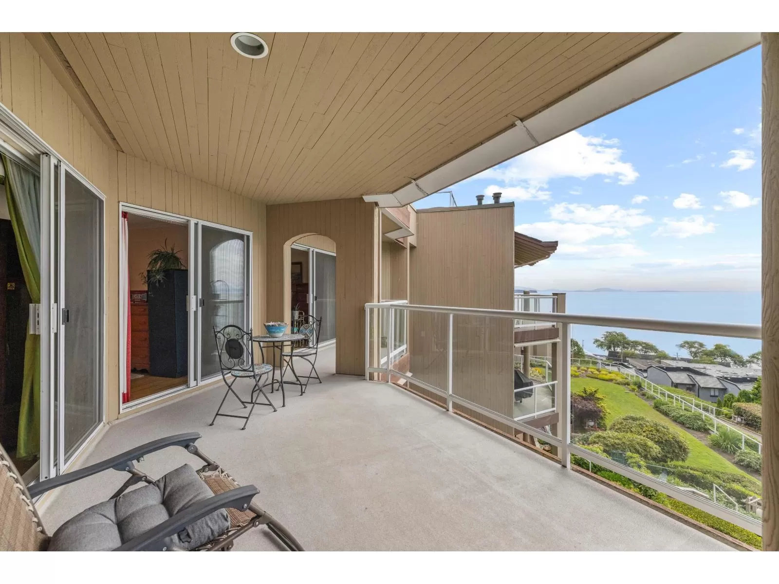 Welcome to Victoria Terrace by Bosa-your seaside retreat in the heart of White Rock! Perfectly positioned in one of the area's most coveted locations, this 2 Bed + Den, 2 Bath home offers completely unobstructed, panoramic views from your 2 balconies of the ocean, pier & Gulf Islands from every room. Thoughtfully renovated, the kitchen dazzles with sleek cabinetry, quartz counters & stainless steel appliances, while both bathrooms have been beautifully updated with modern finishes. Resort-style living awaits with a sparkling outdoor pool & hot tub overlooking the ocean. Just steps to the promenade, beach, cafés & restaurants, this home truly embodies the White Rock lifestyle. In a well-managed, 55+ community that welcomes pets, Victoria Terrace blends luxury, comfort & tranquility. (id:27476)