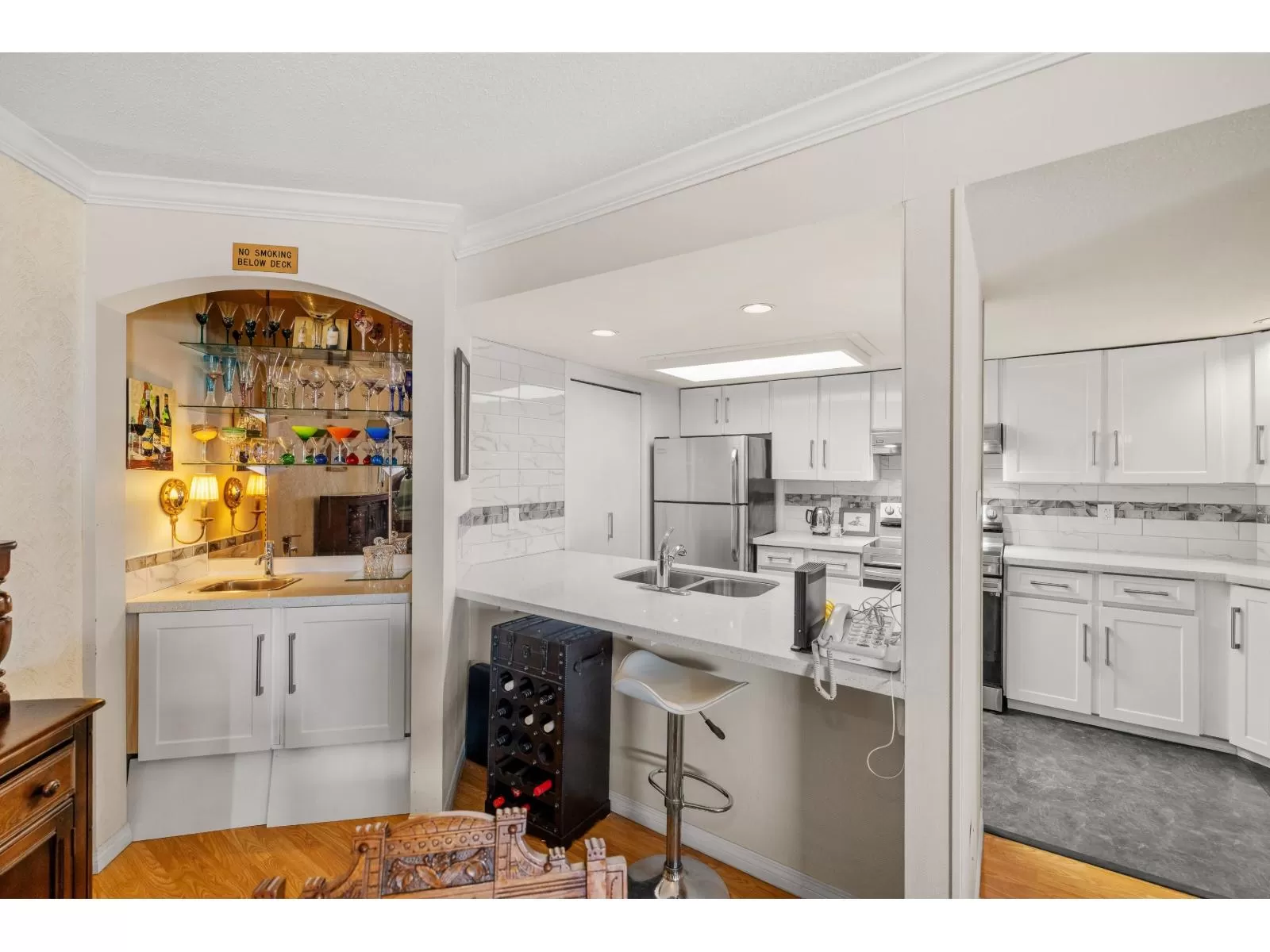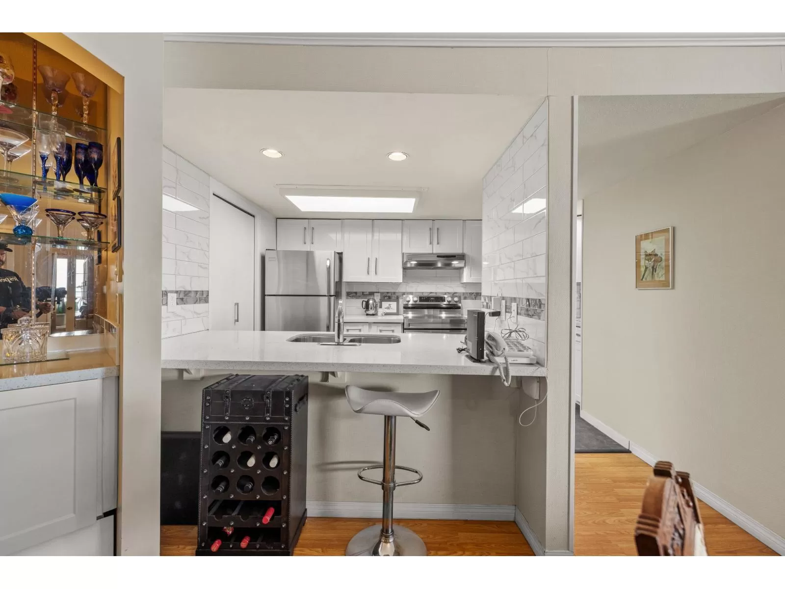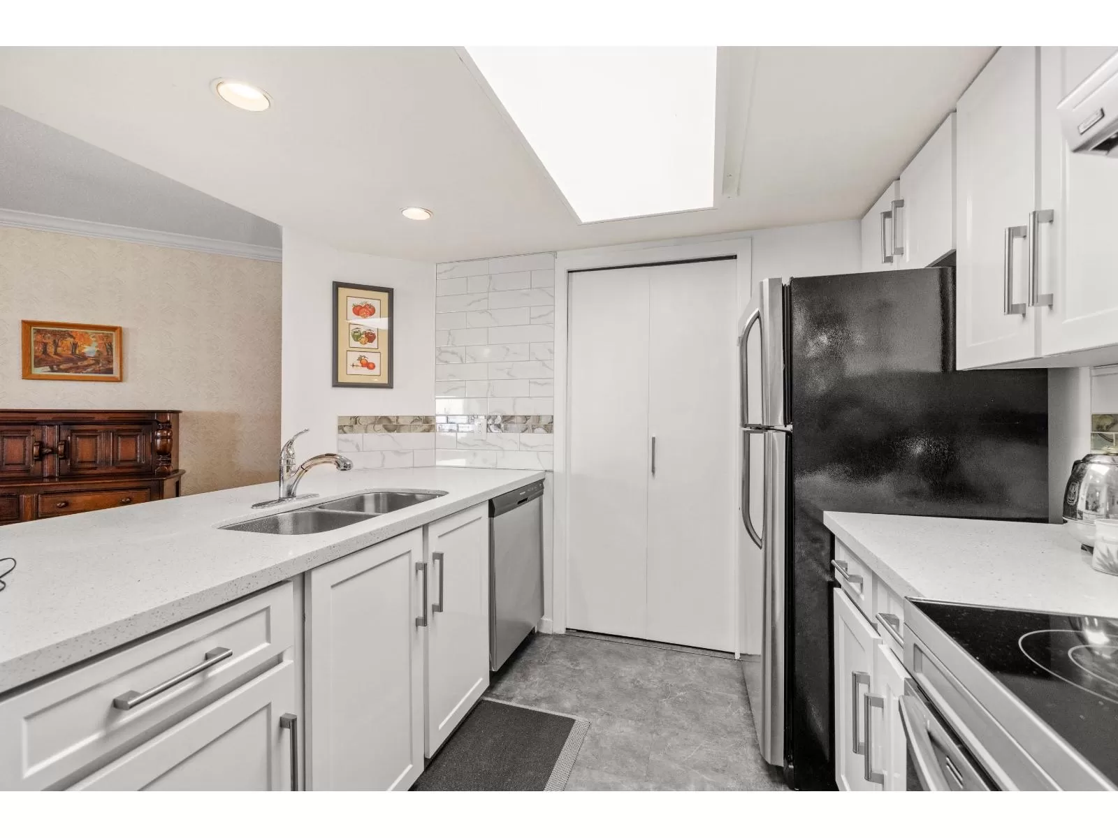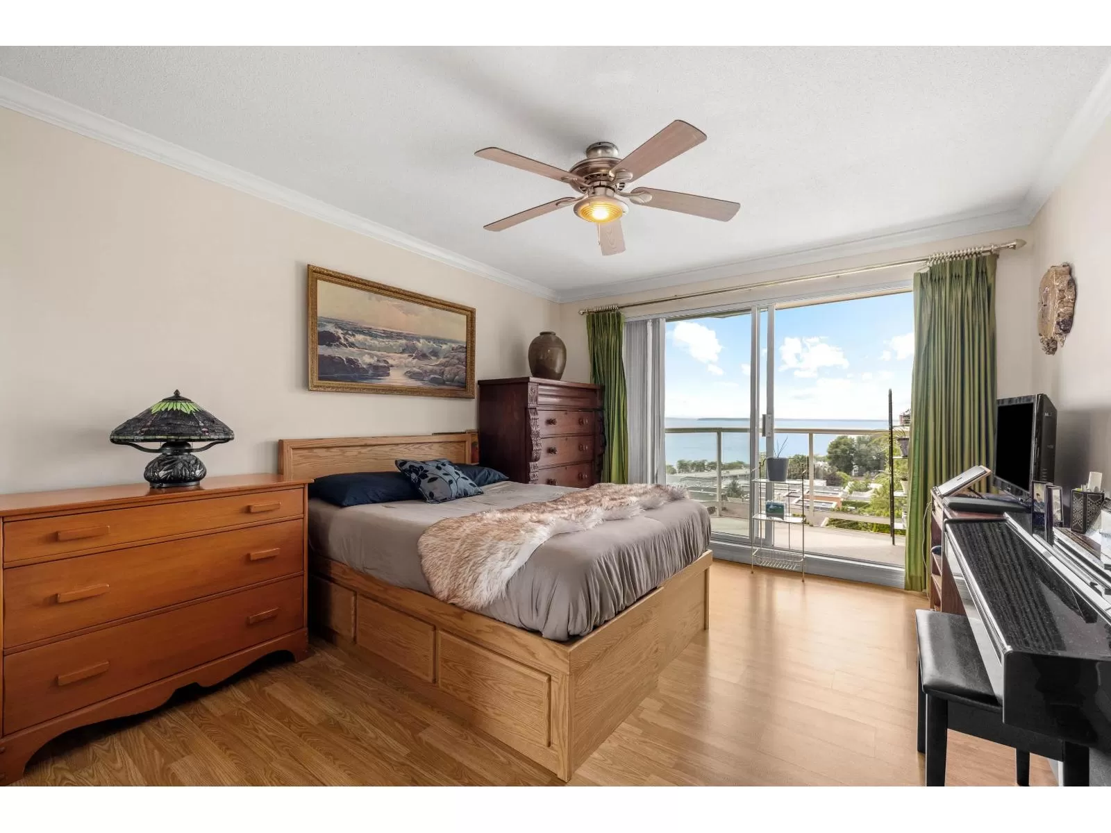 Welcome to Victoria Terrace by Bosa-your seaside retreat in the heart of White Rock! Perfectly positioned in one of the area's most coveted locations, this 2 Bed + Den, 2 Bath home offers completely unobstructed, panoramic views from your 2 balconies of the ocean, pier & Gulf Islands from every room. Thoughtfully renovated, the kitchen dazzles with sleek cabinetry, quartz counters & stainless steel appliances, while both bathrooms have been beautifully updated with modern finishes. Resort-style living awaits with a sparkling outdoor pool & hot tub overlooking the ocean. Just steps to the promenade, beach, cafés & restaurants, this home truly embodies the White Rock lifestyle. In a well-managed, 55+ community that welcomes pets, Victoria Terrace blends luxury, comfort & tranquility. (id:27476)