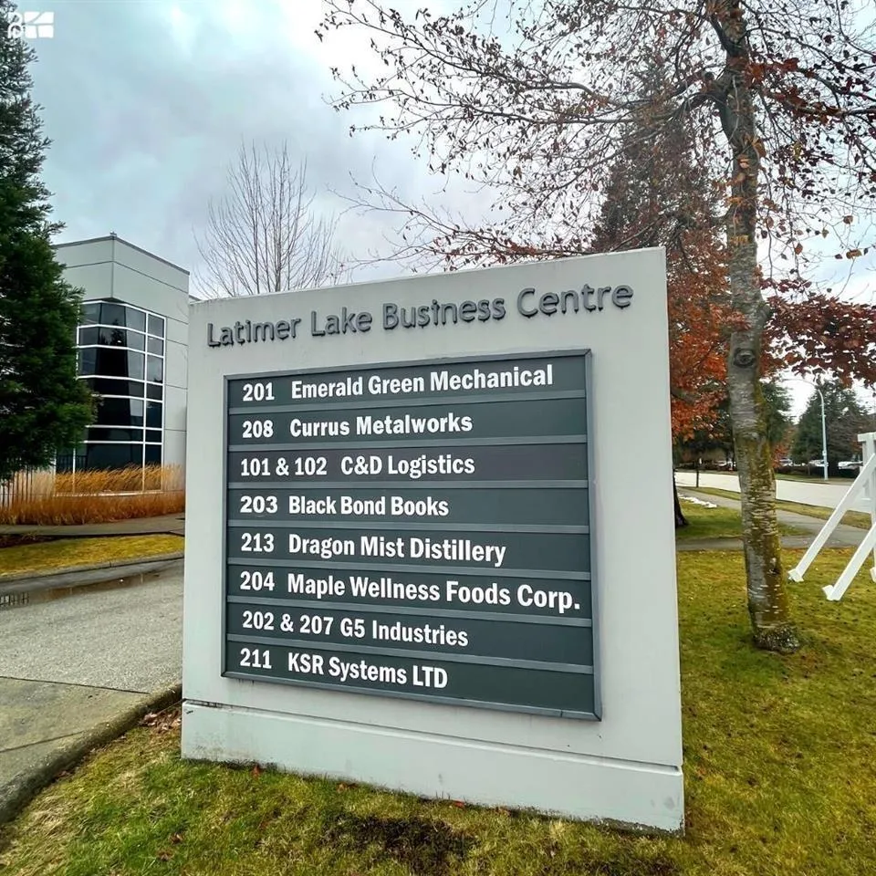 Located in South Surrey's sought after Latmier Lake Business Center, this 2,610 sq. ft. warehouse offers excellent access to Highway 15, Highway 99, and the Canada/US border, all just minutes away. Built in 2007 by Anthem Properties, the unit sits on the southwest corner of 192nd Street and 26th Avenue in a prime industrial hub. The space is zoned IB-1, allowing for a broad range of uses including light industrial, warehousing, office, and accessory functions. Features include 22' clear ceiling height, a 14' x 10' grade-level loading door, 600V three-phase power, and a 368 sq. ft. office area. Actual floor space measures approximately 35' x 74.5', not including the mezzanine. Well maintained and strategically positioned, this unit is an excellent opportunity for growing businesses. (id:27476)