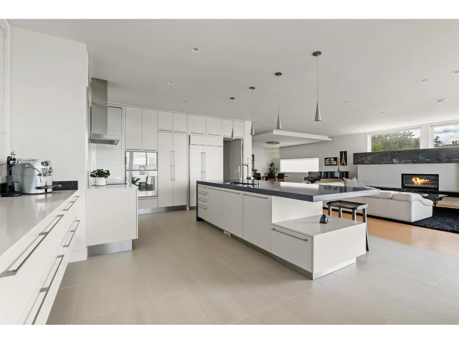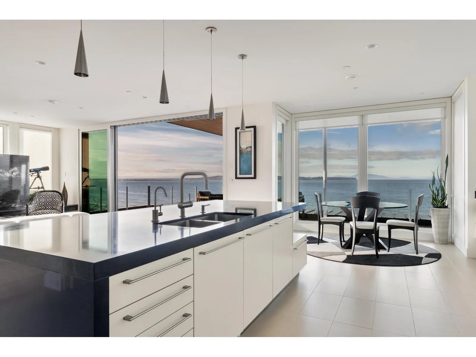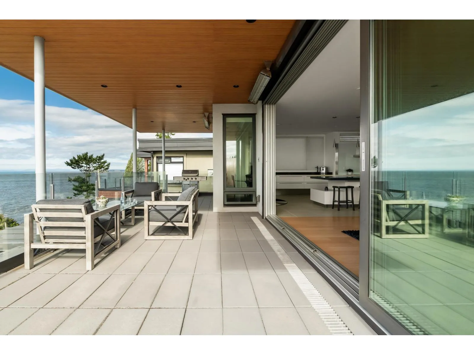 Experience the pinnacle of luxury living in this magnificent contemporary residence, offering truly unobstructed views of the ocean, islands, and Mt. Baker. Built to the highest standards by Kliewer Bros. Construction, this sensational family home boasts large open rooms and floor-to-ceiling windows, creating a spectacular indoor-outdoor lifestyle. The stunning kitchen features top-of-the-line Gaggenau appliances and opens to the Great Room and large covered patio with breathtaking views. Additionally, a dedicated wok kitchen provides extra culinary convenience. The spacious master suite includes two walk-in closets and a spa-inspired ensuite with a steam shower, opening to its own balcony with remarkable ocean vistas. A state-of-the-art media room, gym, elevator, and ample storage accompany the roomy one-bedroom suite. With a total of 5 bedrooms and 7 baths, this residence ensures luxurious accommodations for all. (id:27476)