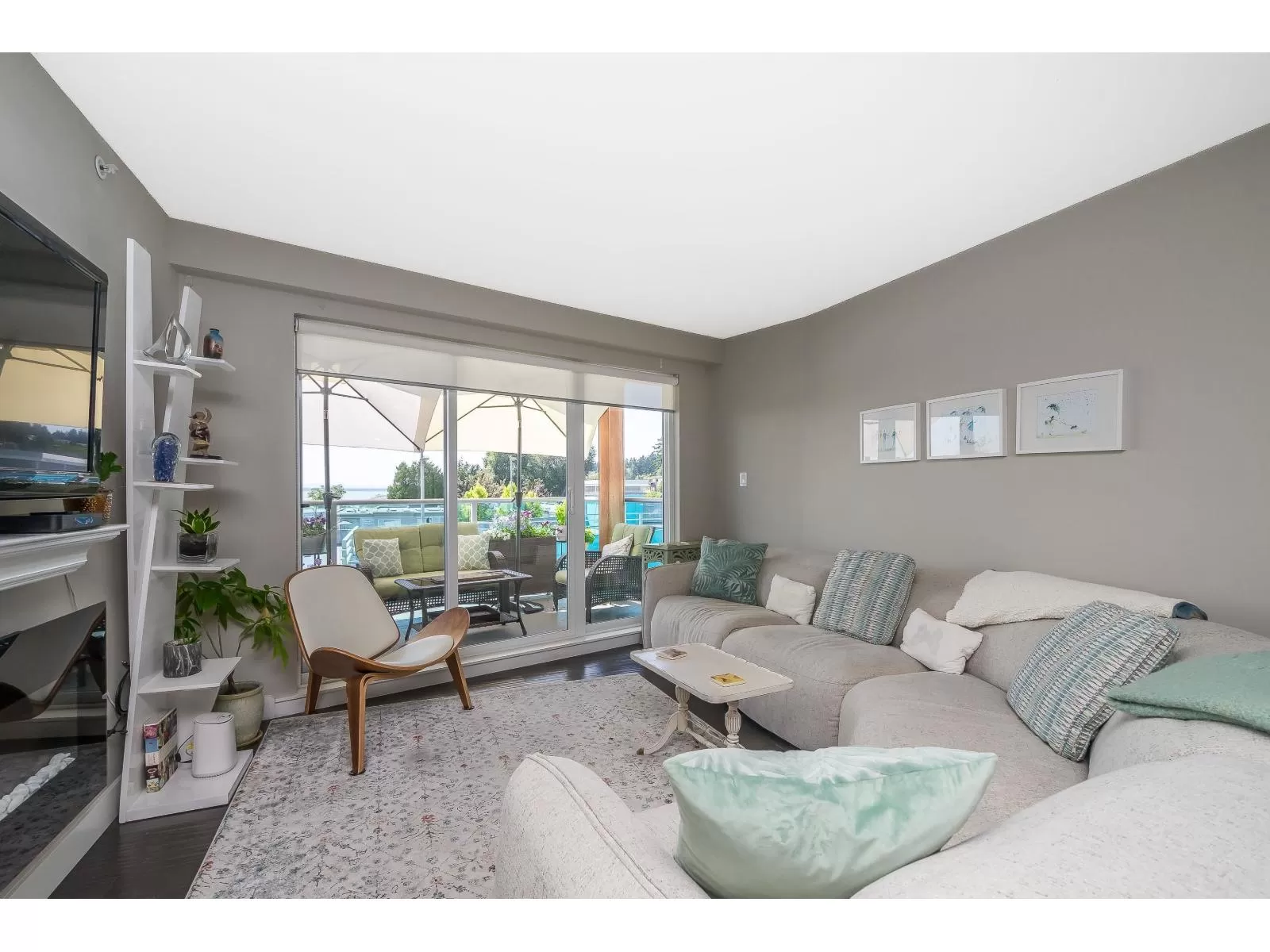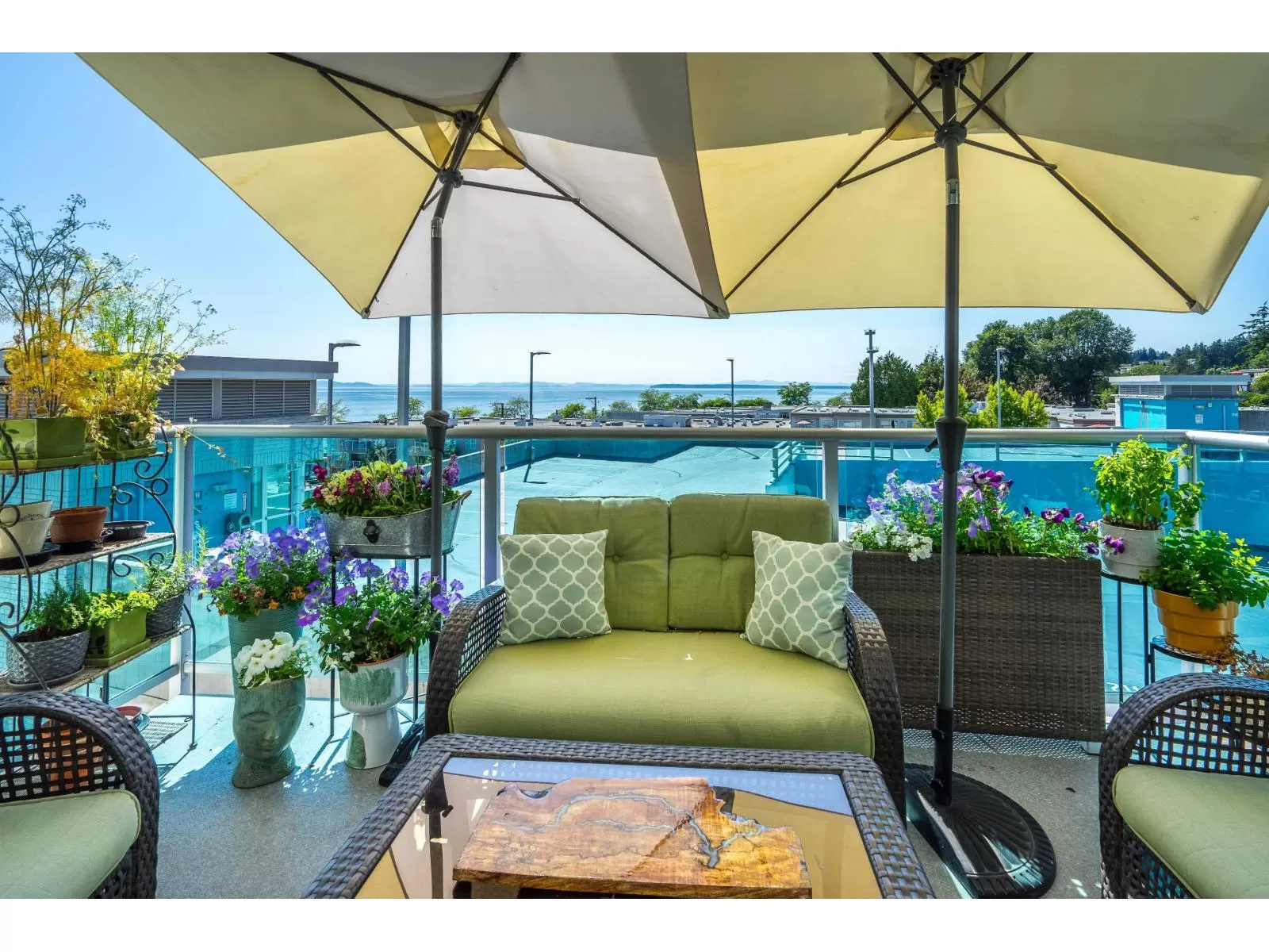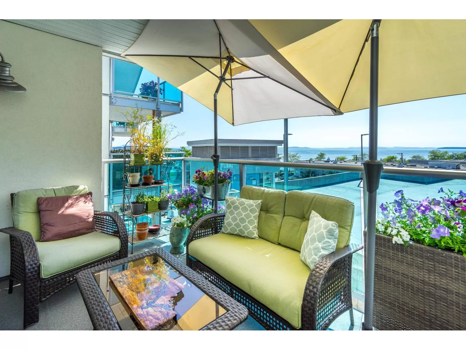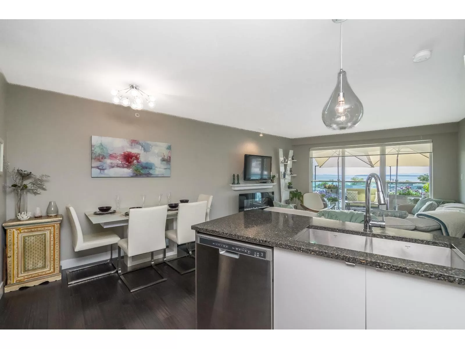 Elegant SAUSALITO. A boutique, modern complex steps away from White Rock beach front and all that it has to offer. Breathtaking views of the Pacific Ocean, Gulf Islands, and bonus sunsets throw in! Stylish 2 bed and 2 bath home with loads of additional storage. Modern kitchen with sleek design and granite countertops open to breakfast bar and main living area. Large, bright primary bedroom with walk in closet and generous ensuite. Second bedroom is roomy and offers an additional walk in closet. Pantry and laundry area off the kitchen has newer, full sized washer and dryer. Updated lighting and hardwood flooring throughout. Enjoy a glass of wine with friends on your west facing patio. Life really is better at the beach! (id:27476)