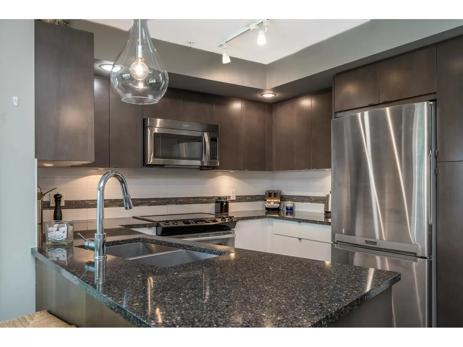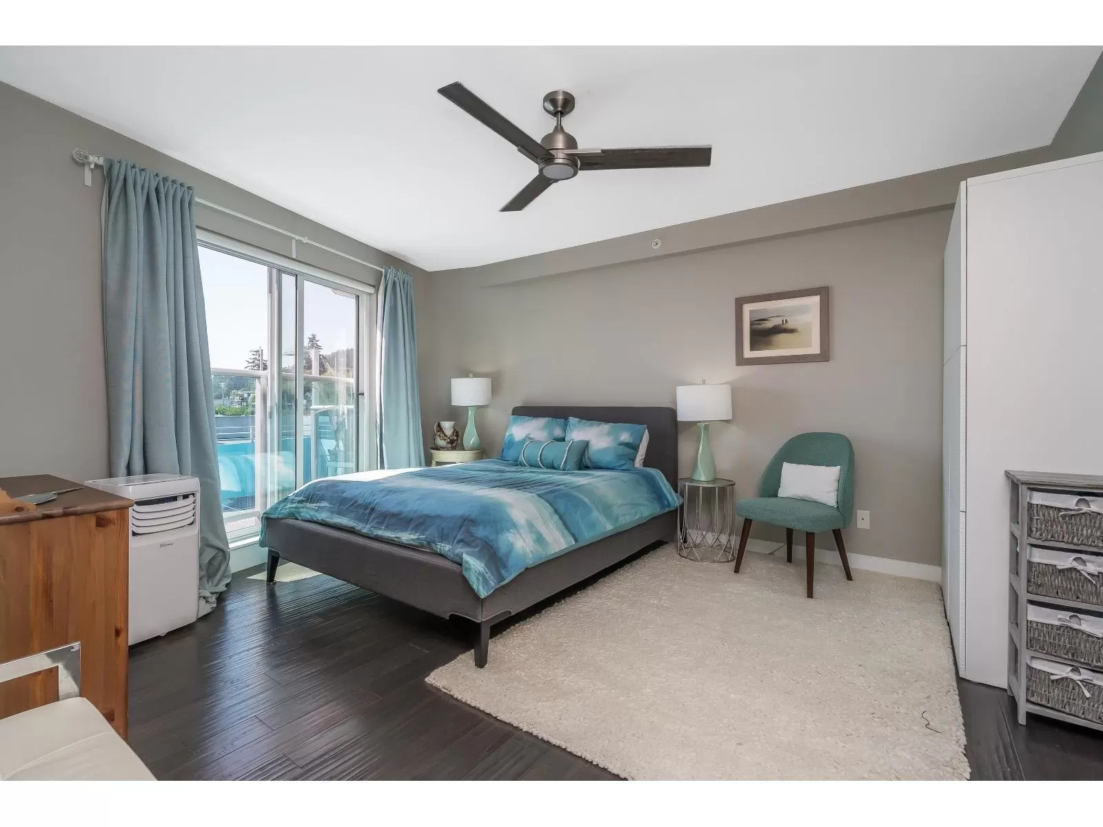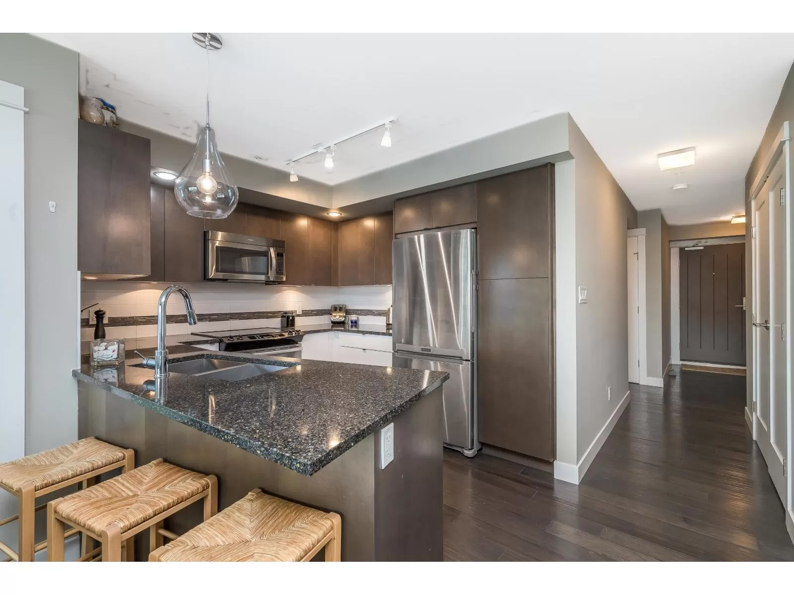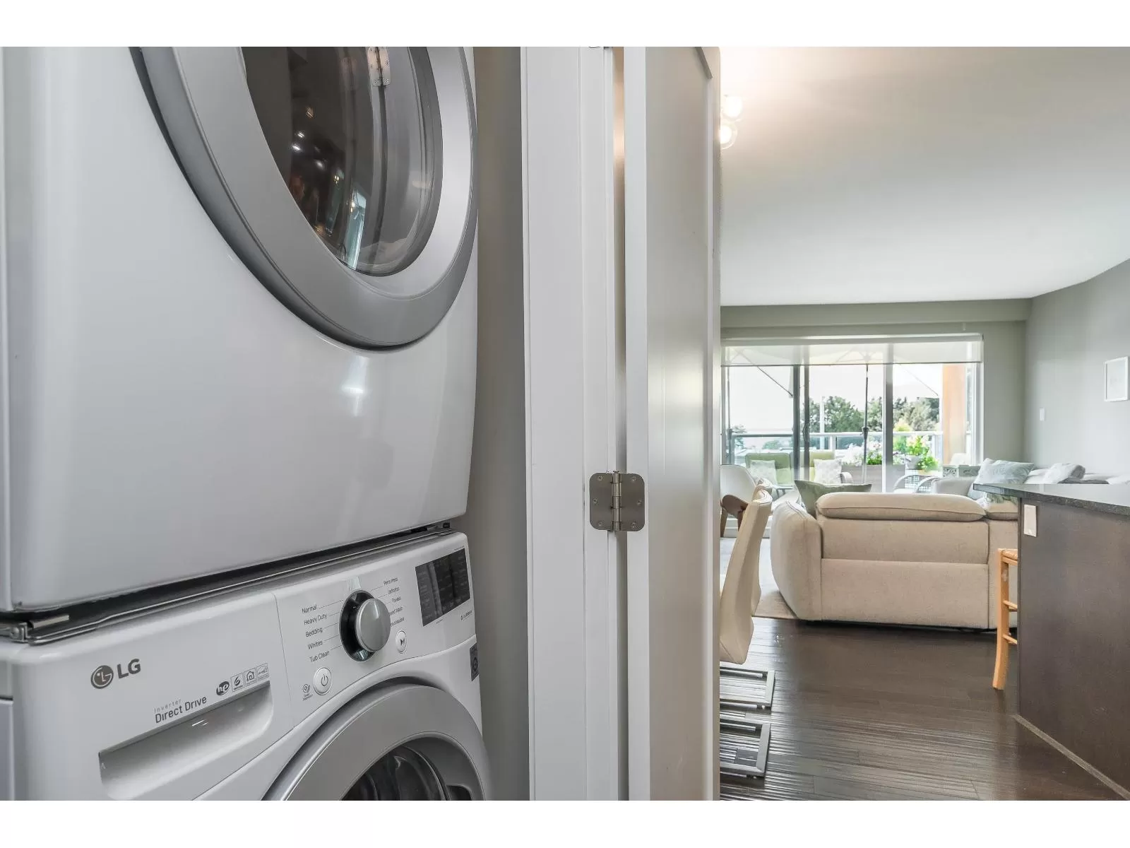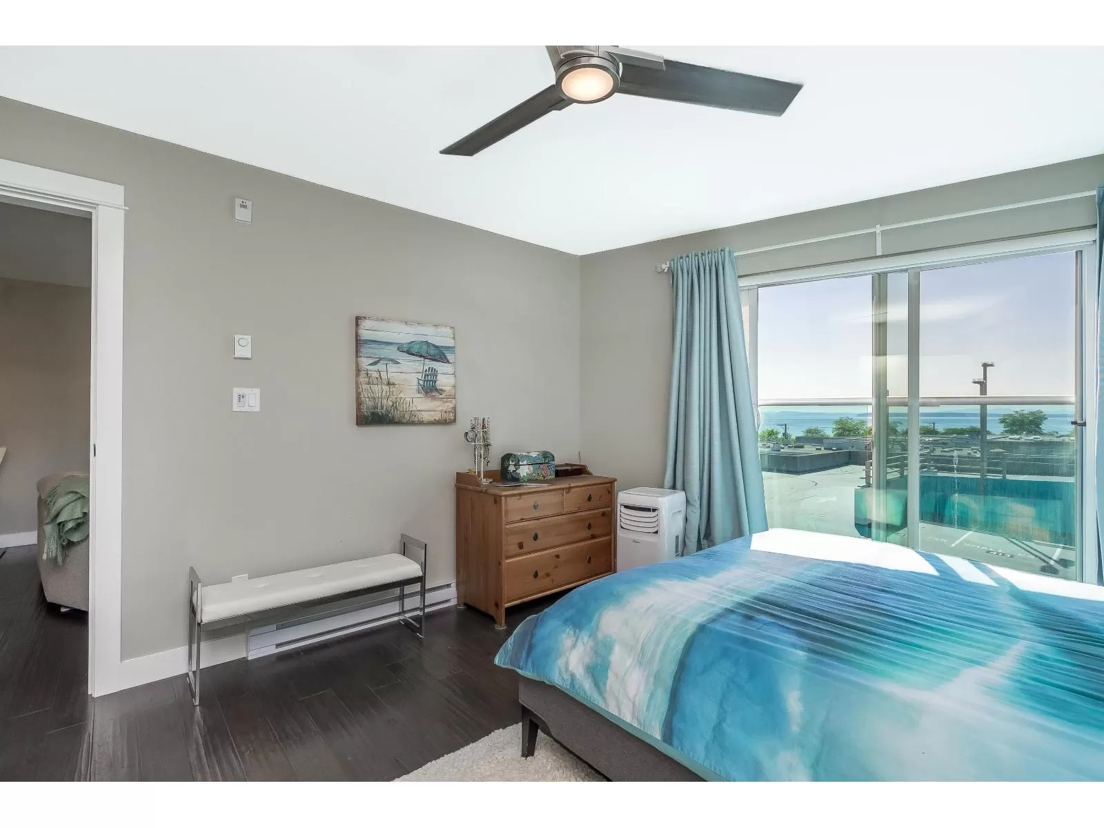 Elegant SAUSALITO. A boutique, modern complex steps away from White Rock beach front and all that it has to offer. Breathtaking views of the Pacific Ocean, Gulf Islands, and bonus sunsets throw in! Stylish 2 bed and 2 bath home with loads of additional storage. Modern kitchen with sleek design and granite countertops open to breakfast bar and main living area. Large, bright primary bedroom with walk in closet and generous ensuite. Second bedroom is roomy and offers an additional walk in closet. Pantry and laundry area off the kitchen has newer, full sized washer and dryer. Updated lighting and hardwood flooring throughout. Enjoy a glass of wine with friends on your west facing patio. Life really is better at the beach! (id:27476)