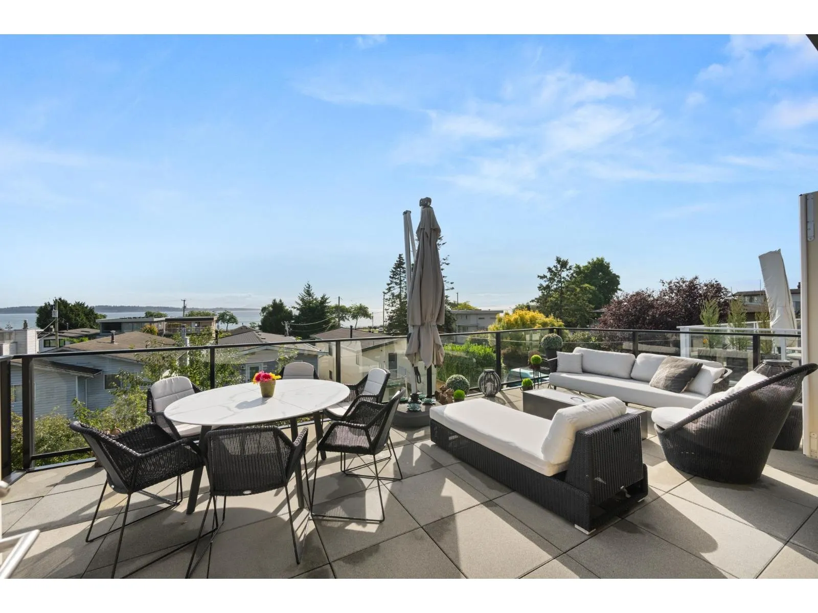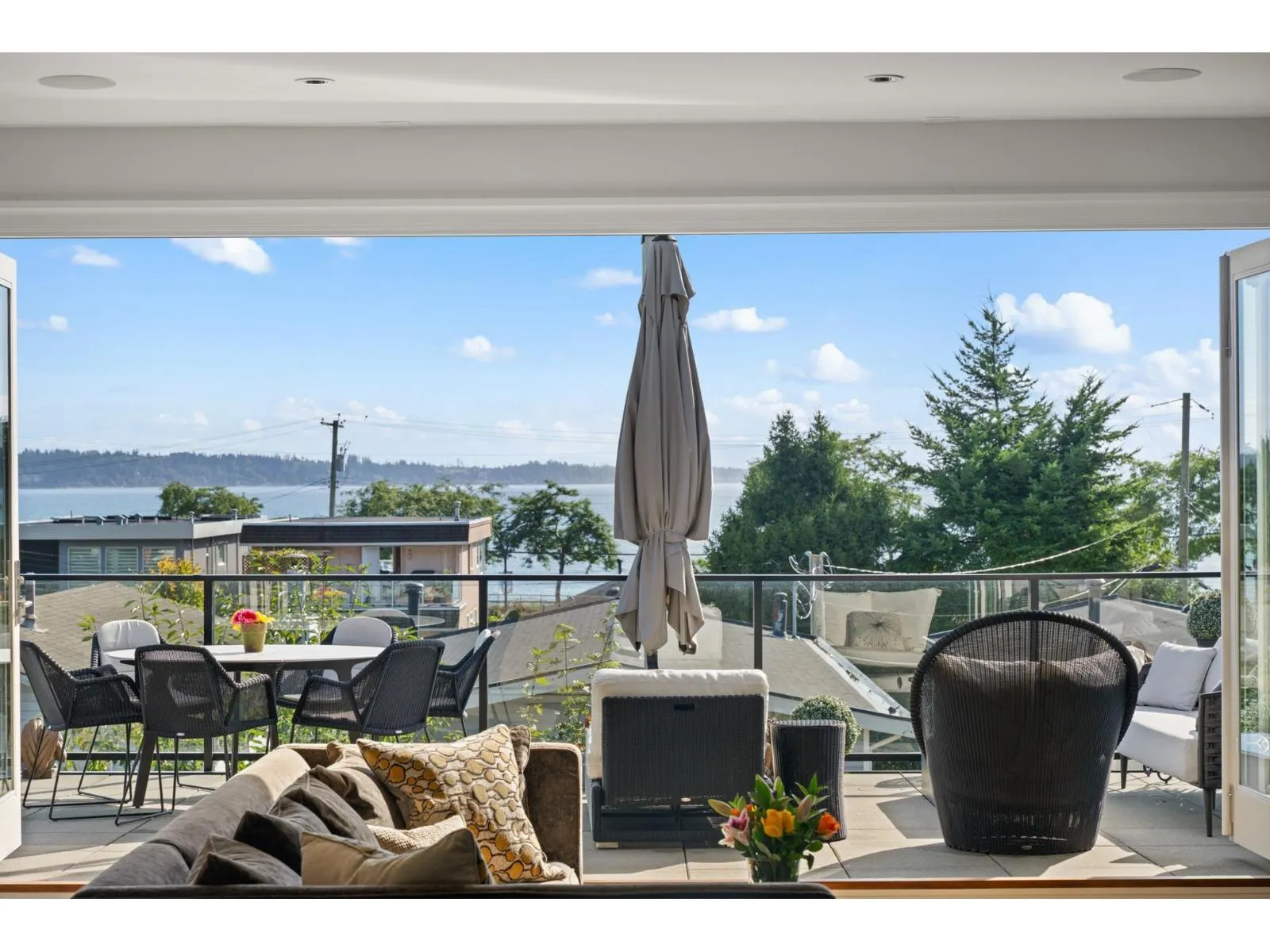 West Beach Living! Steps to White Rock promenade yet quietly perched on McDonald Avenue. Ocean view from top floor, kitchen with great room concept. Nano style doors open to a spacious deck making it perfect for entertaining! Elegant kitchen with gas range, lots of counter space, large island & wine bar. Quality crafted 3,596 sq ft home with double garage plus pkg for 2 cars. Middle level has 3 bdrms. Primary bedroom with a private deck, W/I closet and elegant ensuite. Features include A/C, Control 4, Sonos sound system, hardwood floors, glass railings. Bsmt is fully finished, 2 bedrooms, large rec room with separate entry to walk out yard. Possibly convert to 1 or 2 bdrm suite or keep as is. Enjoy walks, sunrise & sunsets, restaurants and all that beach living has to offer! Preview Video (id:27476)