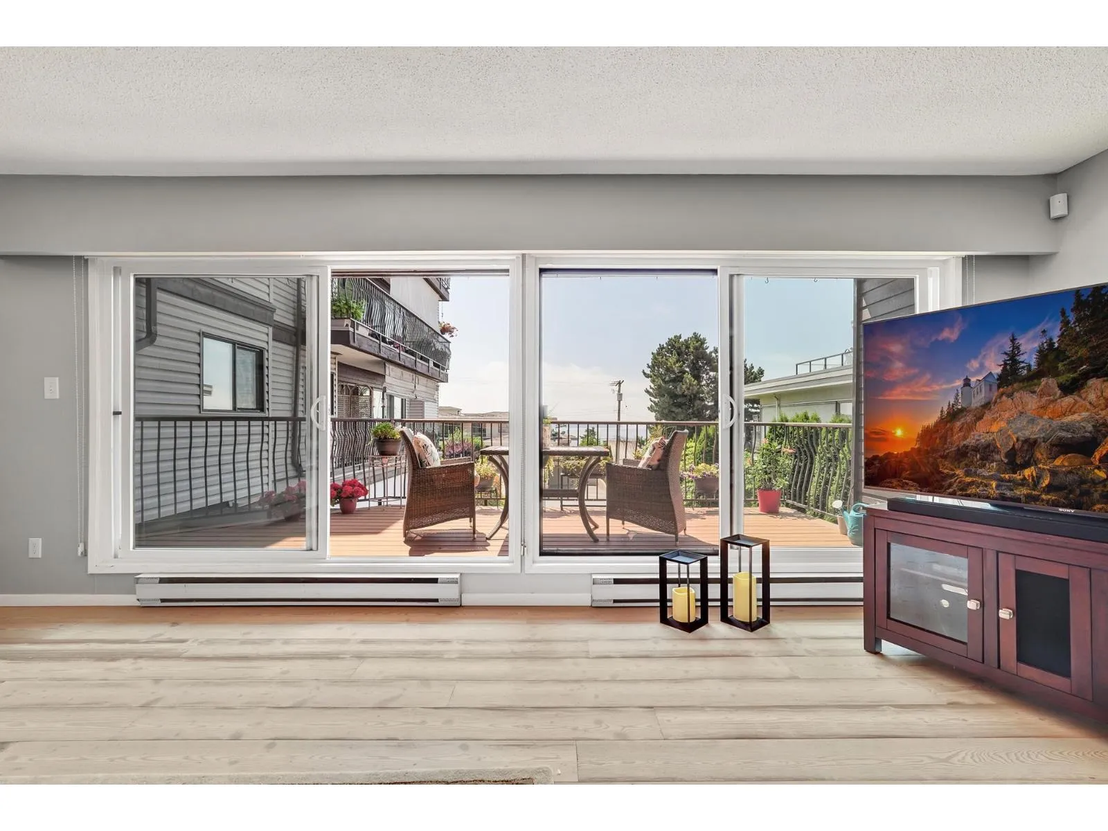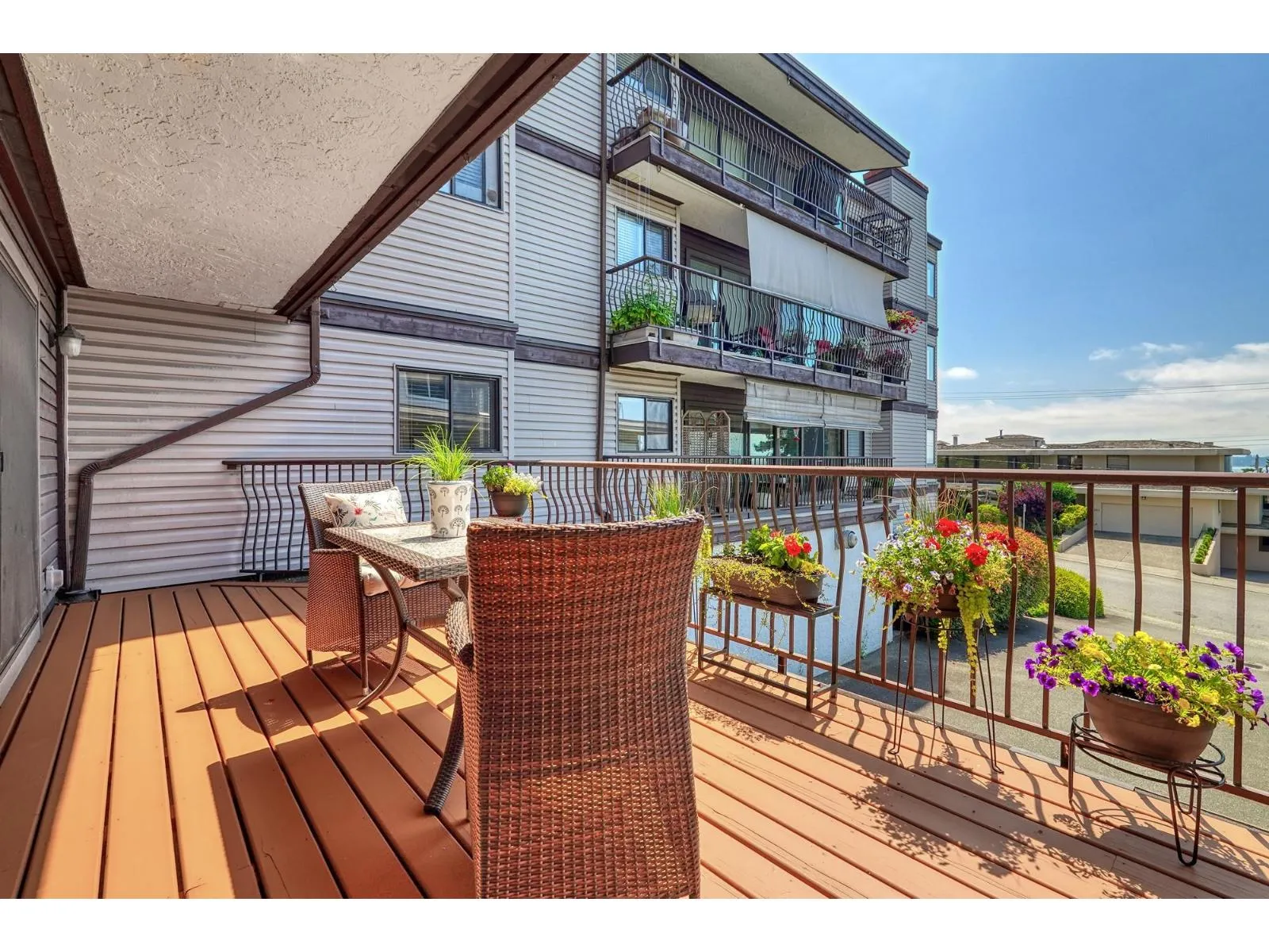 Stunning Ocean View Condo at Sea Vista! Perched on White Rock's coveted Prospect Avenue, this boutique building offers incredible ocean views. Renovated in 2025, this immaculate 2 bed, 2 bath corner unit features 1,164 sqft of bright, modern living with only one shared wall for added privacy and natural light. All new kitchens and bathrooms, and a cozy gas fireplace (gas included in fees). The 182 sq ft south-facing balcony is perfect for entertaining. Well managed building with many updates! Exterior project just completed: new glass railings, vinyl decking, fascia, and fresh paint-are fully paid by the seller. Fully rainscreened. In-suite laundry, 1 parking, free street parking, and 1 storage included. Rentals allowed (no short-term). No pets/smoking. The perfect White Rock location! (id:27476)