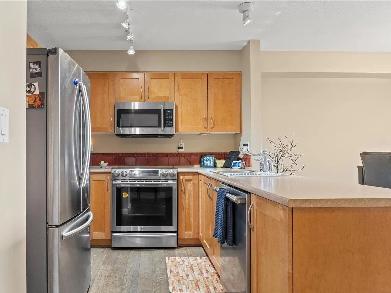 They say in real estate it's all about location, and this home truly delivers. With the beach literally across the street, your seaside lifestyle starts right here! This bright and spacious 1,040 sqft home offers an oversized bedroom, a flexible den space, and two full bathrooms. A south-westerly outlook lets the sunshine in and offers lovely ocean views. The generous layout creates a warm and welcoming ambiance that makes you feel at home the moment you step in. Enjoy morning strolls along the promenade, lunch at your favourite local café, and sunsets from your balcony. A little love in the form of new flooring and fresh paint will have this gem sparkling like the ocean it overlooks. Comes with 1 parking & 1 storage locker. The beach is calling you! (id:27476)